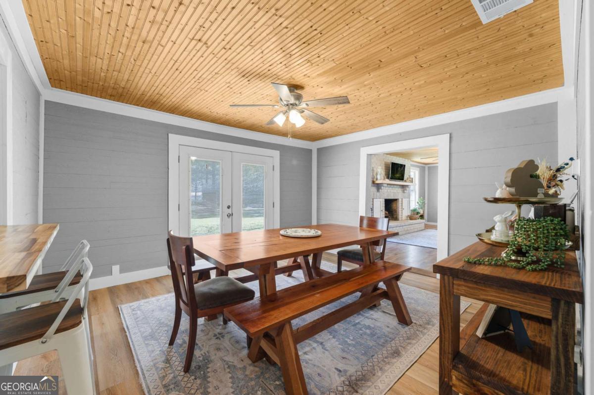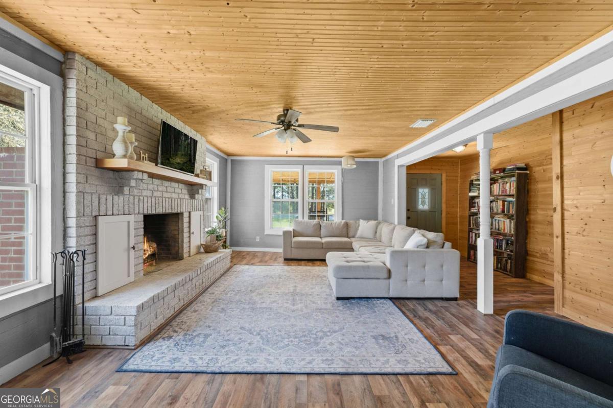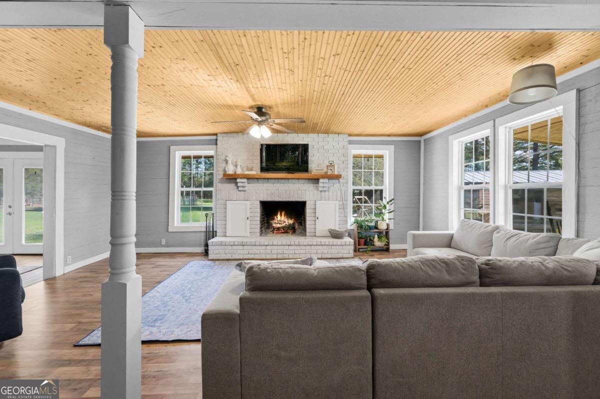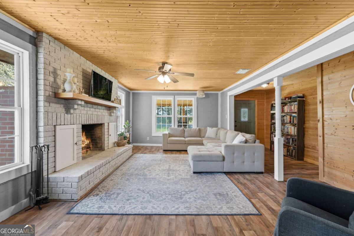 Step into timeless country living! The Blackwell House at Mizpah, a 1939 farmhouse set on 8.93 peaceful acres. Offering 2,431 sq ft, this 4-bedroom, 3-bath home features a first-floor master and bonus room with space to live, work, and gather. The sprawling porch, cedar siding, and tin roof deliver classic Southern charm, while knotty pine walls and a wood-burning fireplace create a warm, inviting interior. Outside, fenced pasture, multiple outbuildings, and a screened cookhouse provide endless possibilities for entertaining, hobbies, or homesteading. Tucked in a quiet, heritage-rich setting, the drive in is peaceful and relaxing. This is more than a home-it's a place to slow down, spread out, and make it your own.