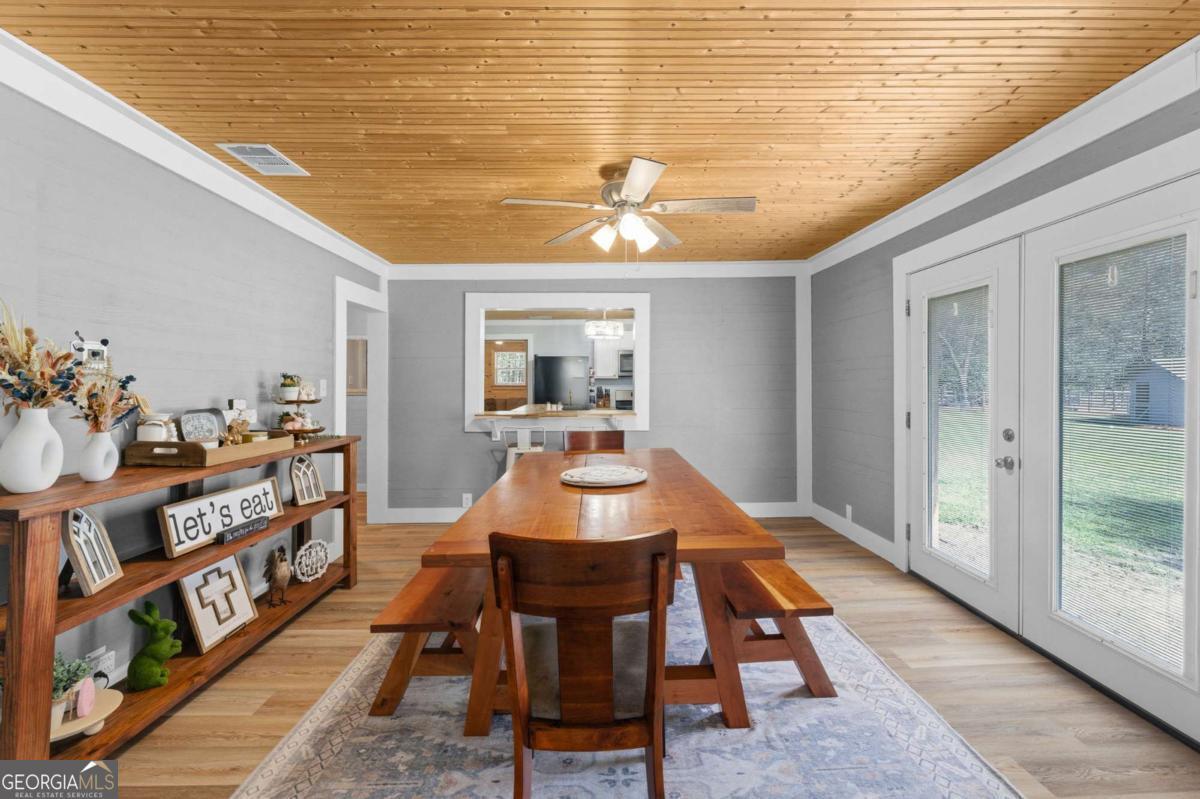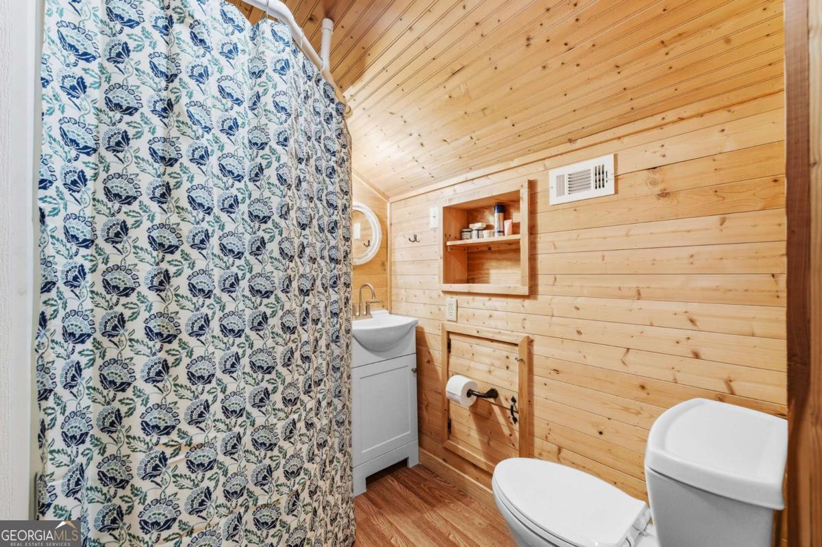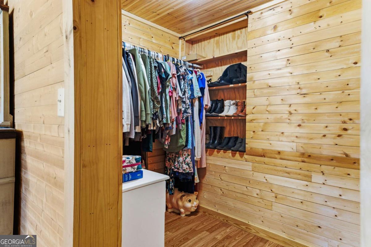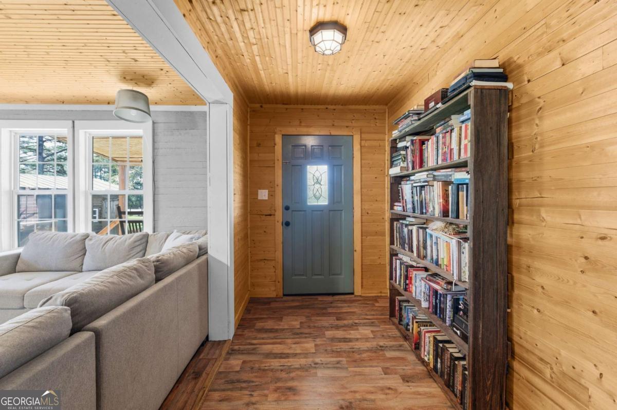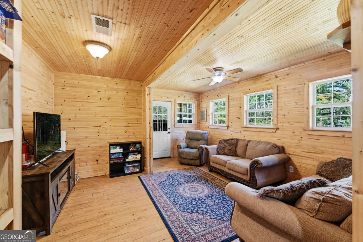 Step into timeless country living! The Blackwell House at Mizpah, a 1939 farmhouse set on 8.93 peaceful acres. Offering 2,431 sq ft, this 4-bedroom, 3-bath home features a first-floor master and bonus room with space to live, work, and gather. The sprawling porch, cedar siding, and tin roof deliver classic Southern charm, while knotty pine walls and a wood-burning fireplace create a warm, inviting interior. Outside, fenced pasture, multiple outbuildings, and a screened cookhouse provide endless possibilities for entertaining, hobbies, or homesteading. Tucked in a quiet, heritage-rich setting, the drive in is peaceful and relaxing. This is more than a home-it's a place to slow down, spread out, and make it your own.