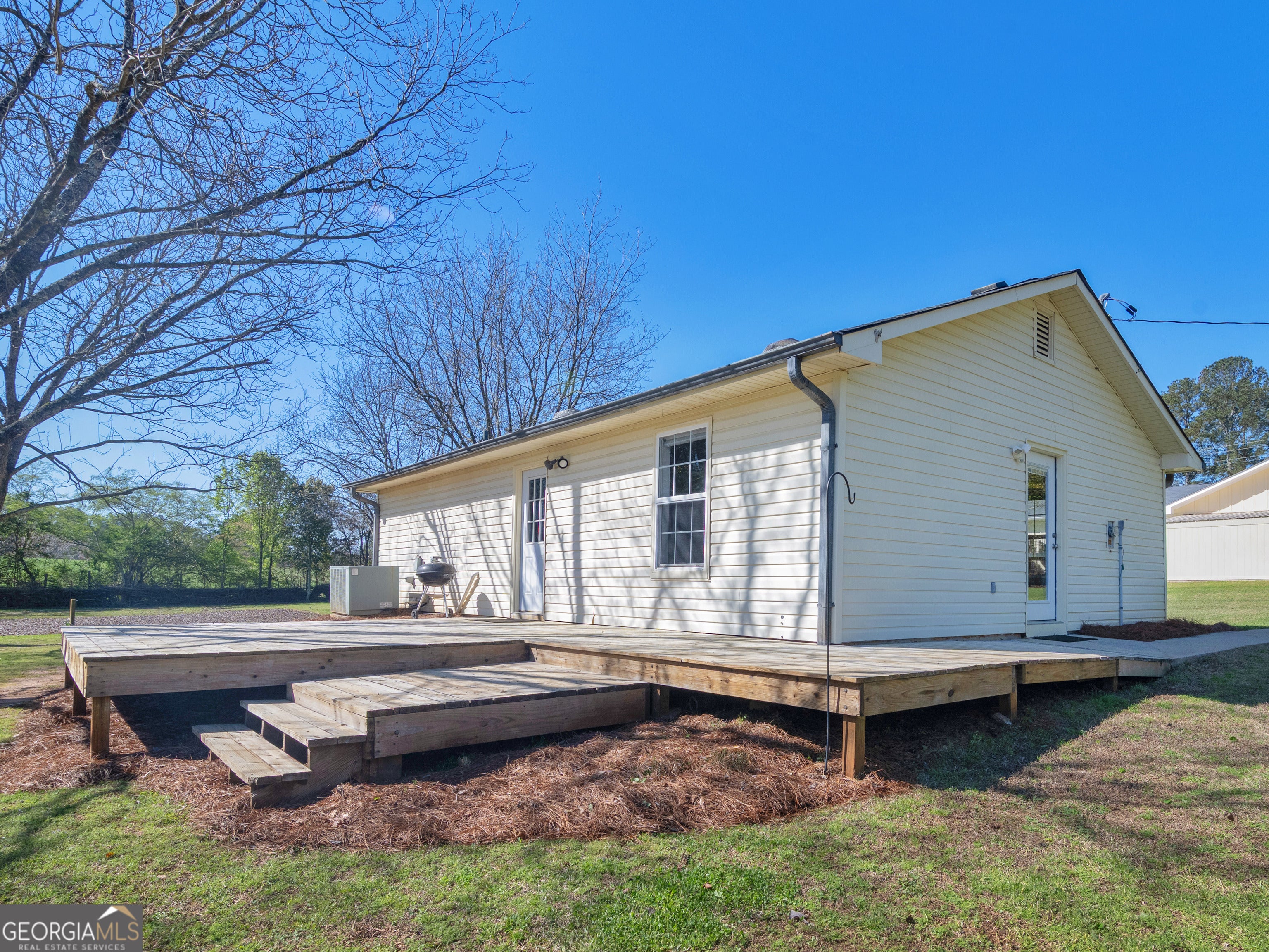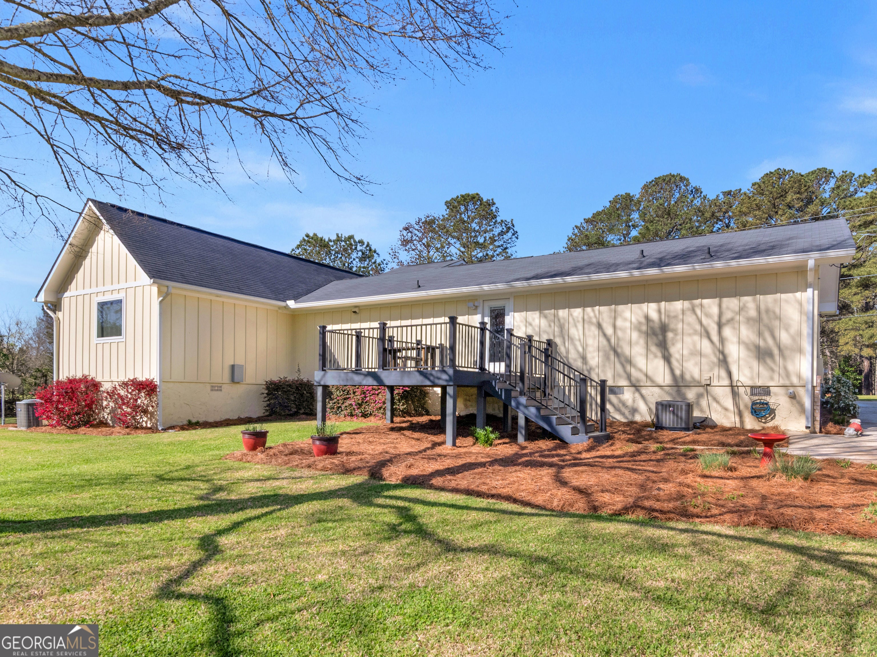 Don't miss this incredible opportunity to own a stunning renovated ranch home situated on 1.25 acres in the heart of McDonough! Thoughtfully updated and designed with a highly desirable split-bedroom floor plan, this property seamlessly blends modern comfort with timeless Southern charm. Featuring a newer roof and HVAC system, it offers both style and peace of mind. This exceptional property includes 3 bedrooms and 3 full bathrooms, along with a detached 3-car garage and a fully functional guest cottage perfect for multi-generational living or income-producing potential. The guest cottage is complete with its own kitchen, living room, private bedroom, and full bath. With a separate septic tank, power meter, and dedicated parking, it provides ultimate flexibility for guests, extended family, or rental opportunities. Step inside the main home to an inviting foyer that opens into a spacious, light-filled open-concept living area. Highlights include luxury vinyl plank flooring, granite countertops, and a beautifully designed kitchen and dining space ideal for entertaining. The living room features vaulted ceilings and a cozy fireplace, creating a warm and welcoming atmosphere. The oversized primary suite serves as a true retreat, showcasing tray ceilings, dual walk-in closets, and a stunning ensuite bathroom with double vanities and a large handicap-accessible shower. Two additional generously sized bedrooms offer ample closet space and are complemented by two full bathrooms, as well as a convenient mudroom/laundry room. Enjoy outdoor living at its finest with a well-manicured lawn and a Trex deck overlooking a peaceful backyard complete with a garden area and mature pecan trees perfect for relaxing or hosting gatherings. The approximately 1,300-square-foot detached 3-car garage has been transformed into a versatile space featuring a man cave and workshop. Enjoy amenities galore without the no HOA fee or subdivision restrictions offering the perfect blend of privacy and convenience. Take a short stroll to nearby Salem Park, where you'll find scenic paved walking trails, sports fields, disc golf, and a serene pond. You're also within walking distance to top-rated Union Grove Middle and High School, with shopping and I-75 just minutes away. Experience the ideal balance of peaceful, rural living with easy access to everything you need. This home truly has it all!
