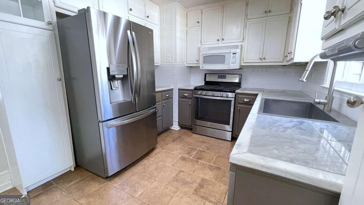- AppliancesDishwasher, Gas Water Heater, Ice Maker, Microwave, Oven/Range (Combo), Refrigerator, Stainless Steel Appliance(s)
