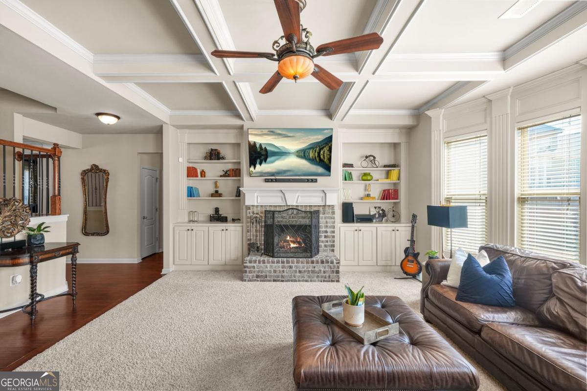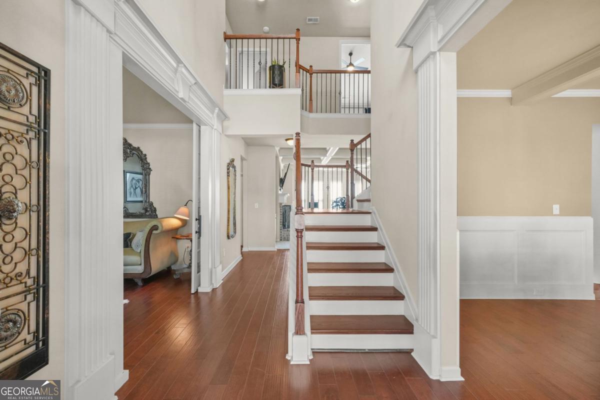 Nestled at the quiet end of a private cul-de-sac in an intimate community of fewer than 40 homes, this meticulously maintained, one-owner residence offers the perfect blend of sophisticated design and the warmth of home. Built in 2013, this 5-bedroom, 3-bathroom gem is a rare find for families seeking both space to grow and a community to belong to. Step through the front door into a soaring two-story foyer, where a grand staircase and gleaming hardwoods set an elevated tone. To your left, find a versatile home office or formal sitting room behind elegant glass-paned French doors, while the formal dining room features a striking double-trey ceiling and classic wainscoting, ready for holiday hosting. The rear of the home opens into an expansive, sun-drenched "heart" where the kitchen and family room flow seamlessly together. The chef's kitchen is outfitted with rich cabinetry, sleek granite countertops, and a massive island with breakfast bar seating. Note the clever built-in desk nook that's perfect for a homework station or home management hub. The great room is anchored by a stacked-stone fireplace and framed by floor-to-ceiling windows, the family room is crowned with dramatic coffered ceilings, creating a space that feels both airy and incredibly cozy. A true sanctuary, the oversized primary bedroom offers a private sitting area and a spa-inspired ensuite featuring dual vanities, a deep soaking tub, and a separate glass-enclosed shower. With five spacious bedrooms, there is ample room for a growing family, guest quarters, or a dedicated media room. The living space extends outside to a fully fenced backyard, offering a level, lush lawn where children and pets can play safely. Whether you're hosting a summer BBQ or enjoying a quiet morning coffee, the privacy of this cul-de-sac lot is unmatched. Schedule your private tour today and experience 1248 Austin Thomas Drive for yourself!