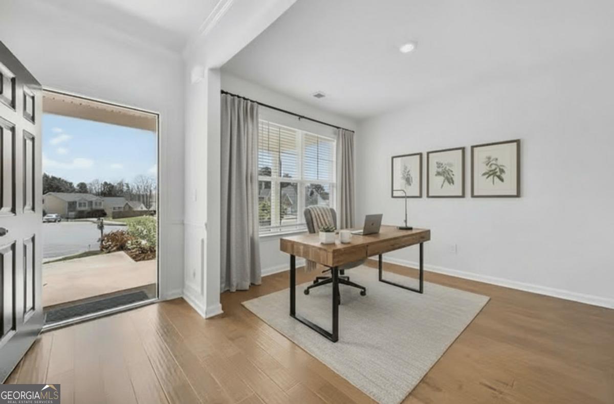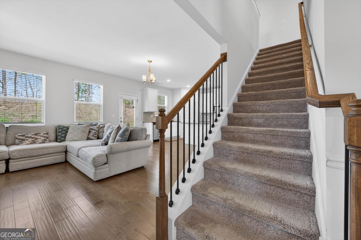 Welcome to this like-new, beautifully maintained home offering comfort, style, and everyday functionality, an ideal fit for first-time homebuyers or anyone looking for a move-in ready opportunity. Step inside to an inviting open concept layout featuring hardwood floors throughout the main level, abundant natural light, and a cozy fireplace that anchors the living space. The bright white kitchen flows seamlessly into the family room and includes an island for casual dining and entertaining. A versatile main level flex space provides the perfect setup for a home office or formal dining room. Upstairs, retreat to an oversized primary suite complete with a cozy sitting area, your own space to unwind at the end of the day. Spacious closets throughout the home deliver ample storage and functionality. Enjoy outdoor living with a private wooded backyard and a charming front porch, all situated on a quiet cul de sac lot. Located in a community with a pool, cabana, and playground, this home offers convenient access to major highways and is approximately 15 minutes from Hartsfield Jackson Atlanta International Airport, making it a great option for commuters and frequent travelers. A strong value for its condition and location, this home offers the benefits of newer construction without the price tag.
