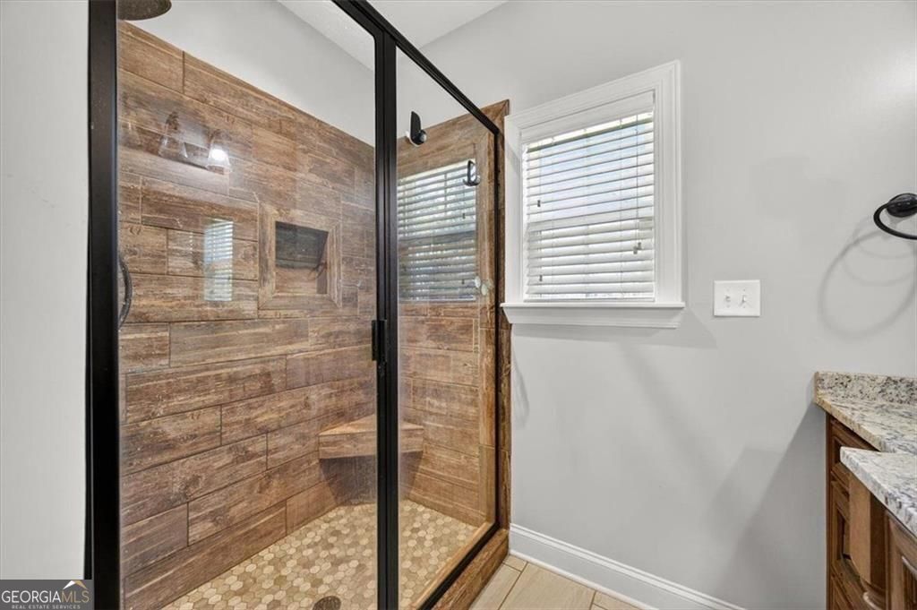 Striking and captivating in Riverbend at The Bluff, this stunning four-sided brick transitional home nestled on 1.3 acres, beautifully landscaped and is located in one of Bonaire's most desirable communities. Thoughtfully designed with luxurious finishes throughout, this move-in ready residence offers both style and functionality. Wide-plank engineered hardwood floors welcome you into a spacious family room that flows seamlessly into a designer kitchen featuring custom cabinetry, stone countertops, and stainless steel appliances-perfect for everyday living and entertaining. Outdoor living shines with a cozy screened porch and adjoining deck overlooking a private, fenced, walk-out backyard-ideal for relaxation or gatherings. Upstairs, a finished attic provides a dedicated office space with zoned HVAC, adding flexibility for today's lifestyle needs. The primary suite is enhanced by a custom closet system with built-ins, shoe racks, and dresser, along with upgraded flooring. Additional interior improvements include a pantry with wood shelving, a laundry room with added cabinetry, and a painted garage. Entertainment enthusiasts will appreciate professionally installed in-ceiling home theater speaker systems in both the living room and an upstairs room (7 speakers each). Major system updates include: Smart thermostats throughout the home, Replacement HVAC coils (2024), Serviced septic system (May 2025), Rheem dual water heaters with updated anode rods (July 2025), Updated smoke detectors throughout. The beautifully maintained grounds feature hummingbird-friendly landscaping and a cleared rear area beyond the fence, creating serene views and a peaceful bird-watching or meditation space. Neighborhood amenities include a pool, playground, and clubhouse. This exceptional home truly has it all-schedule your private showing today!