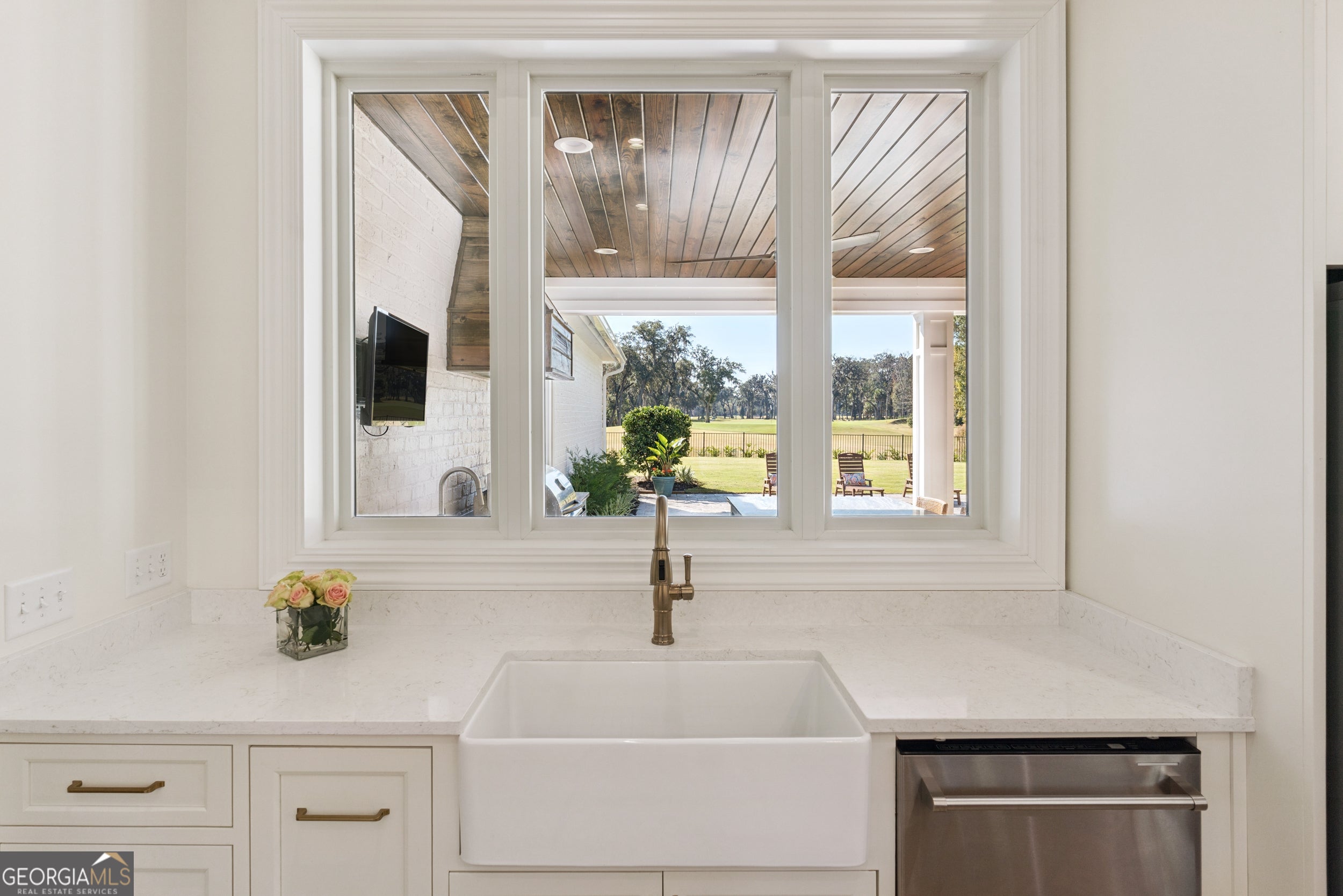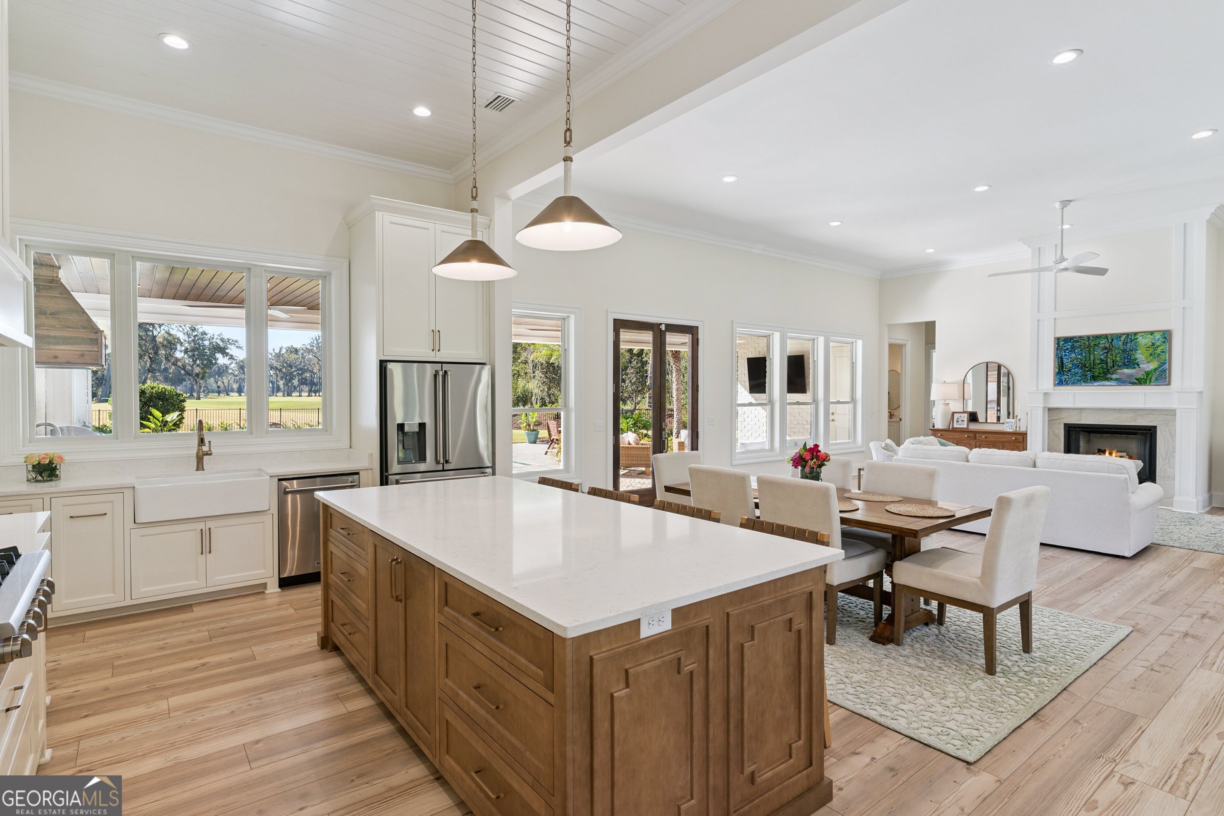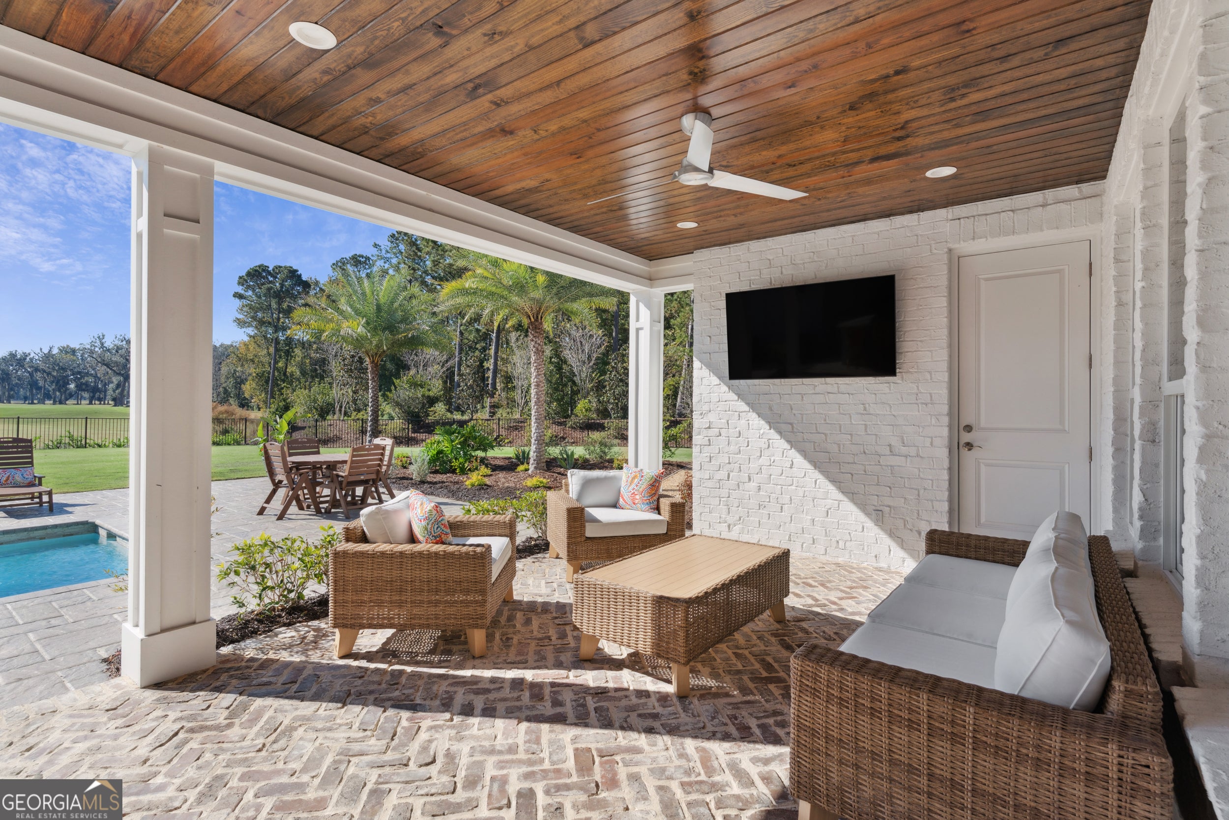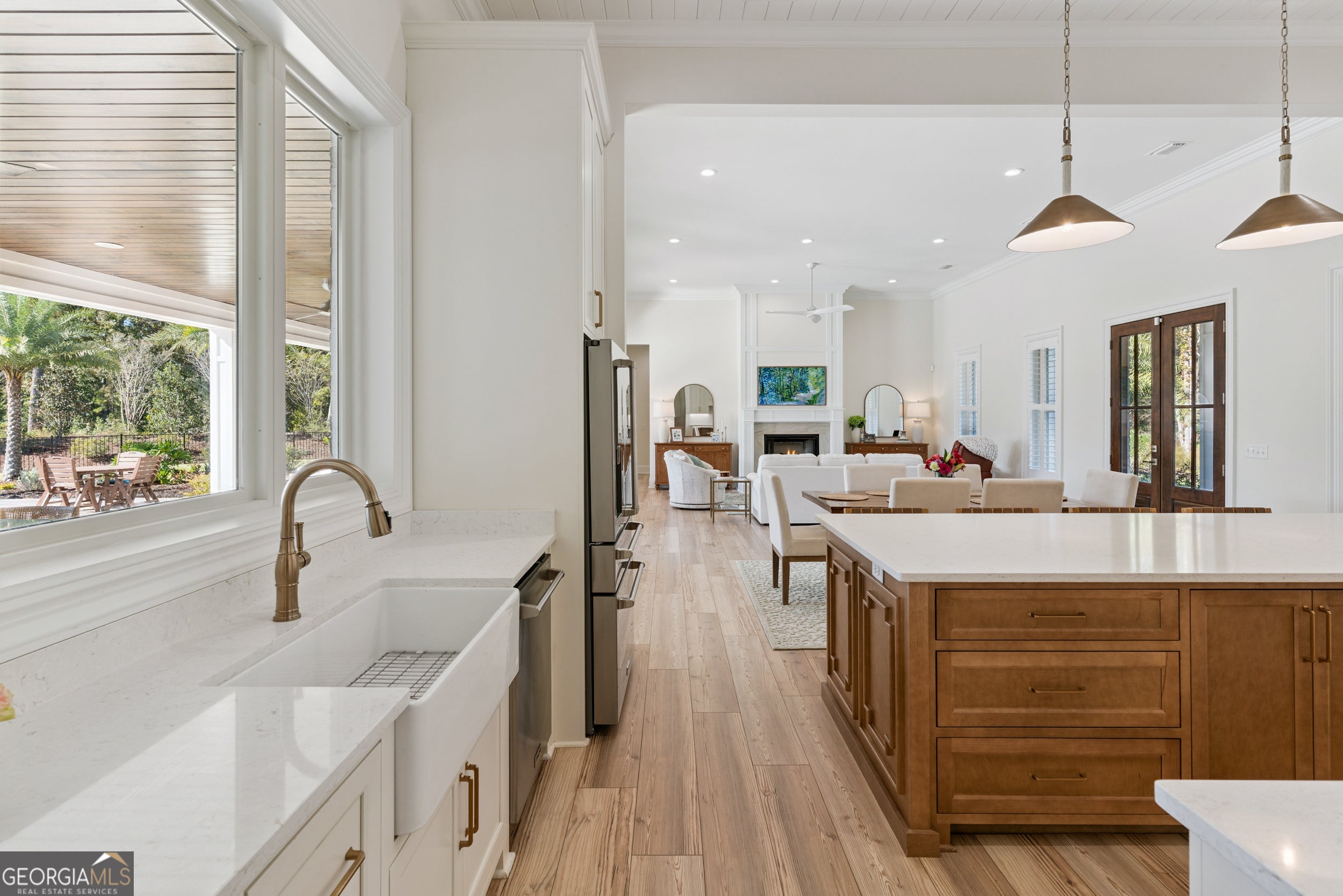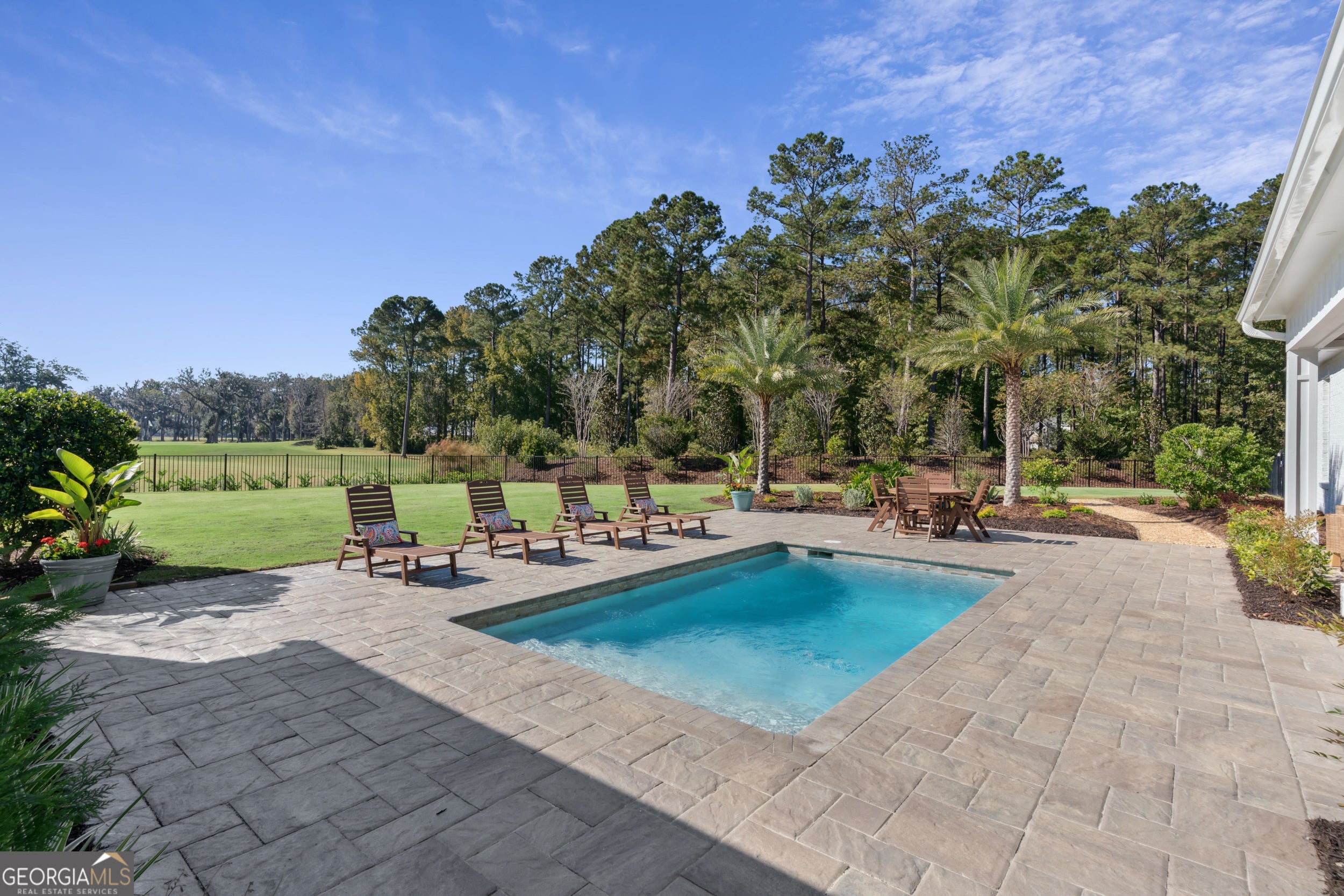 Sanctuary Cove places you in the heart of the Golden Isles-an area celebrated for its natural beauty, rich history, and unmistakable coastal charm. Beaches, parks, shopping, and dining are all nearby, offering endless opportunities for adventure, relaxation, and everyday convenience. This newly built custom home sits on an exceptional double lot overlooking the community's favorite fairway-Hole #9-with additional views of Hole #18 from the side yard. The backyard is a true oasis featuring an inground saltwater pool and a premium outdoor kitchen complete with a large island, Blaze grill, refrigerator, sink, and built-in trash bin. Polywood pool furniture can stay with the home at the buyer's request. It's the perfect setup for effortless entertaining, serene sunsets, and year-round outdoor living. Inside, the modern open-concept layout offers 2,585 sq ft of thoughtfully designed space, including four spacious bedrooms and three pristine baths. The climatized two-car garage (with mini-split), separate golf cart parking, and shark-coated flooring add comfort and practicality. A generous primary closet connects directly to the utility room for ultimate convenience. The white painted brick exterior with board-and-batten accents and gas-lit fixtures sets an elegant tone. Step inside to 14-foot ceilings, beautiful backyard views, custom cabinetry, quartz countertops throughout, wainscoting detail, a marble guest shower, and plantation shutters. The chef's kitchen features a Thor appliance package-complete with gas range-and a hidden walk-in pantry. The professionally landscaped yard showcases lush Bermuda grass, full irrigation, and a four-foot black aluminum fence. Both front and back porches feature tongue-and-groove ceilings and brick flooring, while gutters surround the entire home. Best of all, this property is located outside the flood zone, offering valuable peace of mind. Residents of Sanctuary Cove enjoy premier amenities, including a pool, clubhouse, dock, fitness room, and tennis courts. The acclaimed Love Golf Design/Fred Couples Signature course is steps from your door, providing world-class golf in an unforgettable setting. Don't miss this rare chance to own a brand-new home in one of Georgia's most celebrated golf communities. Experience the unmatched blend of luxury, comfort, and recreation at Sanctuary Cove Golf Club. To learn more about the community and its renowned course, visit their website. https://sanctuarycoveca.com/ Then contact your favorite Realtor to arrange a private tour. Welcome to Sanctuary Cove-where life isn't just lived... it's elevated.