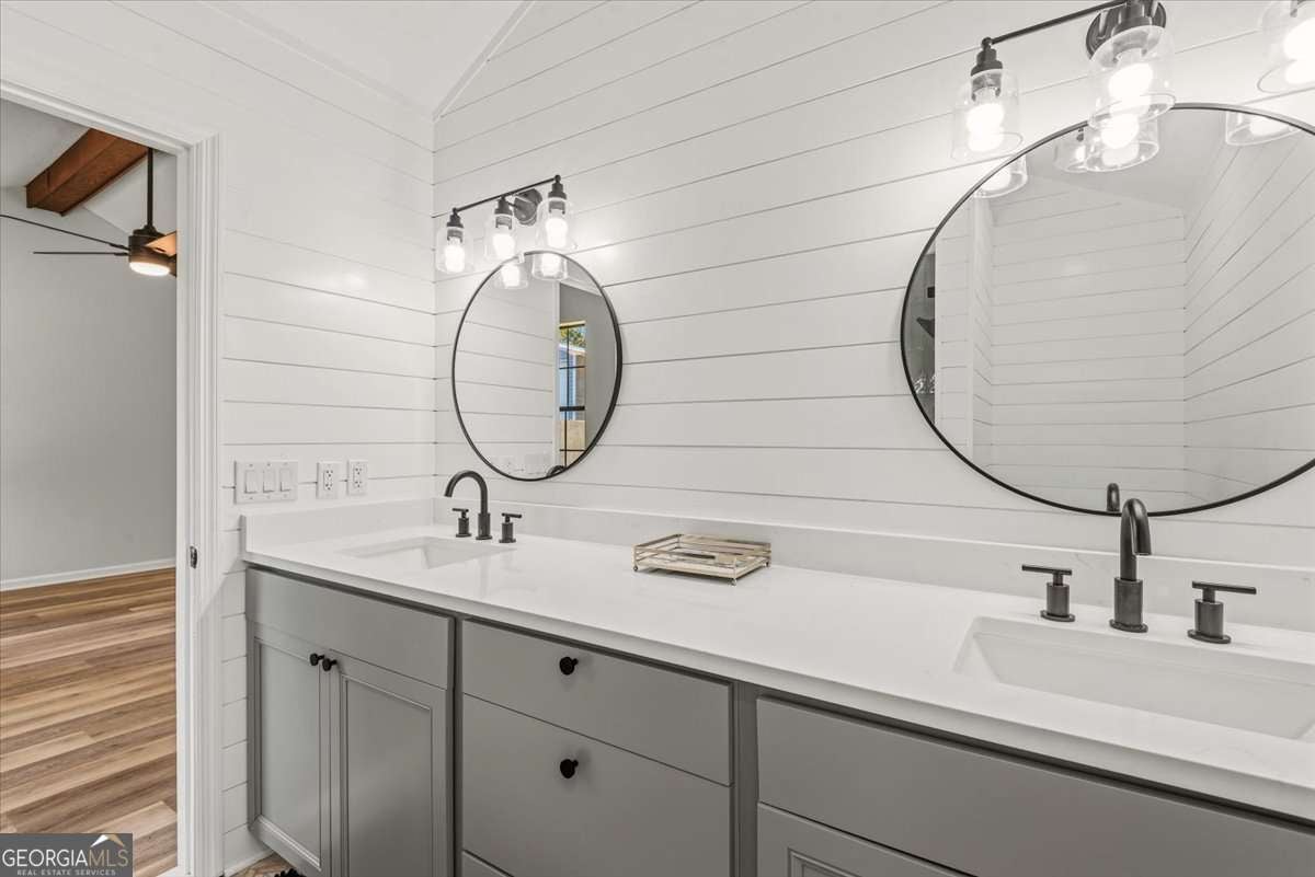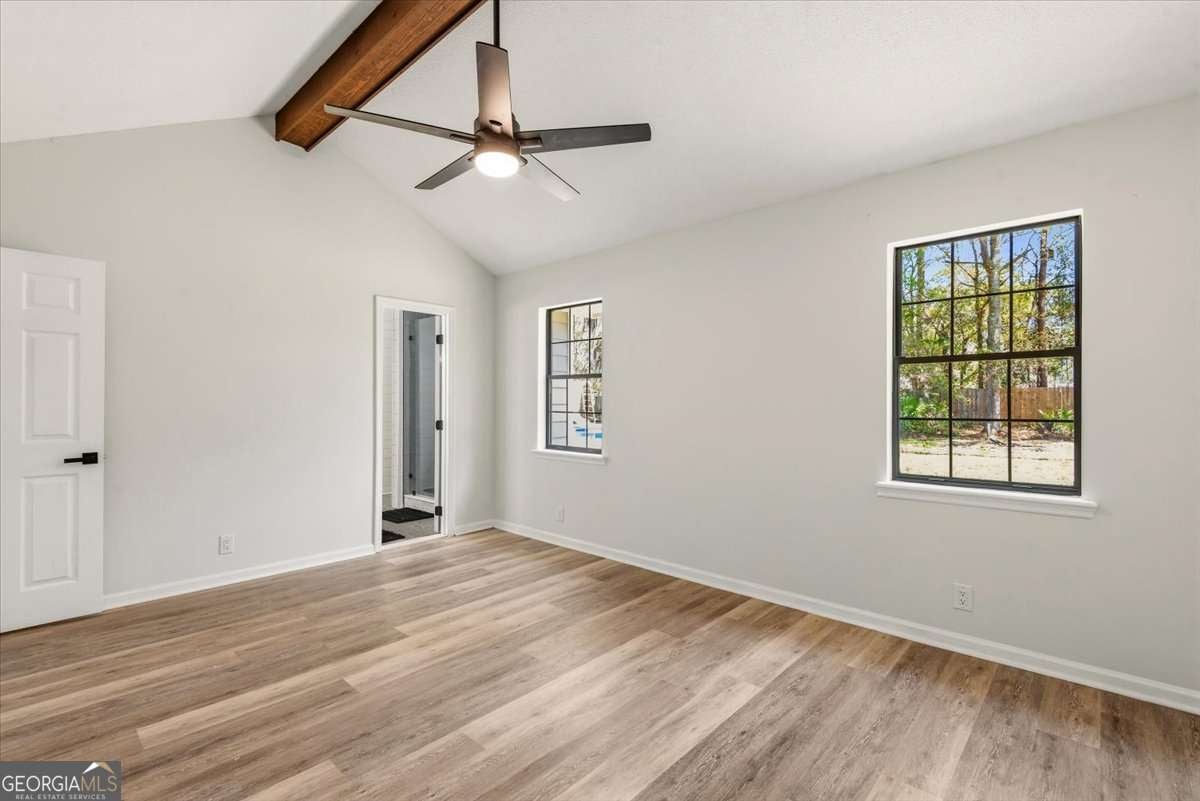 - Interior FeaturesBeamed Ceilings, Double Vanity, Pulldown Attic Stairs, Separate Shower, Vaulted Ceiling(s)