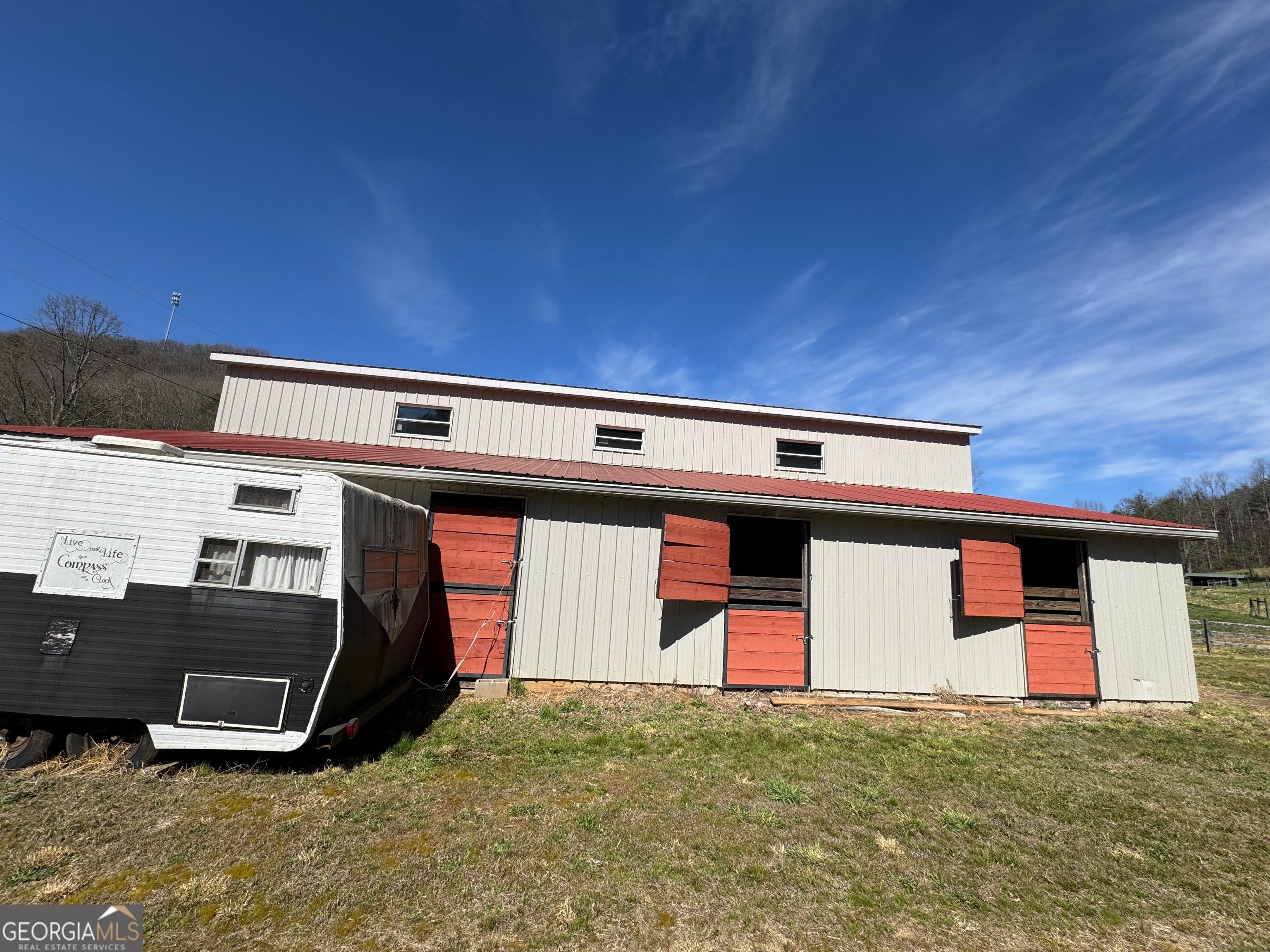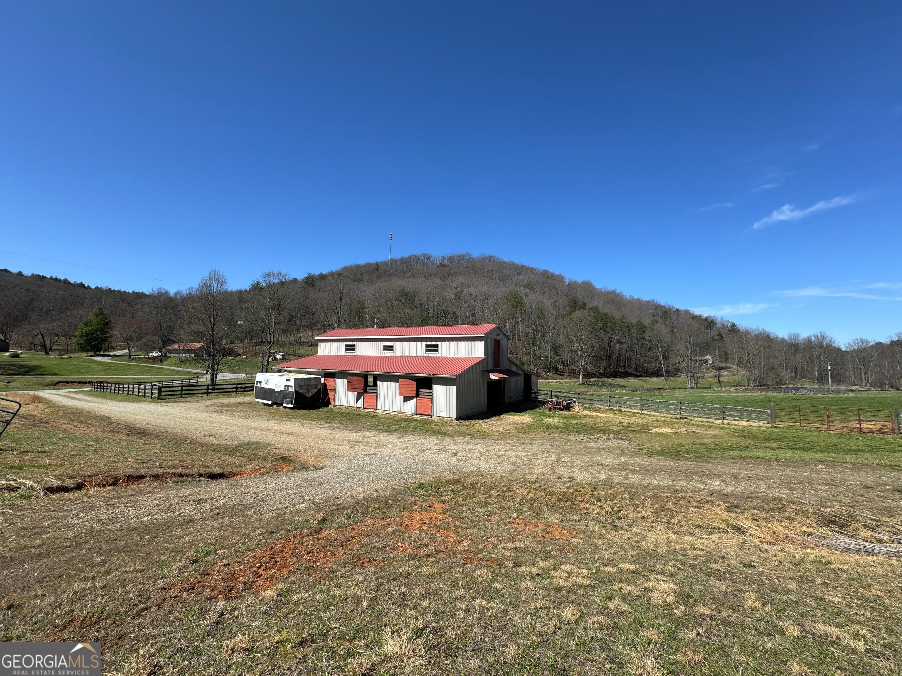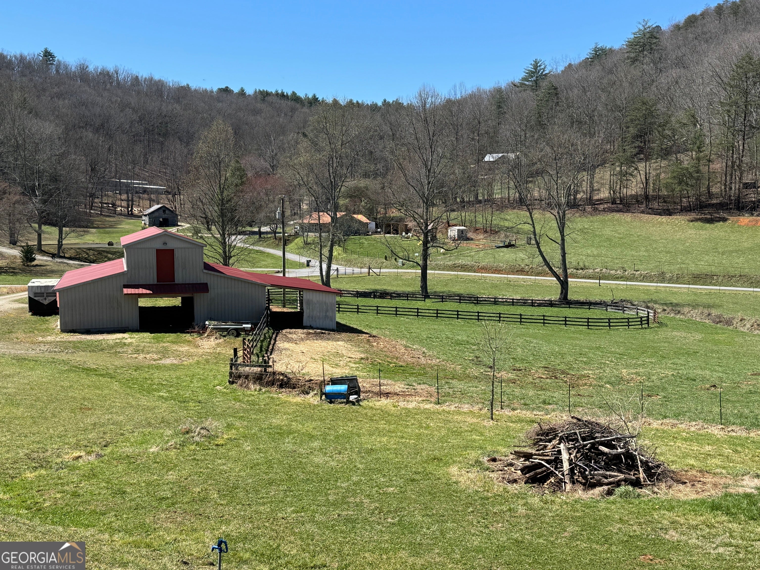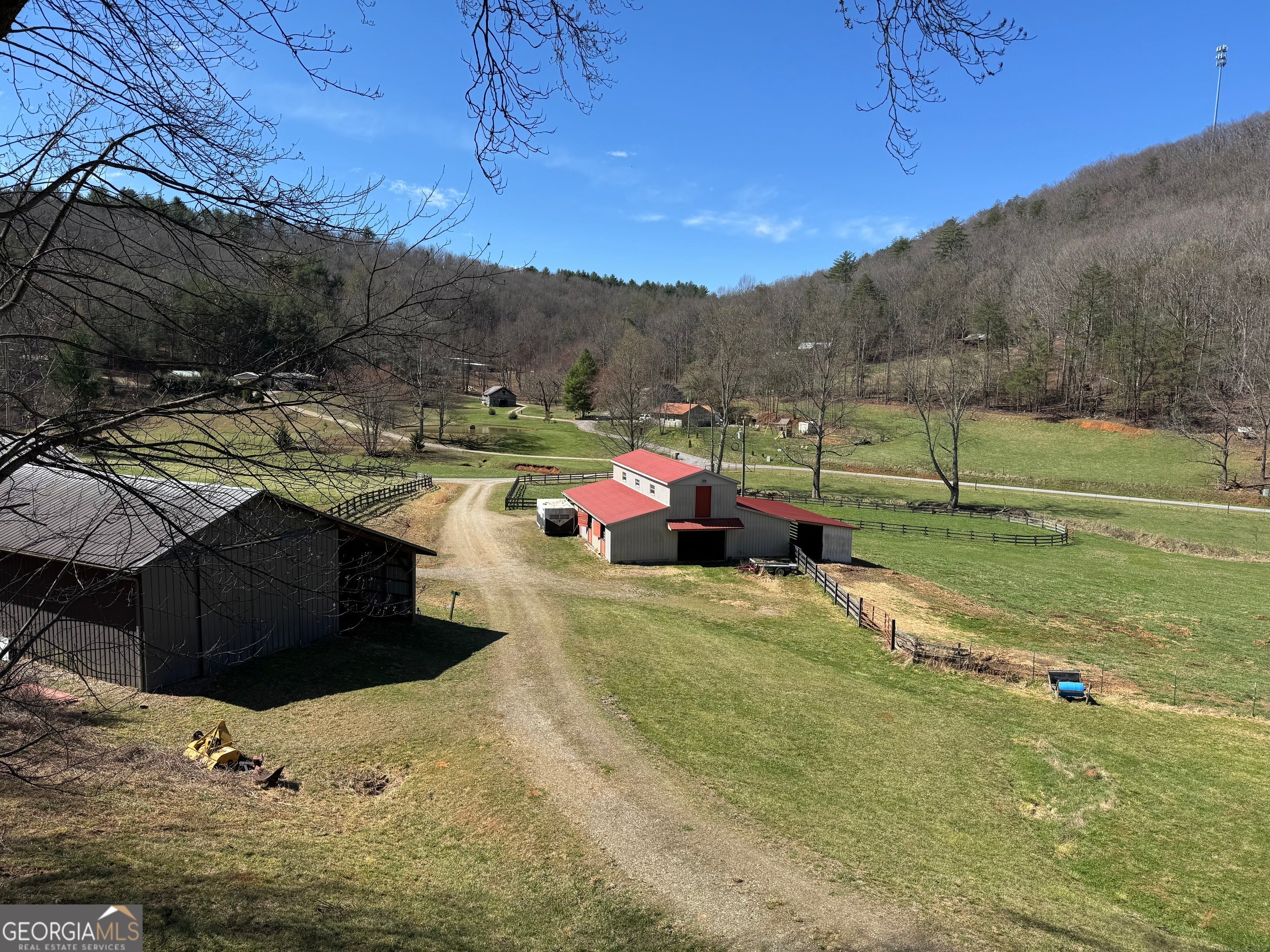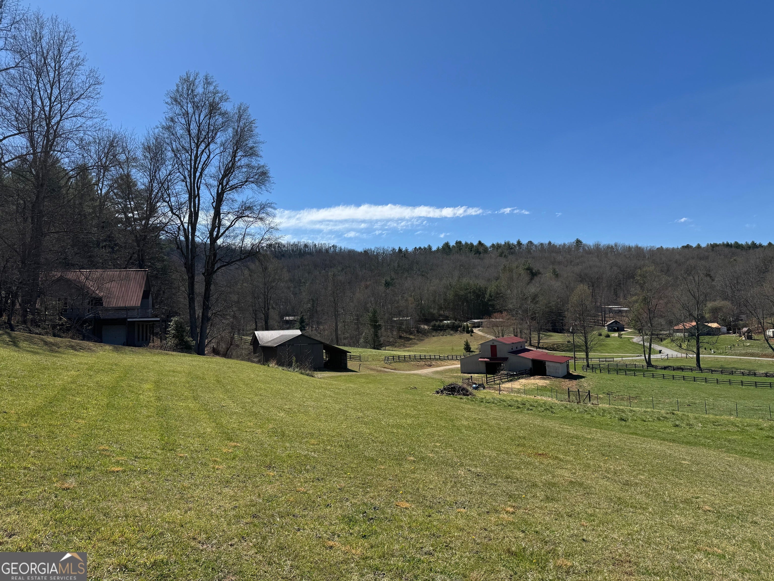 Welcome to your own slice of rustic luxury-an exceptional 6 acre farm offering breathtaking views, peaceful privacy, and endless income-producing potential. This one-of-a-kind property seamlessly blends the charm of a mountain-style cabin retreat with the functionality of a fully equipped equestrian estate. Tucked away in a serene setting, the beautifully maintained cabin comes fully furnished and comfortably accommodates 8-10 guests. The home features two main floor bedrooms as well as a cute loft bedroom upstairs which is great for guests. This cabin also has a full basement complete with garage door, laundry and plenty of space for storage or finish out with more bedrooms. With its warm wood interiors, inviting living spaces, and relaxed lodge-style feel, it's perfectly suited as a private getaway, full-time residence, or highly desirable short-term rental. Whether hosting family, guests, or vacationers, the home creates an unforgettable experience surrounded by nature. Designed with both lifestyle and function in mind, the farm is fully fenced and thoughtfully improved for equestrian use, hobby farming or come build your dream. home. The property features a well-appointed main barn with tack room, a riding arena for training or recreation, an equipment barn for storage, and a spacious hay barn that offers incredible flexibility-ideal for hosting events, gatherings, or additional income opportunities. The gently rolling acreage showcases picturesque views in every direction, providing the perfect backdrop for horseback riding, outdoor entertaining, or simply enjoying the peace and quiet of country living. With multiple structures already in place and ample usable land, the possibilities here are truly limitless-expand your farming operation, create a wedding or event venue, continue short-term rental income, or establish your own private retreat. Rarely does a property combine this level of charm, usability, and investment potential. Whether you're seeking a lifestyle property, an income-producing asset, or both, this extraordinary farm delivers...build your dream home, endless agricultural income including barn leasing, bees, flowers. Sold fully furnished. The adjoining 9+ acres of fenced pasture land with a small pond can be purchased. Owner Financing may be available to qualified buyers, inquire with agent.