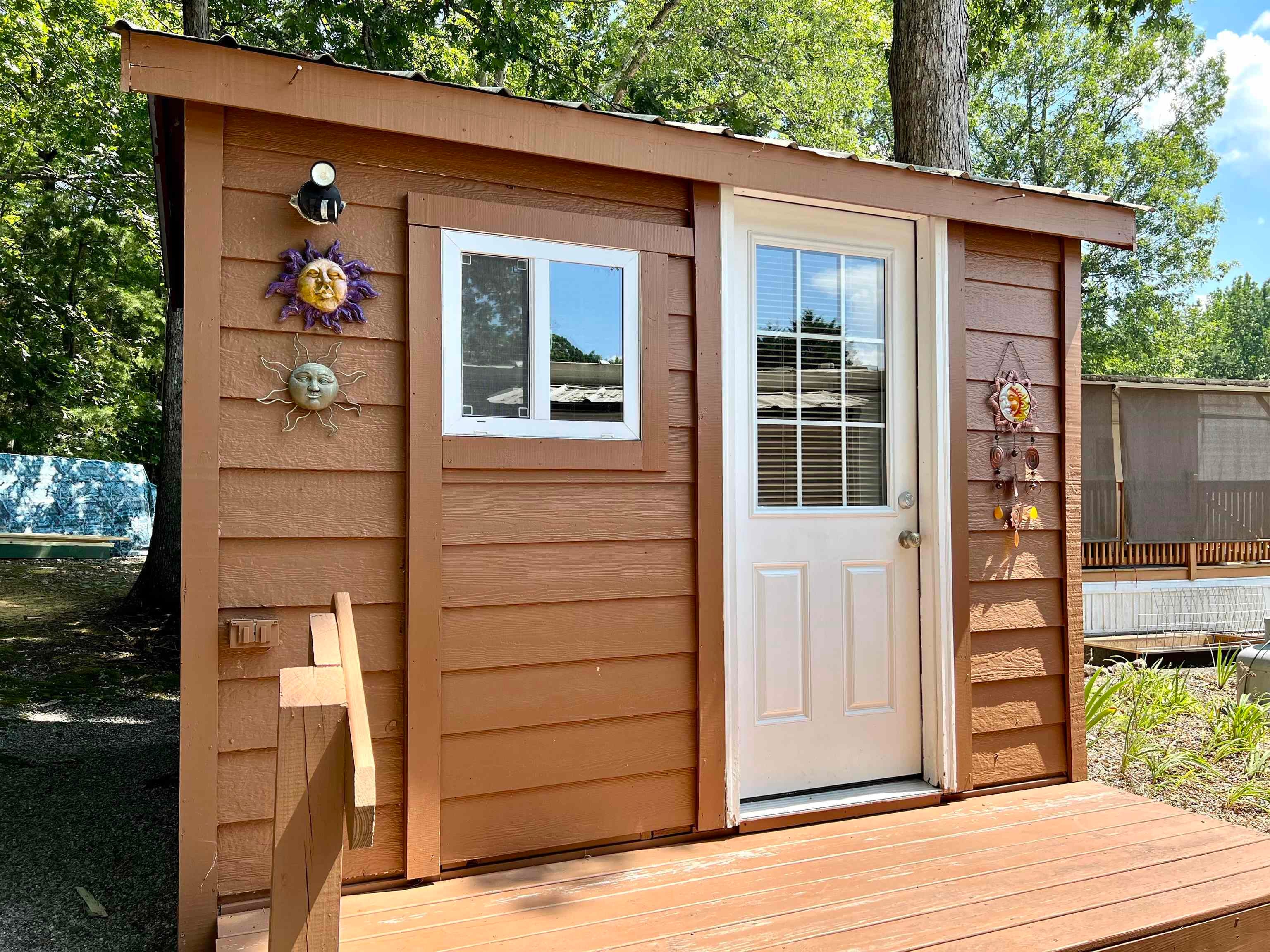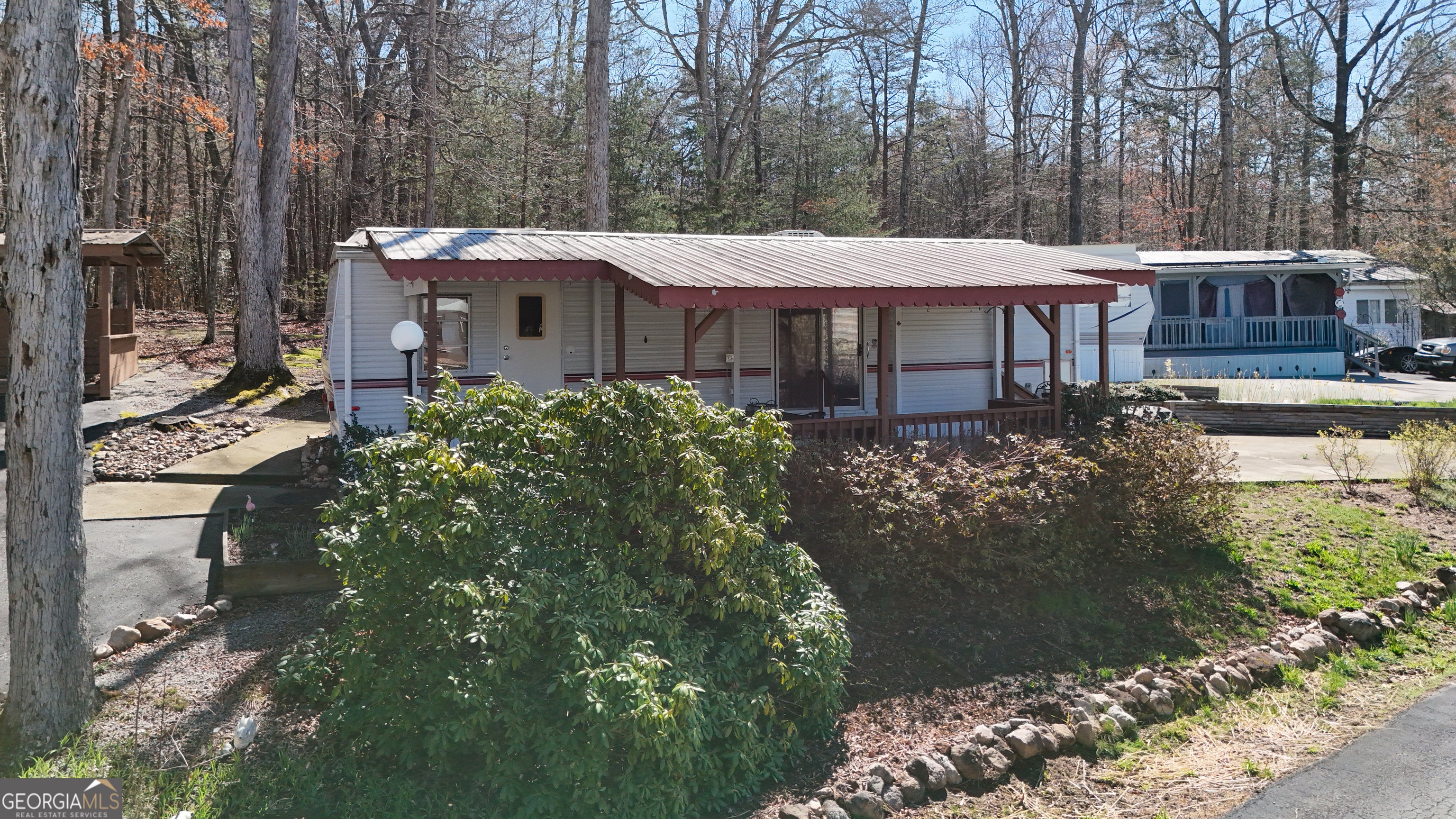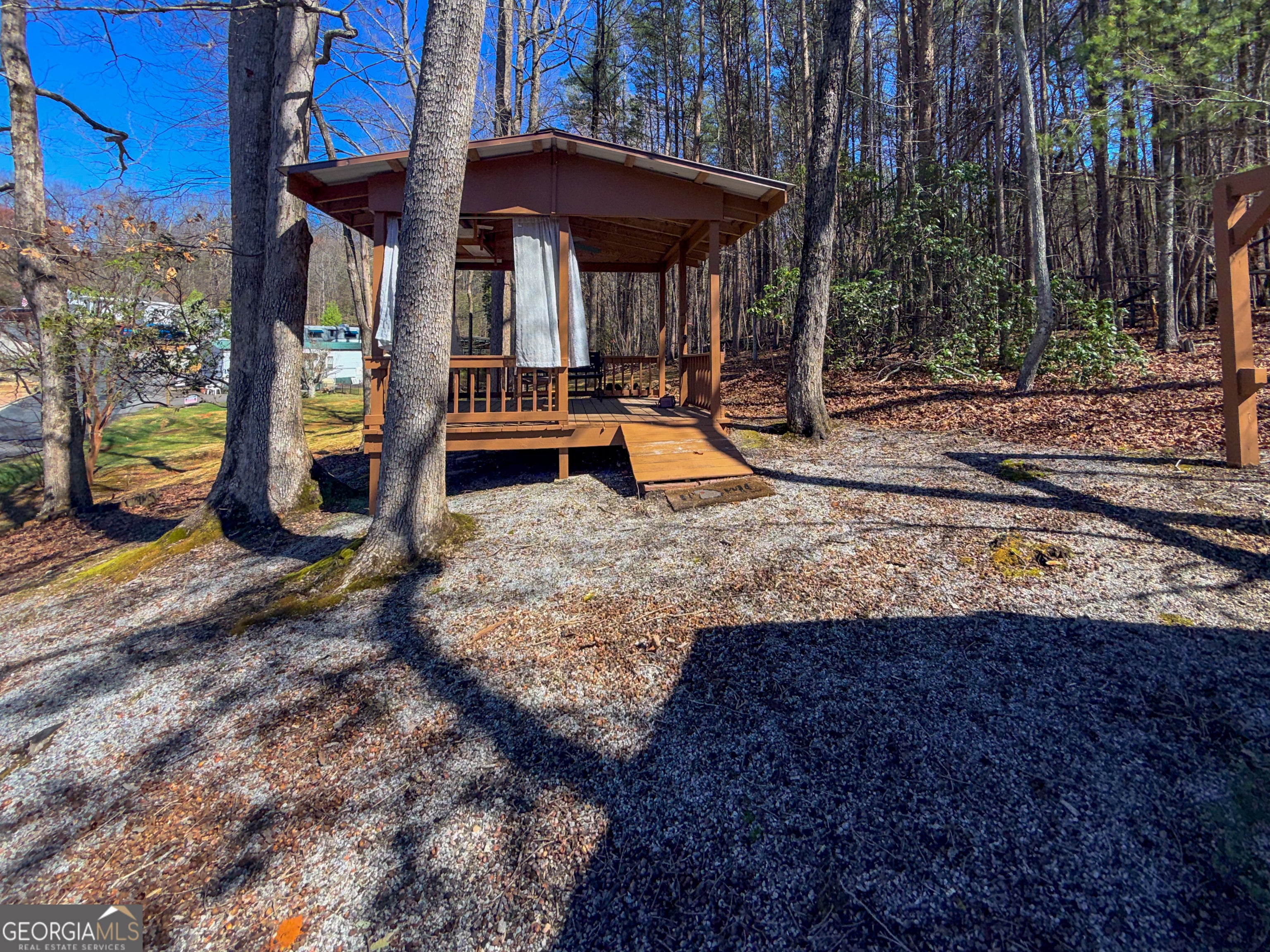 Oversized lot with a fully renovated park model loaded with extras! Relax or entertain on the huge covered front porch, then step inside to a beautifully updated interior featuring wood-accented walls, laminate flooring, a full-size walk-in shower, and a spacious living area with kitchen and pantry. Outside, enjoy an 8x10 outbuilding with laundry and storage, a 12x12 covered picnic/entertaining area with electric and ceiling fan, plus a covered fire pit-perfect for marshmallow nights! Paved parking and a wooded buffer provide convenience and privacy, with plenty of room for kids to play. Located in sought-after Yonah Mountain RV Park, offering seasonal Mt. Yonah views, clubhouse, in-ground pool, and easy access to Cleveland, Helen, hiking, fishing, wineries, and restaurants. Perfect as a family getaway or full-time home!