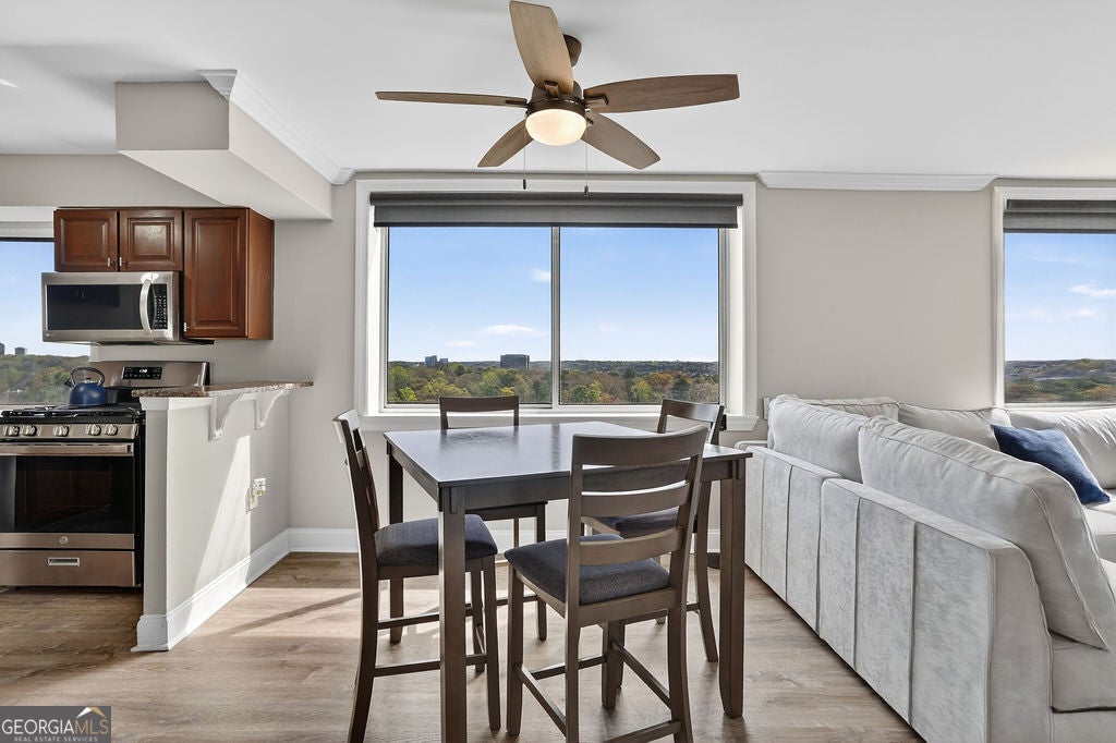 Experience elevated living in this stunning mid-century modern high-rise, ideally positioned in the heart of Buckhead. This desirable corner two-bedroom residence offers breathtaking views and an abundance of natural light through expansive windows, creating a bright and inviting atmosphere throughout. Thoughtfully designed for both comfort and functionality, the unit features a spacious walk-in closet, a convenient in-unit laundry closet, and a seamless layout perfect for modern living. Every detail has been curated to blend timeless style with everyday ease. Enjoy true resort-style living with premium amenities, including 24-hour concierge and security services, saltwater pool with multiple sun desks and patio spaces, fully equipped fitness center, outdoor grilling areas and lounge seating, resident lounge with pool table, TVs, bar, and ample natural light. This FHA-approved building offers hassle-free ownership with all utilities included in the HOA, making it an exceptional value for both homeowners and investors. Located just minutes from Phipps Plaza, Lenox Square, Midtown, and Hartsfield-Jackson Atlanta International Airport, with convenient access to major interstates, this residence places you at the center of Atlanta's finest shopping, dining, and entertainment.