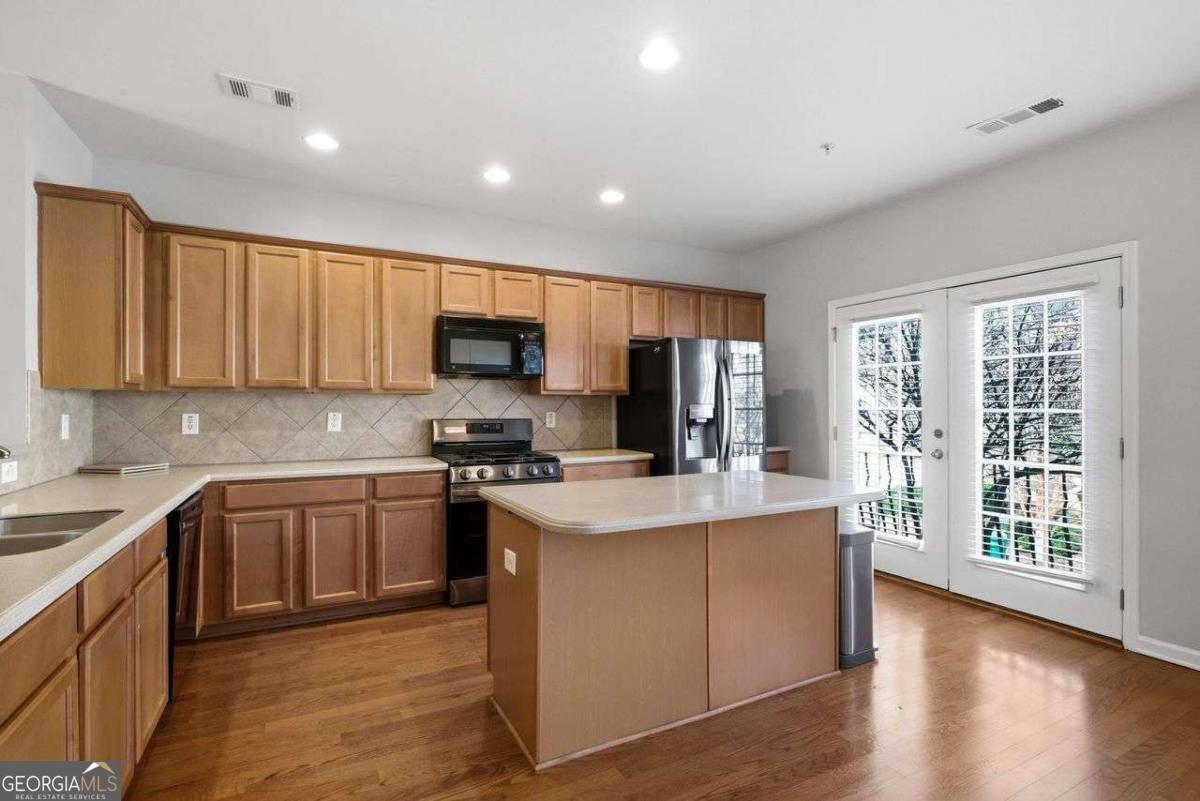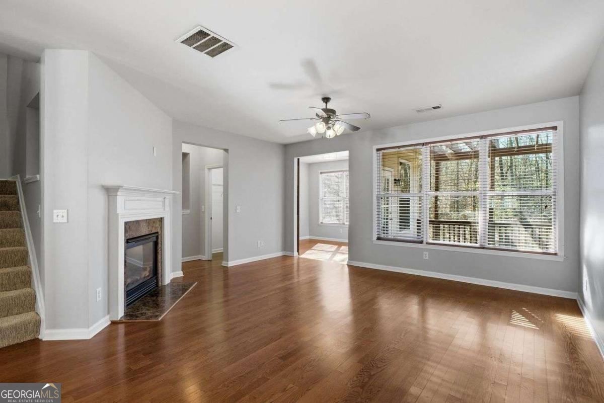 Welcome home to beautiful 6169 Indian Wood Circle. This 4 bedroom, 2 full baths, and 2 half baths, light-filled executive town home is move-in ready, featuring three finished levels, high ceilings, and an open floor plan ideal for both everyday living and entertaining. Enjoy your morning coffee or tea on your balcony overlooking peaceful trees and green space for added privacy. The main level offers a spacious kitchen with stained cabinetry and a breakfast bar that opens to the inviting family room with gas log fireplace. The large open concept kitchen and living room open up to a bright sunroom providing flexible space for entertaining, relaxing, or a home office. Upstairs you'll find three bedrooms and two full bathrooms including a spacious primary suite with vaulted ceilings, a spa-like bath with garden tub and separate shower, and a large walk-in closet. The finished terrace level includes a versatile media room or additional bedroom with walk-out access to a covered patio. Enjoy outdoor living with two decks overlooking the trees plus additional covered patio space below. Two-car garage with four total parking spaces. Enjoy an active lifestyle in the elegant Oakdale Bluffs community with swim, tennis, gym, clubhouse, and private access to River Line Park. River Line Park is a 14.2-acre park with multi-use fields, playground, pavilion, concessions, walking trails, a new splash pad and updated playgrounds for community members! Oakdale Bluffs is centrally located and a short drive to Vinings, Smyrna Market Village, The Battery Atlanta, Truist Park, and the Atlanta airport. This one checks all the boxes-don't miss it!