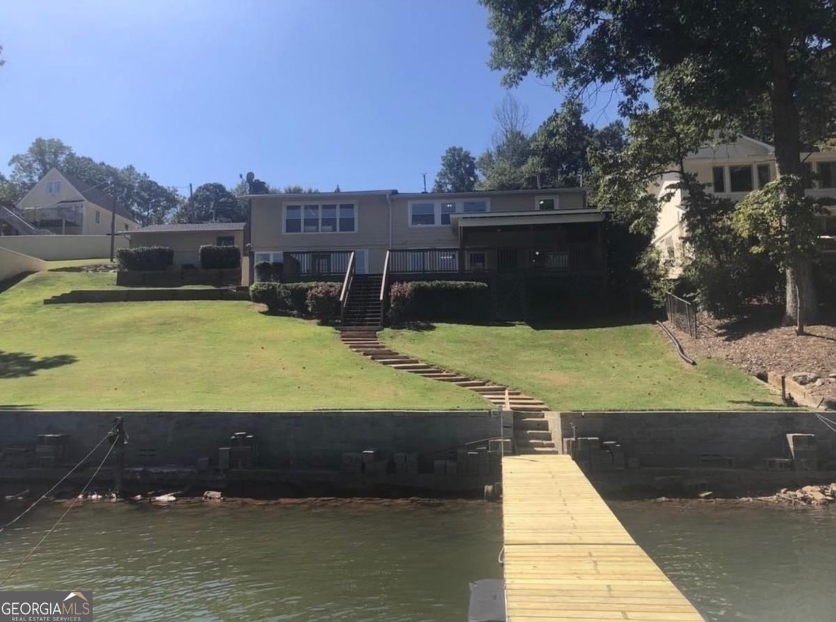 *Old Photos, Professional Pictures Coming Soon* Move-In Ready Ranch Lake Home in Buford! Covered Single Slip Party Deck Permitted Dock with Easy, Short Walk to Water through Grass Backyard, Across from Wide Cove and Lake Lanier Park. Painted Neutral Colors Throughout with Long Paved Driveway and 2 Car Garage, 2 Car Carport, and Parking Pad for Boat, Jet Skis, or more Car Parking. Full Length Back Deck, Partially Covered, with Outdoor Kitchen and Bar Area with Water Views. 3 Bedroom/ 2.5 Bathroom Upside Down Home with Family Room, Dining Room, Living Room, and Loft Area. Deep Water Access on Oversized Lot, Super Convenient South Lake Lanier Location!
