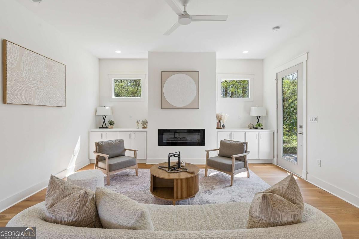 Experience refined INtown Atlanta living at its best! Built by Sherry Anne Homes and thoughtfully designed by Carl Mattison, this stunning 4-bedroom, 3-bath modern home blends sophisticated design with everyday functionality; just moments from the Atlanta Beltline and the city's most vibrant neighborhoods! From the moment you enter, you're welcomed by a light-filled, expansive living space defined by 10-foot ceilings, wide-plank hardwoods, custom built-ins, and a sleek fireplace; creating a warm yet contemporary focal point. The designer chef's kitchen is both striking and functional, showcasing clean architectural lines, a refined color palette, and exceptional scale. Outfitted with quartz countertops, custom cabinetry, stainless steel appliances, and an oversized island, it flows seamlessly into an open dining area - perfect for both entertaining and everyday living. A main-level bedroom and full bath offer flexibility for guests, a home office, or multigenerational living. Upstairs, the oversized primary suite serves as a true retreat, featuring soaring ceilings, abundant natural light, a spacious walk-in closet, and a spa-inspired bath with a double vanity and large dual shower. Additional generously sized bedrooms, a full bath, and a well-appointed laundry room complete the upper level. The cherry on the top is the oversized private rooftop terrace - an exceptional outdoor living space with endless potential. Whether hosting, relaxing, or customizing with an outdoor kitchen, it's the perfect backdrop for enjoying quiet mornings and evenings under the stars! Ideally positioned in one of Atlanta's most sought-after intown neighborhoods, you're just blocks from such ATL favorites as El Tesoro, Wrecking Bar Pub, and Fox Bros., as well as Little Five Points, Candler Park, Edgewood Retail District, the Atlanta Beltline, and Edgewood/Candler Park MARTA station. *This home is a modern duplex, with NO HOA (Fee Simple) - Unit B is the rear (and largest) unit. **For those seeking rental property/"house hack" options, Unit A (front unit) has a strong rental history and is potentially available for sale, as well. Photos of Unit A are included at the end.