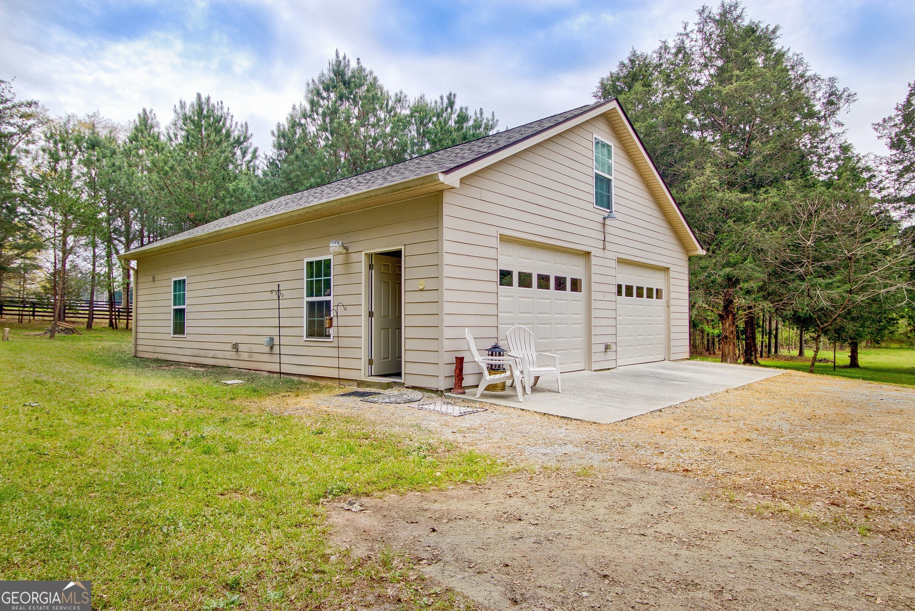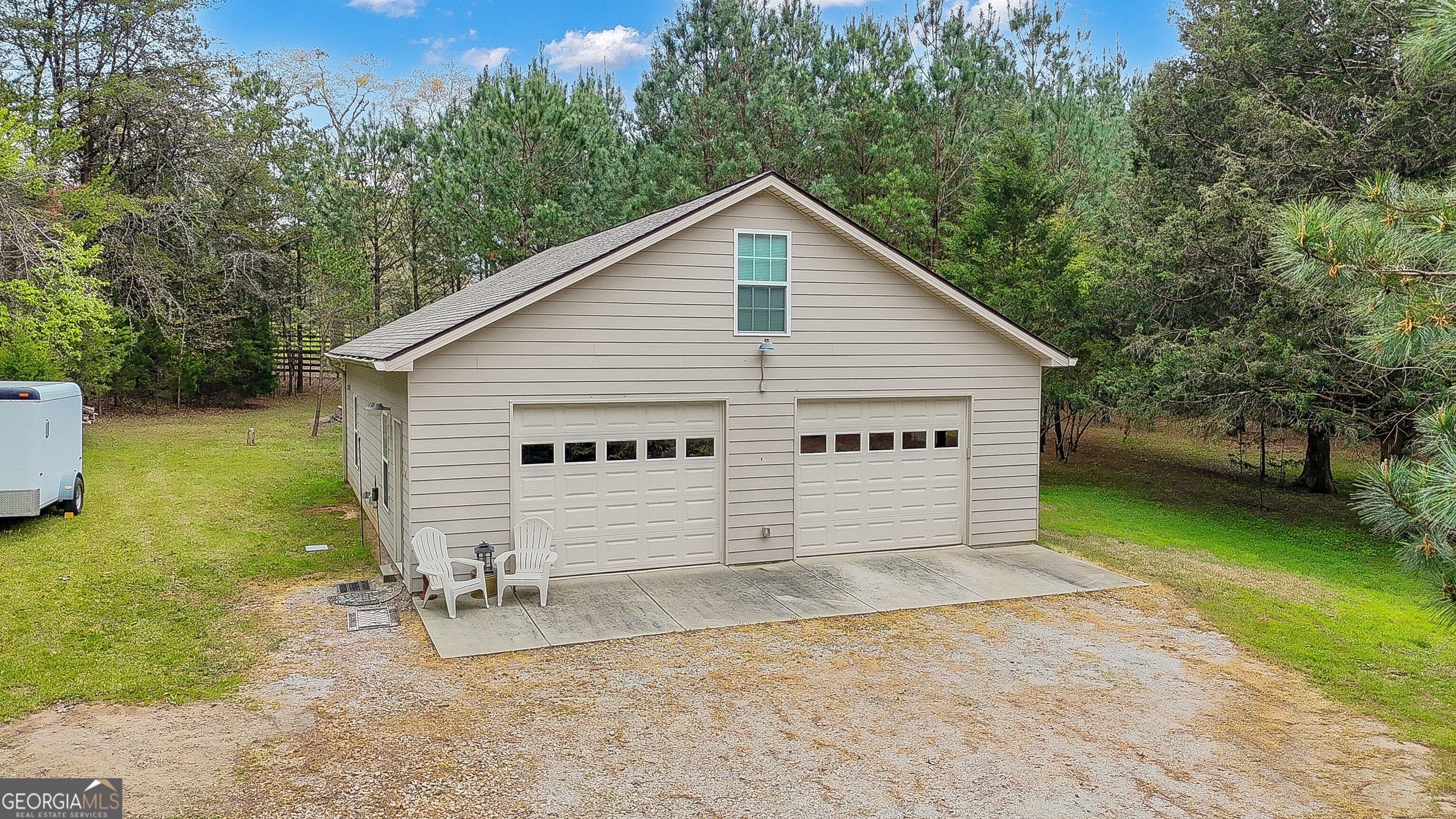 Professional pictures coming soon! Welcome to this IMMACULATE, warm, perfectly maintained 5 bedroom, 3 full baths, two-story Craftsman/Traditional style home nestled on a part cleared, part wooded 1.7 acre lot with a 32x40 DETACHED GARAGE/SHOP that RV and car enthusiasts, hobbyists, or business owners will love! Built in 2016 and thoughtfully enhanced since, this property offers the perfect blend of comfort, functionality, warmth and style. Step inside to a two-story foyer and visually enjoy the open staircase with wrought iron balusters, and the high ceilings that carry you throughout the home, creating an open and airy feel. The family room features a fireplace with stacked stone surround, perfect for cozy evenings, and flows seamlessly into the heart of the home-the warm, well designed kitchen that will help you enjoy making home cooked meals while entertaining or taking care of babies, complete with spotless granite countertops, double ovens, stainless steel appliances, and expanded cabinetry with pull-out drawers and desk feature for maximum storage and convenience. The flexible floor plan includes a MAIN LEVEL PRIMARY SUITE with ensuite and an additional bedroom with walk-in closet and direct access to a full bath, ideal for guests or multi-generational living. Upstairs, you'll find additional bedrooms, a loft area, and even more storage space, including easy attic access. Throughout the home, you'll appreciate the spotless condition and quality finishes-hardwood flooring in main living areas, tile in baths, and carpet in bedrooms and upstairs spaces. Function meets convenience with a separate laundry room downstairs featuring a utility sink and added upgraded cabinetry with plenty of room. Step outside to your private backyard where you will enjoy an extended patio across the back of the house-already equipped with concrete footers ready for a future enclosed patio. All systems have been well maintained and are in good working order. Additional highlights/upgrades include: Cement board siding with stacked stone accents, smooth ceilings, oil-rubbed bronze fixtures, custom tile work, SunFilm on windows around front door and high window in foyer, storm/screen front door, and a fireplace screen, both the attached and detached garages feature epoxy floors and keypads for easy access, and there is RV parking with a 50-amp hookup-a rare and valuable feature, extensive storage throughout the home, termite contract in place for both the home and shop! Meticulously cared for and truly move-in ready. All of this located in a desirable community offering amenities such as a pool, kiddie pool, and pavilion. This is a rare find combining space, upgrades, and privacy-schedule a showing today! Don't miss your opportunity to call it home!