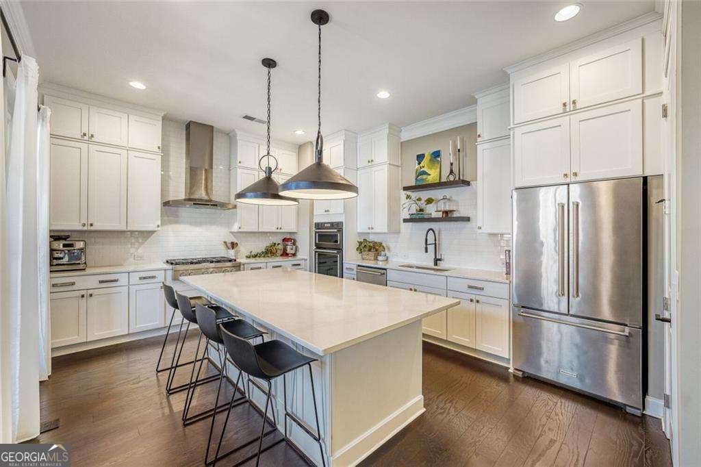 Absolutely stunning end unit townhome located in the heart of Brookhaven walkable to everything you would need being restaurants, shopping, marta, etc. This pristine, mint condition home offers an open light filled floorplan perfect for modern living and entertaining. The stunning all white kitchen is a true showpiece with a clean, timeless aesthetic that feels both fresh and sophisticated. The spacious layout features a seamless flow between living, dining and kitchen complimented by high end appliances and finishes. The large master has a sitting room and huge custom walk-in closet. The secondary upstairs bedroom is also large and could even be a second master suite. The basement offers an additional third bedroom plus a bonus room perfect for a gym, media room or office. The beauty of this end unit is that it offers an abundance of natural light and has a private deck right off the kitchen perfectly sized for morning coffee, a glass of wine, hosting an intimate gathering or just relaxing. The advantage of this prime positioned end unit lets you enjoy the feel of your own private green space of the beautifully maintained common area that sits off your front door and lives like your own private yard without the responsibility of maintaining it. The gated community offers security, lush landscaping and a dog park. A "Definite Must See" !!