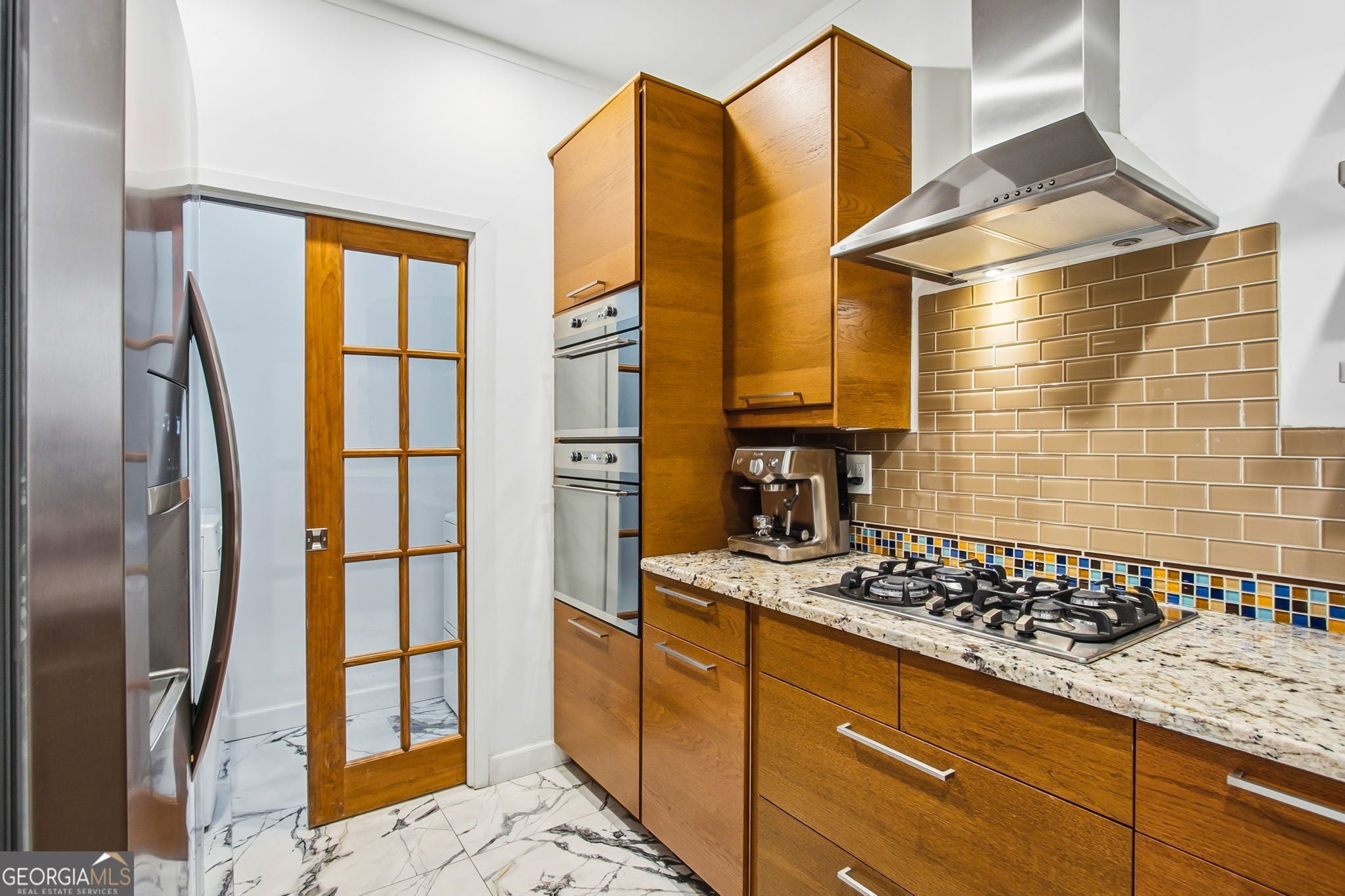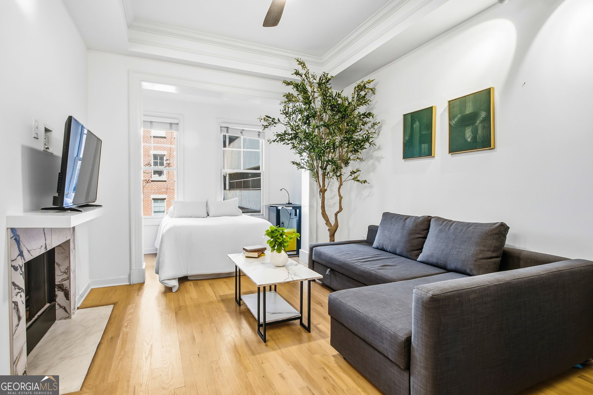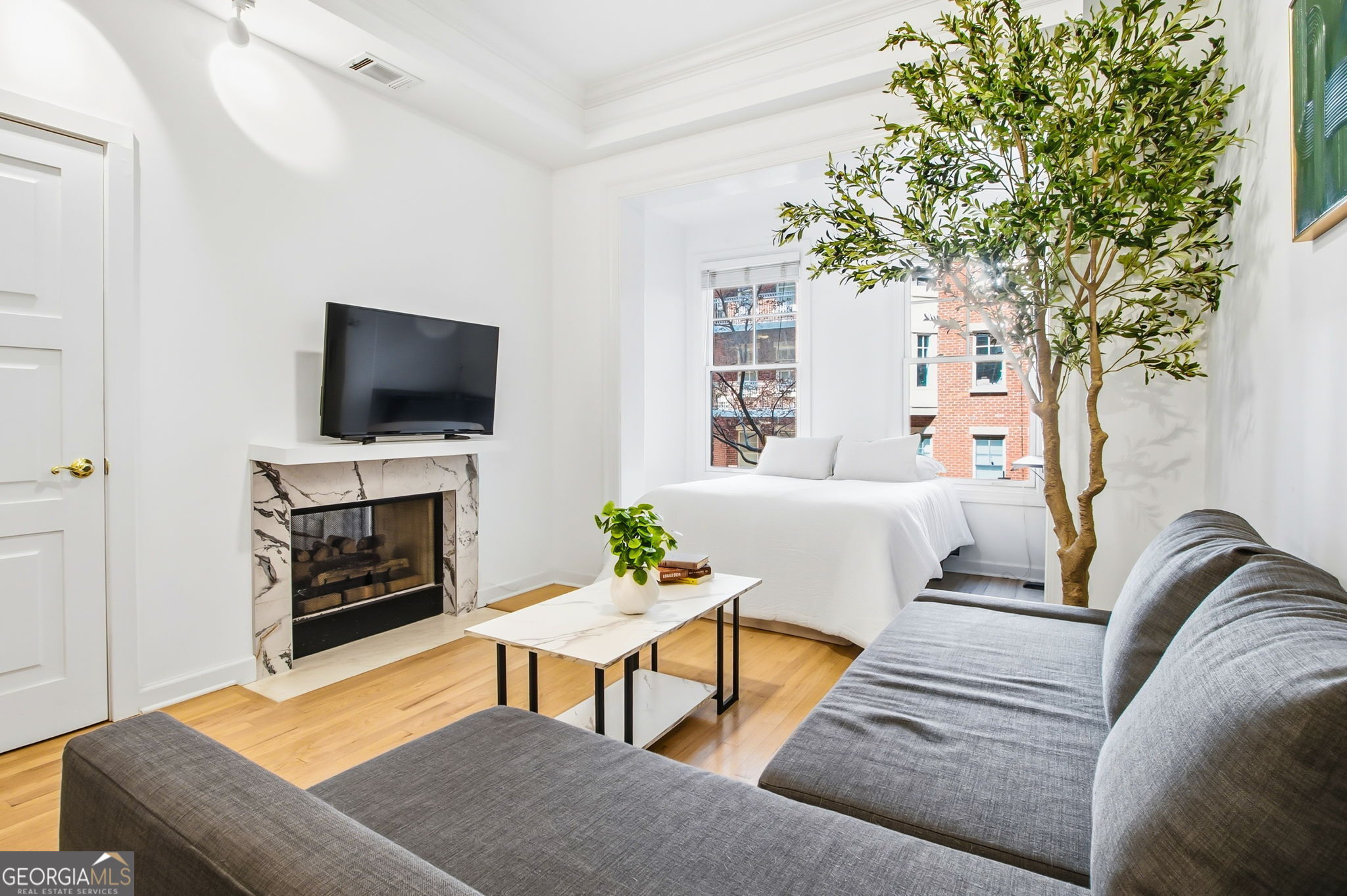 Timeless Midtown living meets thoughtful renovation in this striking 2-bedroom residence at The Dakota, one of Piedmont Avenue's most established addresses. At nearly 1,600 square feet, Unit 1205 delivers the space, character, and finish level rarely found at this price point in the heart of Atlanta. Step inside and the tone is set immediately: 10-foot ceilings, elegant crown molding, and warm hardwood floors flow through every living space. Classic architectural columns frame the formal dining room, anchoring a layout that moves effortlessly from entertaining to everyday living. The chef's kitchen is a showpiece with custom walnut cabinetry, granite countertops, a hand-laid mosaic glass tile backsplash, and a premium stainless steel appliance suite including a Bertazzoni gas cooktop, XO range hood, KitchenAid dishwasher, counter-depth refrigerator, and convection wall oven. A raised granite breakfast bar keeps the kitchen connected to the dining room, and an in-unit LG washer and dryer sit neatly behind a French door. The living room centers on a double-sided gas fireplace framed in Carrara marble, visible from both the living room and second bedroom, paired with oversized windows flooding the space with afternoon light. French doors open to a private balcony overlooking The Dakota's signature courtyard garden: stone pathways, sculpted topiaries, a bubbling fountain, and seasonal plantings that feel worlds removed from Piedmont Avenue below. The primary suite features tray ceilings, a custom-fitted walk-in closet, and a spa-caliber en-suite bath with a jetted soaking tub, frameless glass shower, marble tile surround, and a floating espresso vanity with Carrara marble countertop. The second bedroom shares the double-sided fireplace and, with its own tray ceiling and generous proportions, works beautifully as a guest suite, home office, or media room. The Dakota's amenity package is exceptional: rooftop pool and sundeck with Midtown skyline views, fire pit lounge with stacked-stone pillars, fitness center, community catering kitchen, and on-site management. The unit includes two deeded covered parking spaces, a rare perk in Midtown. Location is where The Dakota truly stands apart. Steps from Piedmont Park, the Beltline's Eastside Trail, and the Atlanta Botanical Garden. A short walk to the Fox Theatre, Colony Square, and Ponce City Market. MARTA's Midtown Station is walkable, and I-75/85 puts Buckhead, the airport, and Downtown within easy reach. Walk Score: 93. Two bedrooms. A double-sided fireplace. Two covered parking spaces. One of the best-located buildings in Atlanta's most walkable neighborhood.
