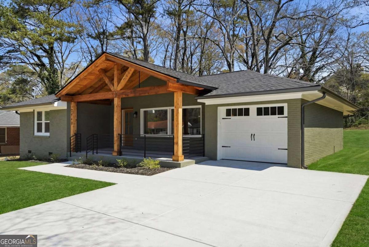 Beautifully renovated 4 -bedroom, 3- bathroom ranch home featuring a modern open concept layout designed for comfortable living and entertaining. This property offers vaulted ceilings in the living room and primary suite , elegant hardwood floors throughout, and stylish kitchen complete with stainless steel appliances and quartz countertops. Enjoy outdoor living with a covered front porch and a spacious front and backyard , perfect for relaxing or hosting gatherings . Conveniently located near shopping, dining, major highways, and Hartsfield-Jackson Atlanta International Airport. Move-in ready and a must-see.