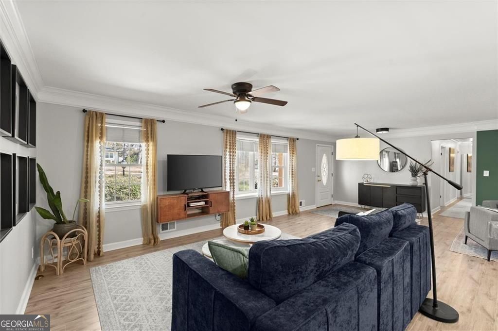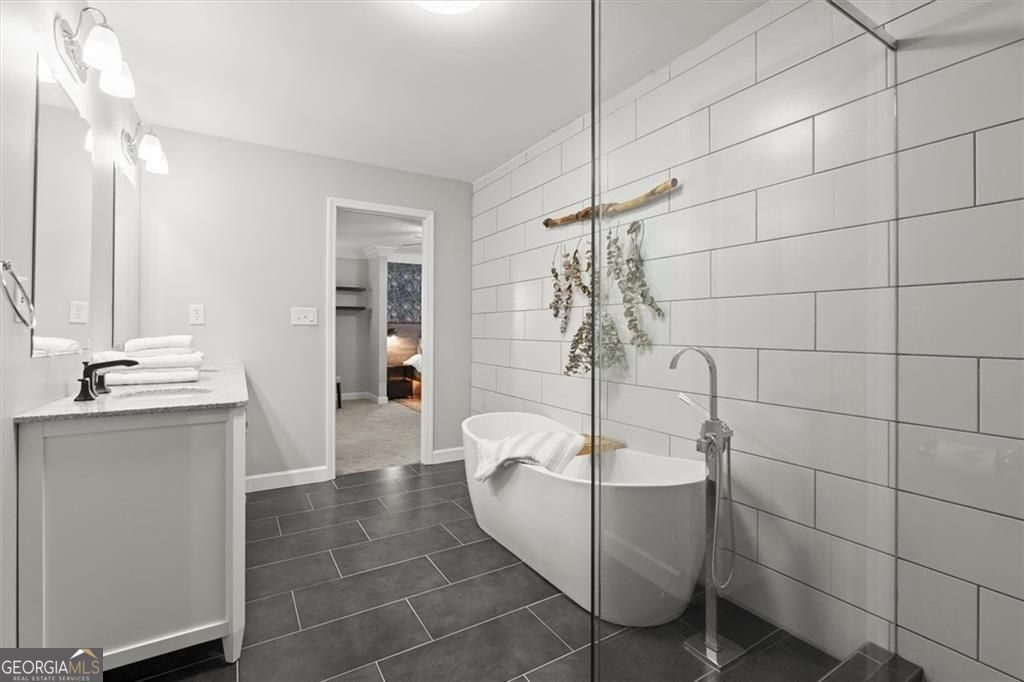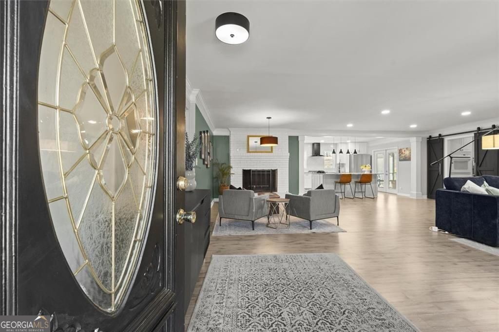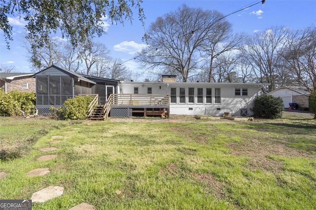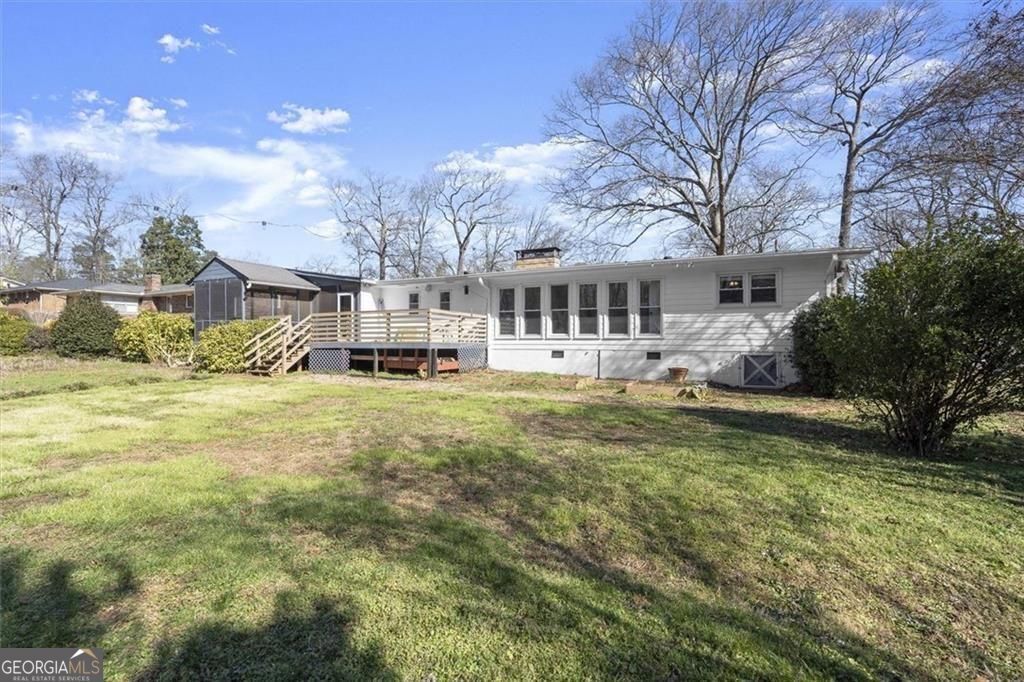 IDEAL LOCATION, INCREDIBLE UPDATES- NEW INCREDIBLE PRICE REDUCTION Located less than 5 minutes from Discovery Park, Georgia Gwinnett College and Northside Hospital Gwinnett, and just one mile from Downtown Lawrenceville's Aurora Theatre, shopping, dining, and entertainment, this home delivers unmatched convenience and lifestyle. Bright and gorgeously updated brick ranch with a hard-to-find open floor plan, this 3-bedroom, 2.5-bath home in Lawrenceville offers the perfect combination of space, style, and flexibility-with NO HOA and NO rental restrictions, making it ideal for both homeowners and investors. Step inside to discover luxury LVP flooring, smooth ceilings, and a large open-concept living area filled with natural light. The common area offers a huge, open living area that allows for multiple seating and or dining areas. As well, a large sun-filled bonus room with floor to ceiling windows that looks over the lush backyard can be an office, dining, den or just additional space for entertaining; perfect for modern living and entertaining. The chef's kitchen is a true centerpiece, featuring an oversized 87" x 62" island, granite countertops, farmhouse sink, stainless steel appliances, and a rare additional scullery/catering kitchen with a huge walk-in pantry for maximum storage and functionality. The oversized primary suite serves as a private retreat with two walk-in closets and a fully renovated, spa-inspired bathroom complete with dual vanities, a soaking tub, and a separate shower. Two additional spacious bedrooms share a beautifully updated full bath, while a brand-new half bath adds convenience for guests. Enjoy outdoor living year-round with a screened-in porch with ceiling fan and an expansive deck overlooking a private, wooded backyard. A cooled outbuilding provides flexible space for a potential 4th bedroom, home office, gym, yoga studio, or creative retreat. The backyard directly connects to scenic walking and hiking trails, backing up to Bartow Jenkins Park. This is one you need to see inside to appreciate. Seller is offering a Home Warranty