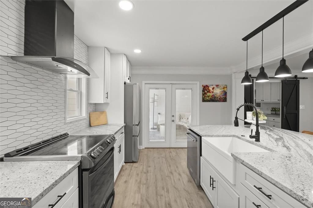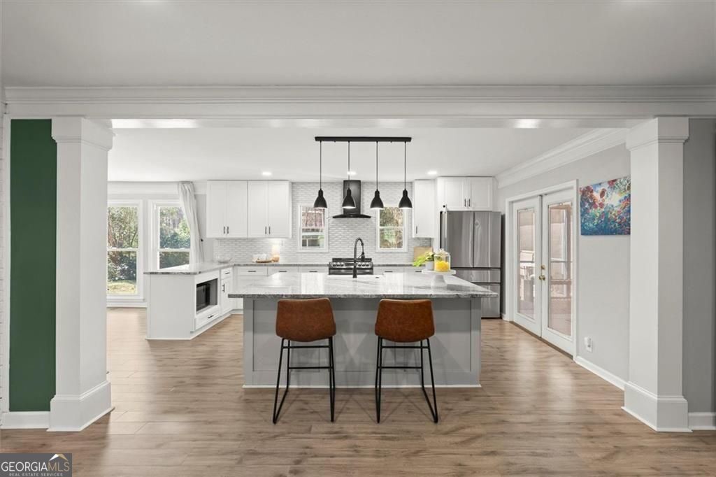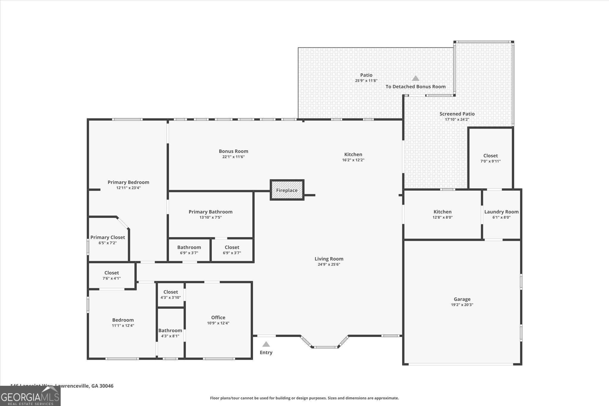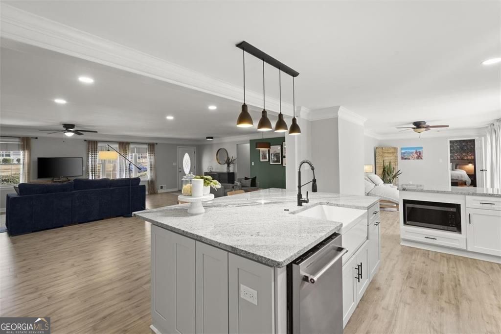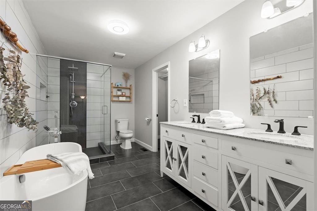 IDEAL LOCATION, INCREDIBLE UPDATES- NEW INCREDIBLE PRICE REDUCTION Located less than 5 minutes from Discovery Park, Georgia Gwinnett College and Northside Hospital Gwinnett, and just one mile from Downtown Lawrenceville's Aurora Theatre, shopping, dining, and entertainment, this home delivers unmatched convenience and lifestyle. Bright and gorgeously updated brick ranch with a hard-to-find open floor plan, this 3-bedroom, 2.5-bath home in Lawrenceville offers the perfect combination of space, style, and flexibility-with NO HOA and NO rental restrictions, making it ideal for both homeowners and investors. Step inside to discover luxury LVP flooring, smooth ceilings, and a large open-concept living area filled with natural light. The common area offers a huge, open living area that allows for multiple seating and or dining areas. As well, a large sun-filled bonus room with floor to ceiling windows that looks over the lush backyard can be an office, dining, den or just additional space for entertaining; perfect for modern living and entertaining. The chef's kitchen is a true centerpiece, featuring an oversized 87" x 62" island, granite countertops, farmhouse sink, stainless steel appliances, and a rare additional scullery/catering kitchen with a huge walk-in pantry for maximum storage and functionality. The oversized primary suite serves as a private retreat with two walk-in closets and a fully renovated, spa-inspired bathroom complete with dual vanities, a soaking tub, and a separate shower. Two additional spacious bedrooms share a beautifully updated full bath, while a brand-new half bath adds convenience for guests. Enjoy outdoor living year-round with a screened-in porch with ceiling fan and an expansive deck overlooking a private, wooded backyard. A cooled outbuilding provides flexible space for a potential 4th bedroom, home office, gym, yoga studio, or creative retreat. The backyard directly connects to scenic walking and hiking trails, backing up to Bartow Jenkins Park. This is one you need to see inside to appreciate. Seller is offering a Home Warranty