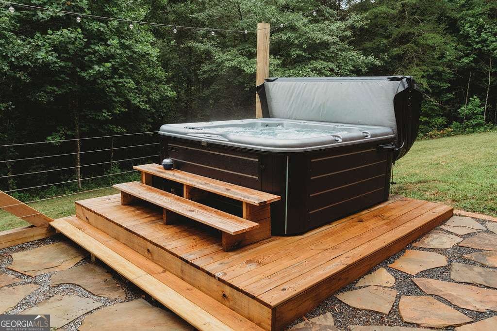 Remodeled, clean, and furnished turn-key cabin for personal use or as an investment for a short-term rental. No restrictions or HOA fees. Enjoy a quiet walking trail along the small branch on the large 6.62 acre tract. Nice southern exposure community and private setting for a quiet get away in the mountains. Close to Murphy, NC, Blue Ridge, GA, and Copperhill, TN. Remodeled kitchen with stainless appliances, a gas log fireplace, flagstone area with firepit and a jetted outdoor hot tub. Large outdoor covered deck for entertaining and grilling, too. Plenty of parking space.