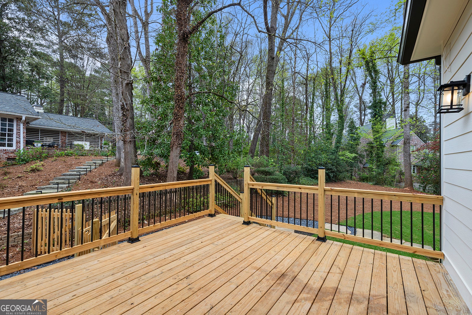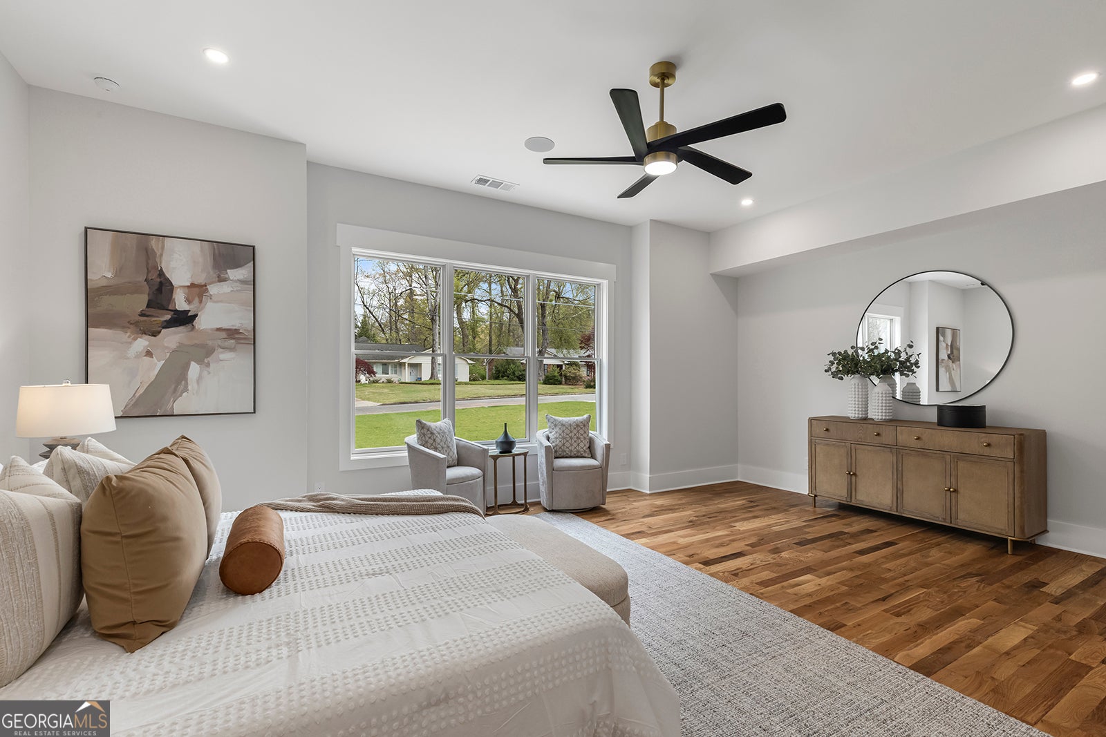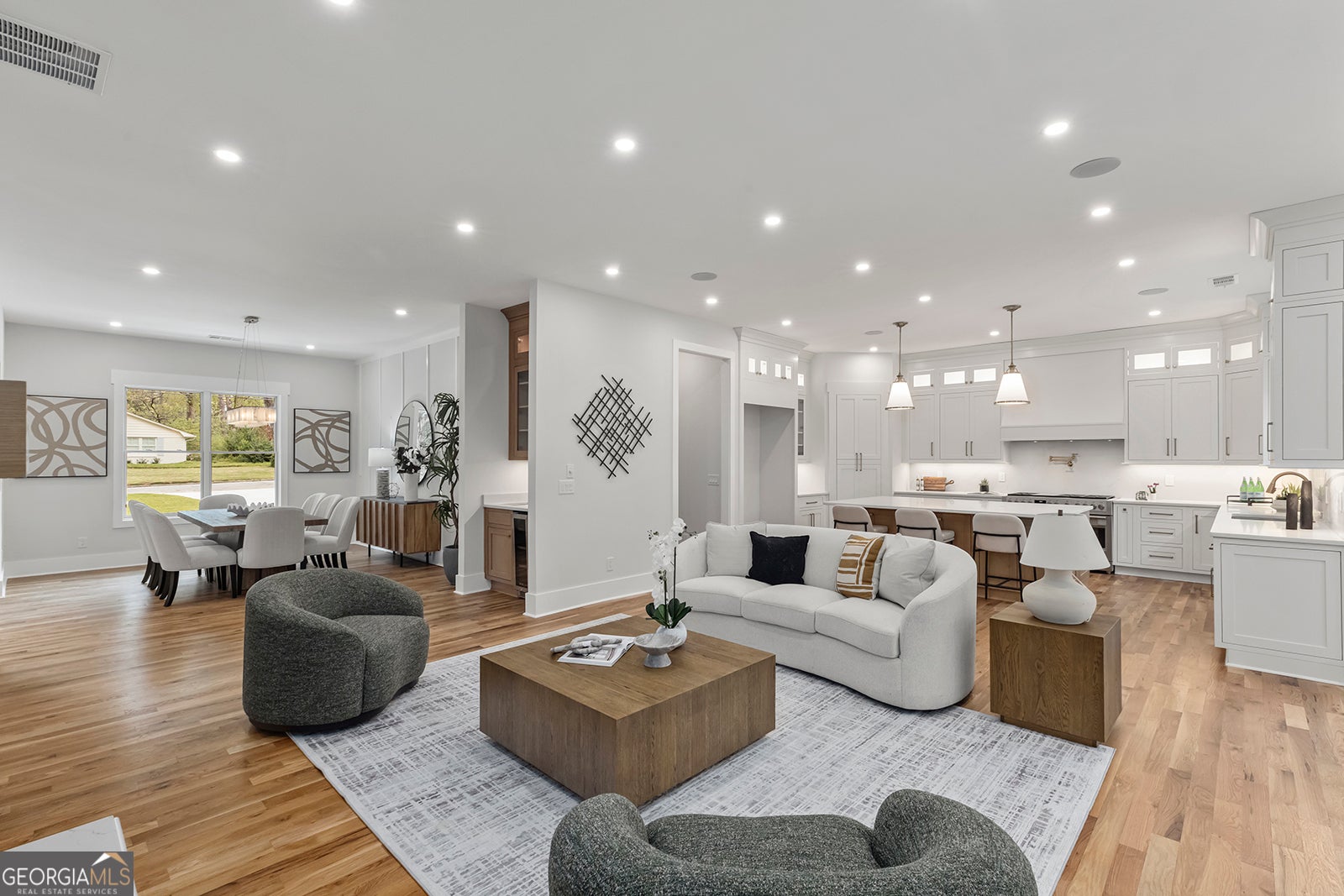 Open and filled with natural light, this brand new North Buckhead home sits on over half an acre and offers a flat, private backyard perfect for outdoor living and entertaining. Thoughtfully designed for both comfort and style, the home features a spacious primary suite and guest suite on the main level, along with a private office, formal dining room, and hardwood floors throughout. The bright white kitchen is appointed with quartz countertops, stainless steel appliances, and a sunny breakfast area, all opening seamlessly to the fireside family room. French doors lead to a deck and screened porch, creating effortless indoor and outdoor flow. A conveniently located laundry room completes the main level. Upstairs, you will find three generously sized bedroom suites, each offering privacy and comfort. The finished daylight basement adds exceptional versatility with an additional bedroom suite, a second laundry area, generous storage, and flexible space for everyday living.