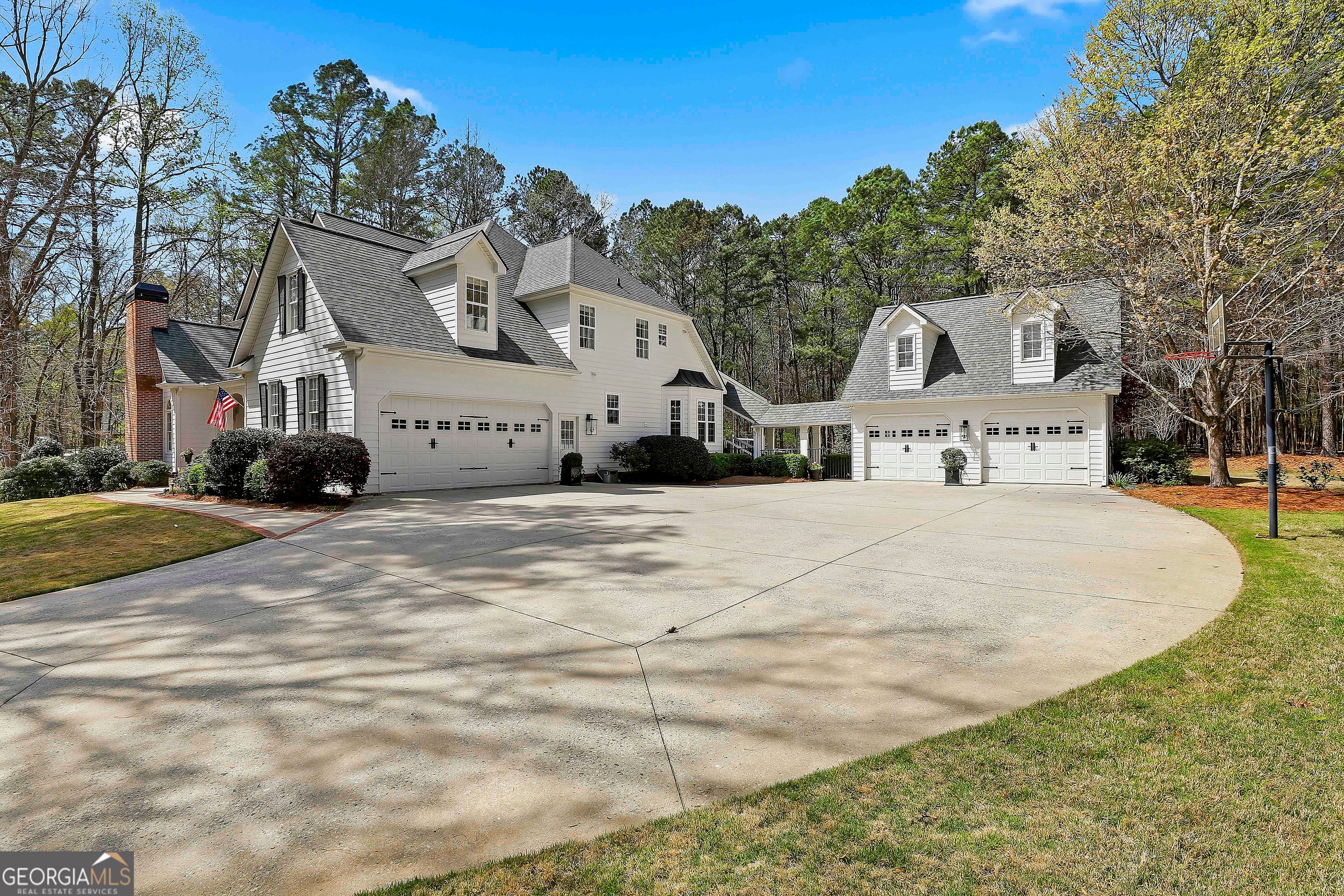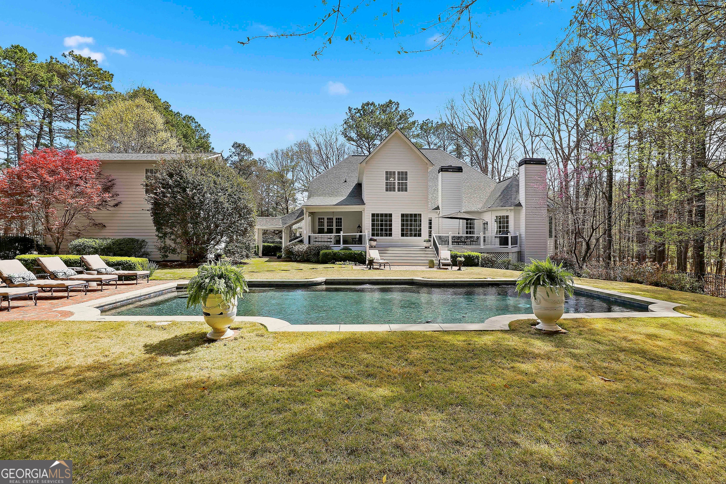 Welcome to an extraordinary luxury retreat in the heart of Peachtree City, perfectly situated on 3 private acres with no HOA-offering both exclusivity and freedom. This stunning property boasts over 6,000 square feet of beautifully maintained living space, featuring 7 spacious bedrooms and 5.5 bathrooms designed for comfort and elegance. The thoughtfully designed layout includes a detached carriage house with a 2-car garage and private guest suite above, seamlessly connected to the main home by a charming covered breezeway-ideal for guests or multi-generational living. Step outside to your own private oasis, complete with a heated saltwater PebbleTec pool with grass edge detailing, surrounded by serene, wooded privacy. Enjoy year-round outdoor living with a covered porch perfect for morning coffee, large open deck perfect for barbecues, an inviting outdoor fireplace for crisp fall evenings. Inside, the home showcases updated kitchen and bathrooms, combining modern finishes with timeless style. Entertain with ease in multiple living areas, enhanced by three gas fireplaces throughout the home. A gorgeous sunroom just off the kitchen is another excellent space to look out and enjoy the backyard retreat! The partially finished basement offers incredible versatility, featuring a media room, game room, home gym, additional guest suite, and an abundance of storage or flex space. Practical upgrades include a roof and all three HVAC systems that are 6 years old or newer, providing peace of mind for years to come. Two laundry rooms add convenience to this expansive home. This rare property delivers luxury, space, and privacy in one of South Atlanta's most desirable communities-an exceptional opportunity to own a truly remarkable home. Sellers preferred lender is offering a lender credit of $3,000.00 or 1% of the loan amount (whichever is less). Lender Contact: Kyle Cameron, Fairway Home Mortgage NMLS: 1610121 Phone: 678 850 0331 / Email: kyle.cameron@fairwaymc.com Website to APPLY: www.kylehomeloansfairway.com Equal Housing Opportunity