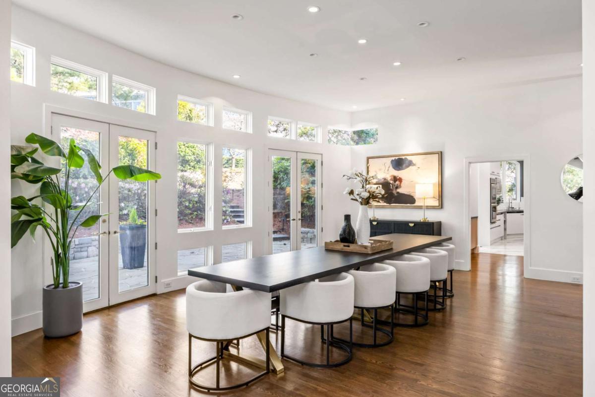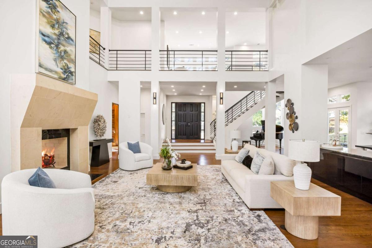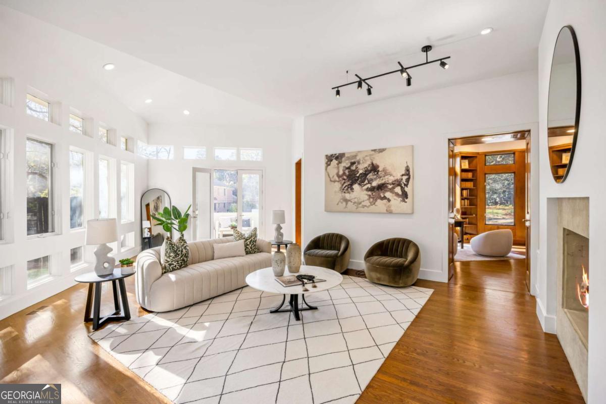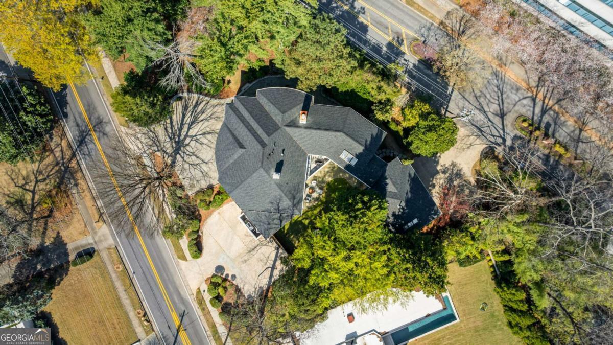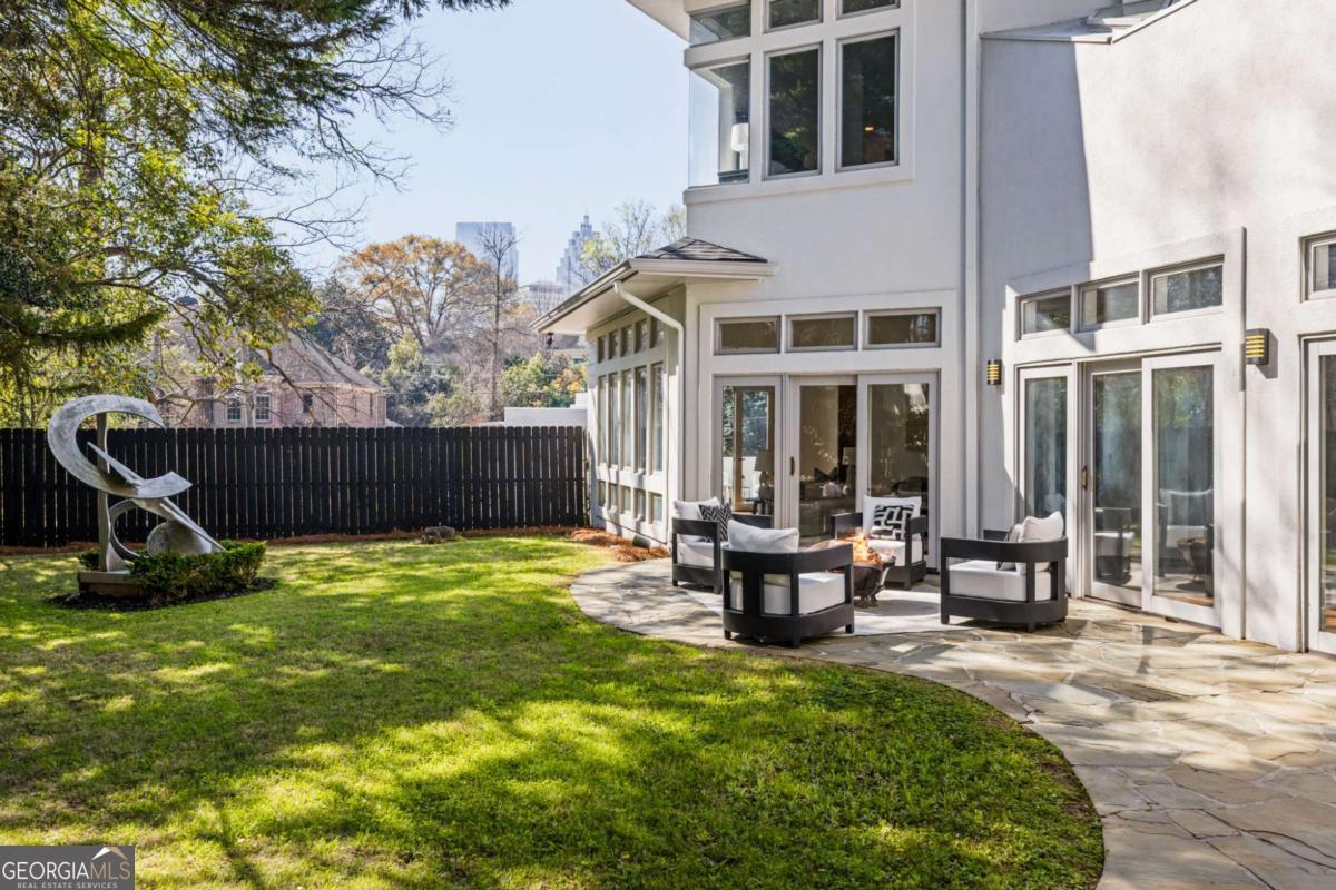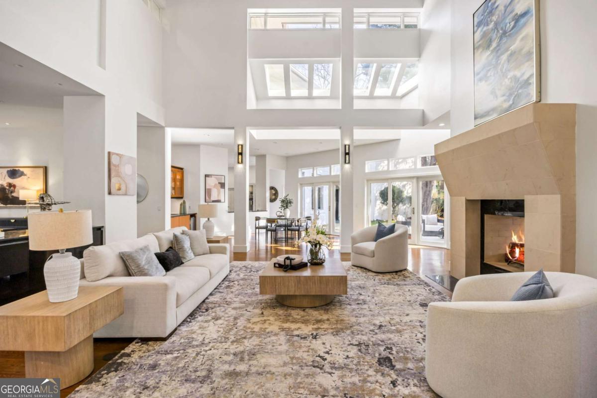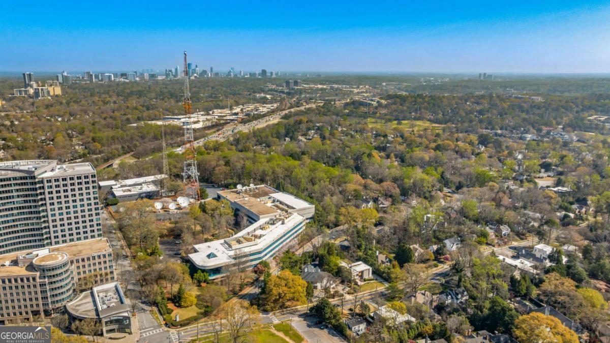 Incredible opportunity to own a spacious and unique residence in Ansley Park, one of Atlanta's most established and desirable neighborhoods. Situated on a rare over half-acre corner lot, this property offers approximately 8,000 square feet of living space with convenient access to Midtown, Buckhead, and major highways. The main level features a two-story living room with floor-to-ceiling windows providing abundant natural light. The open floor plan flows into a renovated kitchen with a large granite island, custom cabinetry, stainless steel appliances, and a separate breakfast/bar area. A double-sided fireplace connects the main living and dining areas. Also on the main level is a library/office with built-ins, closet, and access to a full bathroom, offering flexibility for use as an additional bedroom. Upstairs, the owner's suite includes a sitting area, vaulted ceiling, fireplace, private balcony with morning bar, and an en-suite bathroom with dual vanities, walk-in shower, and whirlpool tub. Two additional ensuite bedrooms and a loft area complete the upper level. The property includes two separate guest suites, each with private entrances: a carriage house above the garage with full kitchen, living area, bedroom, and bathroom, and a terrace-level suite with full kitchen, living area, bedroom, and bathroom. The backyard is flat and private, offering space for outdoor living and potential future improvements such as a pool or outdoor kitchen. Conveniently located near parks, shopping, dining, and Atlanta's cultural amenities.