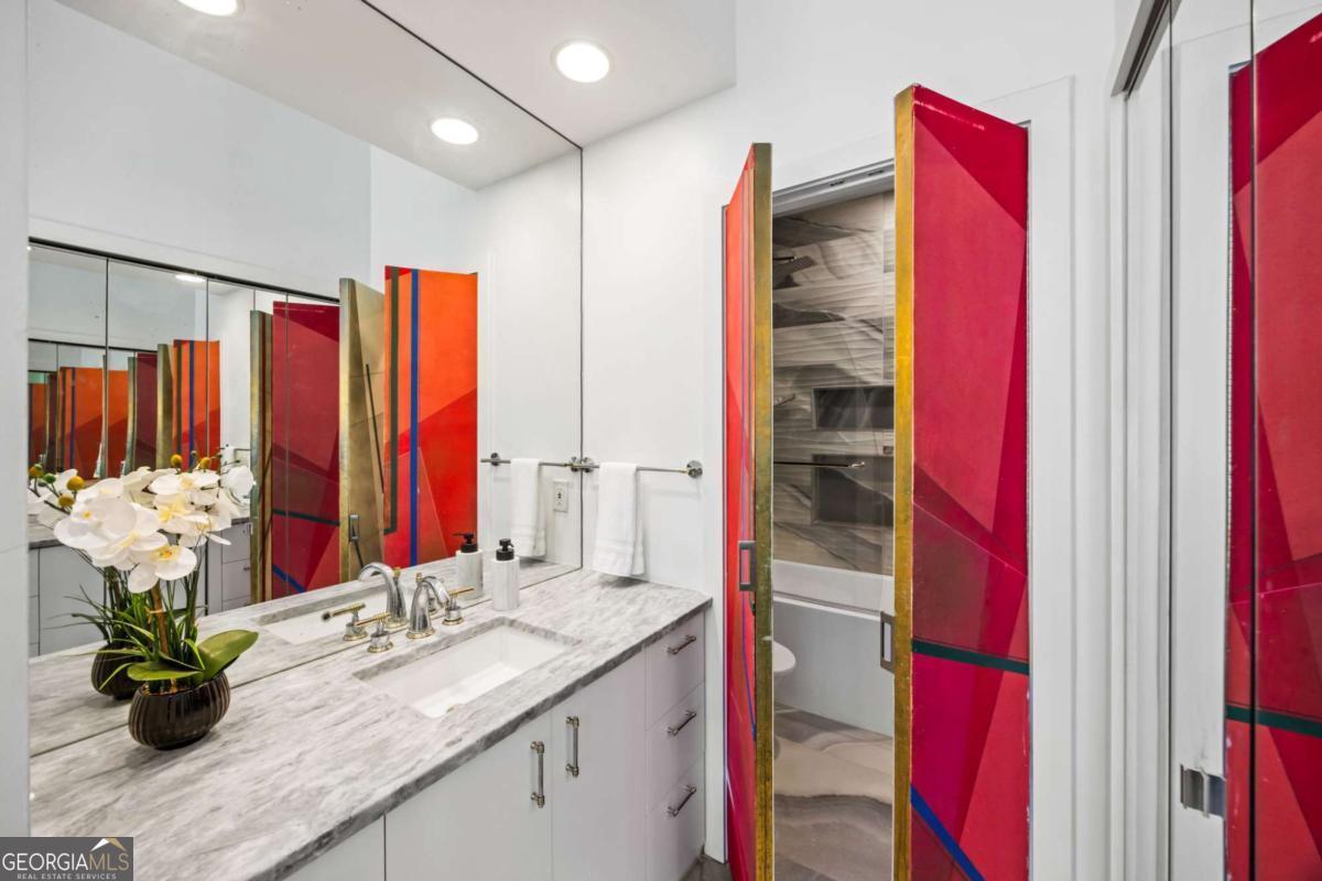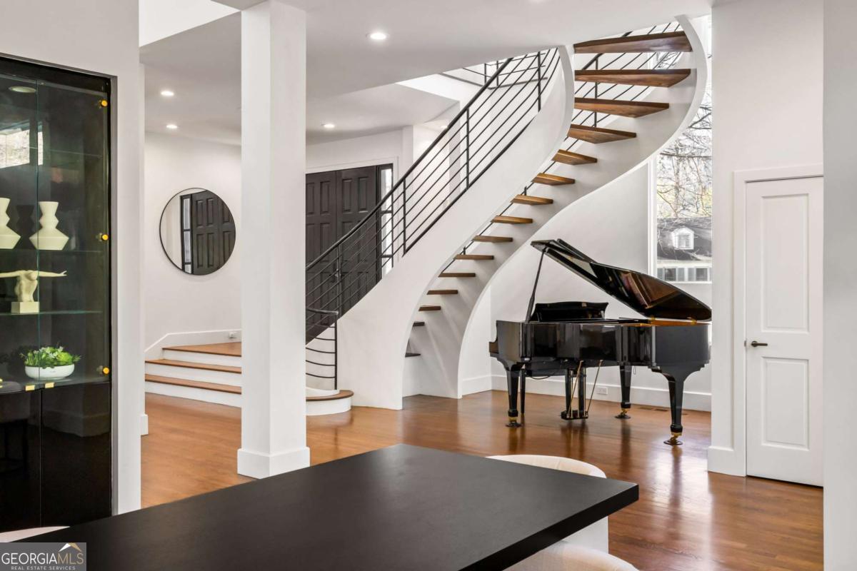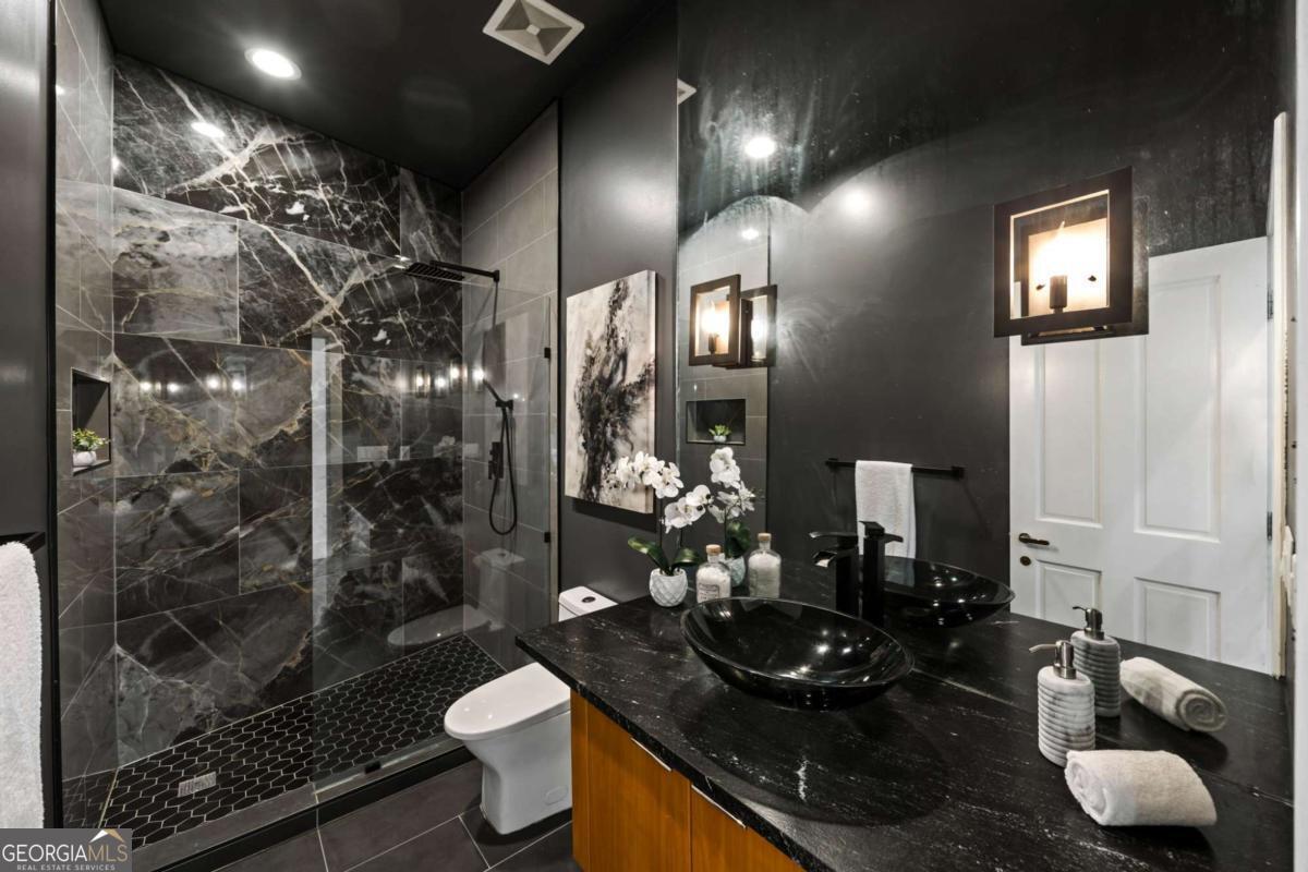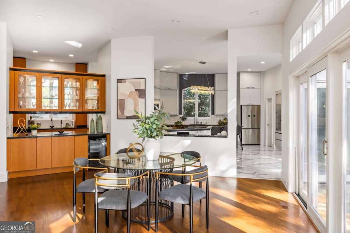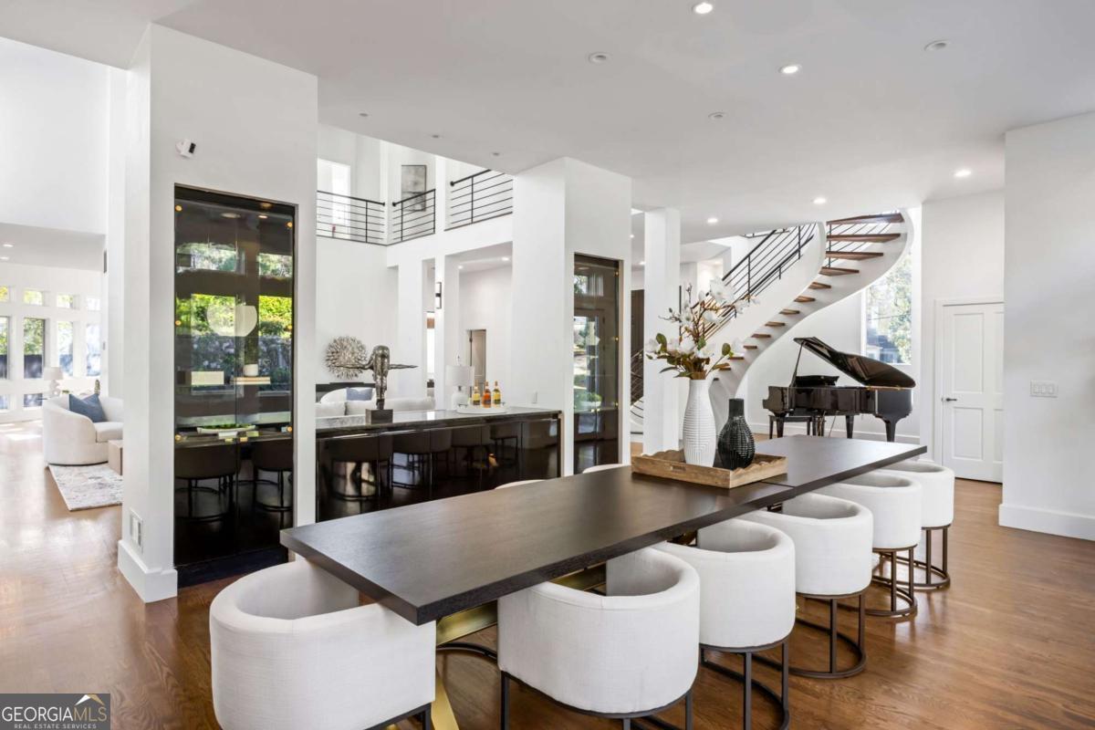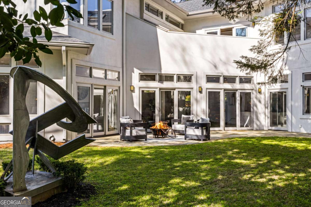 Incredible opportunity to own a spacious and unique residence in Ansley Park, one of Atlanta's most established and desirable neighborhoods. Situated on a rare over half-acre corner lot, this property offers approximately 8,000 square feet of living space with convenient access to Midtown, Buckhead, and major highways. The main level features a two-story living room with floor-to-ceiling windows providing abundant natural light. The open floor plan flows into a renovated kitchen with a large granite island, custom cabinetry, stainless steel appliances, and a separate breakfast/bar area. A double-sided fireplace connects the main living and dining areas. Also on the main level is a library/office with built-ins, closet, and access to a full bathroom, offering flexibility for use as an additional bedroom. Upstairs, the owner's suite includes a sitting area, vaulted ceiling, fireplace, private balcony with morning bar, and an en-suite bathroom with dual vanities, walk-in shower, and whirlpool tub. Two additional ensuite bedrooms and a loft area complete the upper level. The property includes two separate guest suites, each with private entrances: a carriage house above the garage with full kitchen, living area, bedroom, and bathroom, and a terrace-level suite with full kitchen, living area, bedroom, and bathroom. The backyard is flat and private, offering space for outdoor living and potential future improvements such as a pool or outdoor kitchen. Conveniently located near parks, shopping, dining, and Atlanta's cultural amenities.