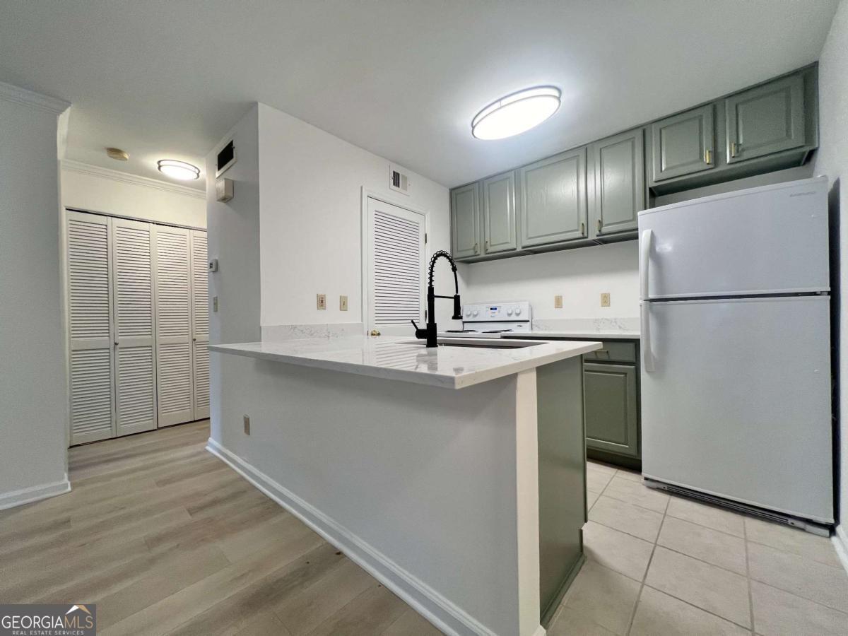 This beautifully updated one-bedroom condo in the heart of Sandy Springs is move-in ready and packed with modern finishes - including luxury vinyl plank flooring, quartz kitchen countertops, tumbled granite bathroom counters with a large vanity, and LED lighting throughout. The open living area features a gas log fireplace and opens to a private walk-out patio, also accessible from the spacious bedroom with its generous walk-in closet. Enjoy community amenities including a pool and fitness center, plus the ease of a covered, gated assigned parking space, low HOA dues, and a rental-friendly policy - perfect for investors and homeowners alike. Unbeatable access to Sandy Springs, Perimeter, Dunwoody, GA 400, and I-285 puts the best of metro Atlanta right at your doorstep.
