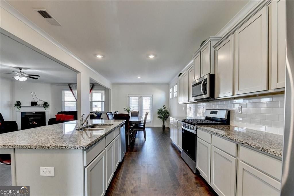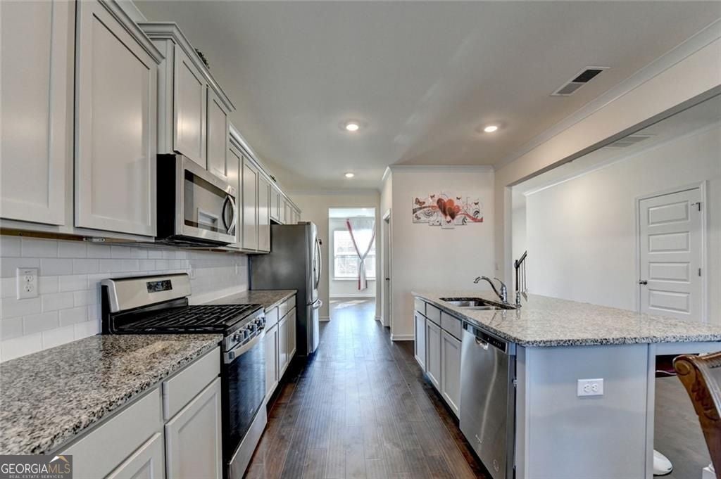 Welcome home to this stunning 2022-built residence in the heart of Loganville, where modern comfort meets an active, lifestyle-driven community. This beautifully maintained 5-bedroom, 3 full-bath home offers a bright and open floor plan designed for both everyday living and entertaining. The spacious kitchen features stainless steel appliances, ample cabinetry, and an oversized countertop that flows seamlessly into the inviting family room with a cozy fireplace-creating the perfect gathering space. Upstairs, you'll find a large and versatile loft, ideal for a media room, home office, or play area, along with generously sized secondary bedrooms. The oversized primary suite provides a relaxing retreat with plenty of space to unwind. Step outside to enjoy the flat, fully fenced backyard, offering endless possibilities-perfect for entertaining, gardening, creating a play space, or even building your future private pool. Residents of this sought-after community enjoy resort-style amenities, including two swimming pools, four tennis courts, multiple playgrounds, outdoor fire pits, grilling stations, and scenic walking trails throughout the neighborhood. Ideally located with direct access to Bay Creek Park, homeowners can enjoy miles of walking and biking trails, open green space, playgrounds, sports fields, and picnic areas, making it easy to embrace an active outdoor lifestyle. Located within the highly rated Gwinnett County School District, this home offers access to strong educational opportunities, making it an excellent choice for a variety of buyers. Conveniently located near shopping, dining, and everyday essentials, this home offers the perfect combination of space, location, and community amenities. Don't miss this incredible opportunity-schedule your private showing today!