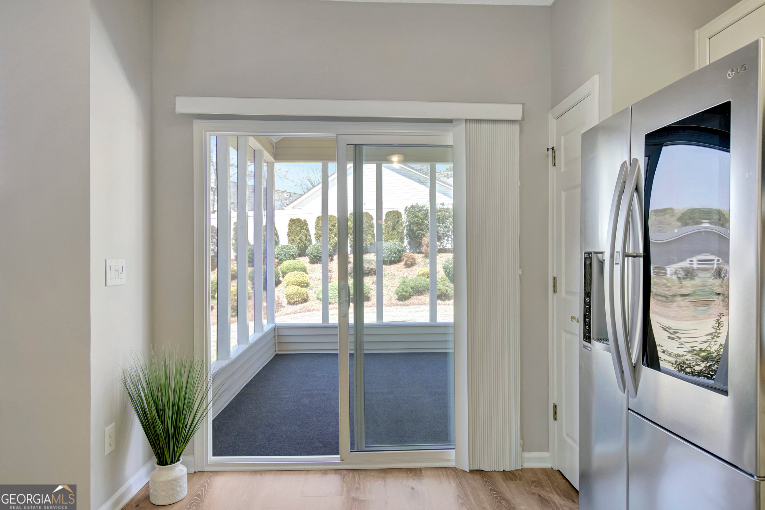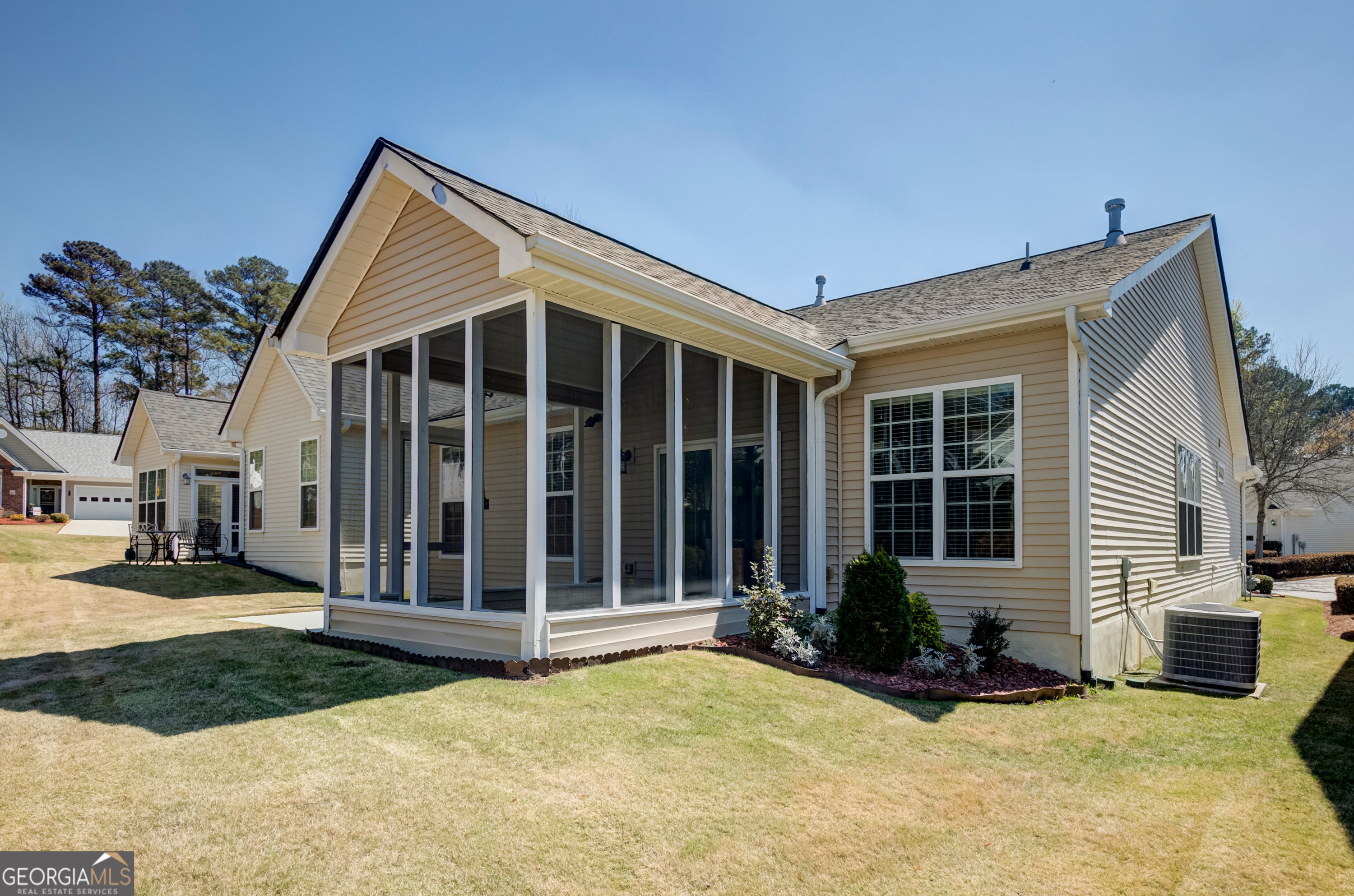 Beautifully updated and thoughtfully designed for easy, single level living, this charming residence in the desirable Lora's Place community offers comfort, convenience, and low-maintenance living in a peaceful Newnan setting. This well-maintained home features 2 bedrooms, 2 bathrooms, and tasteful updates throughout. The main living area offers an open-concept design connecting the family room, kitchen, and dining area, creating a bright and welcoming space ideal for everyday living and entertaining. Recent improvements include new Lifeproof luxury vinyl plank flooring, fresh interior paint, and new LG appliances, providing both modern style and durability. The spacious primary suite offers a relaxing retreat with a walk-in closet and a well-appointed en-suite bath featuring a separate walk-in shower and solid surface vanity countertops. A second bedroom located at the front of the home provides flexibility for guests, a home office, or additional living space and is conveniently positioned near a full bathroom. Enjoy outdoor living on the screened-in porch overlooking beautifully landscaped grounds with established plants, vibrant flowers, and ornamental shrub creating a serene outdoor setting. Major system updates include a roof replaced in May 2021, HVAC installed in 2017, and a newer hot water heater, providing added peace of mind. Loras Place is a primarily 55+ community known for its charming one-story homes and neighborly atmosphere. The HOA provides comprehensive yard maintenance, including mowing, mulching, and weeding for both front and back yards, along with scheduled exterior pressure washing every other year, allowing homeowners to enjoy a low maintenance lifestyle. Located just off Lora Smith Road, the community offers convenient access to Thomas Crossroads shopping, grocery stores, restaurants, and everyday services, as well as quick connectivity to I-85 and additional retail and dining options.