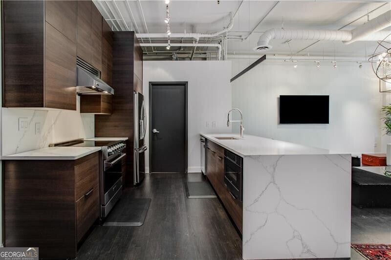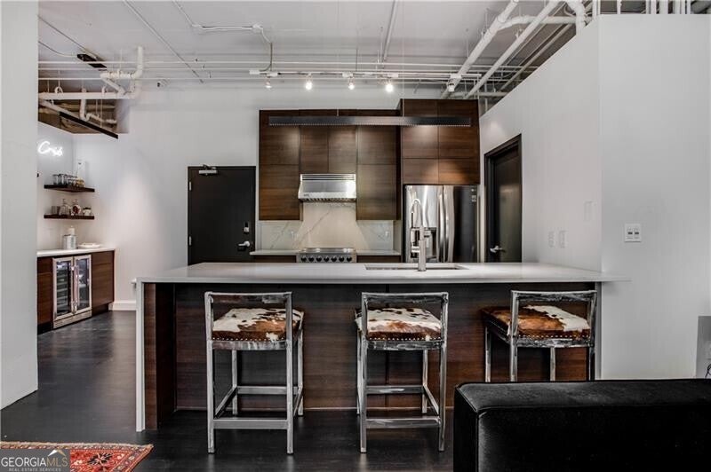 Set in the heart of Buckhead, this sleek, renovated two-bedroom, two-bath loft epitomizes luxury living with prime walkability. Featuring marble counters paired with marble backsplash, Viking appliance-package, and generous bar area with wine fridge, you will be set for entertaining in this well thought out space. Large living room with an abundance of natural light, tree-lined view from every room, large walk-in pantry/laundry room, and two bedrooms with large closets & completely renovated bathrooms. Buckhead Village Lofts is an amenity-rich building offering a fitness center, pool, dog park, concierge, rooftop terrace, two parking spaces, and more! Trash service, water, & sewer are included with HOA fee.
