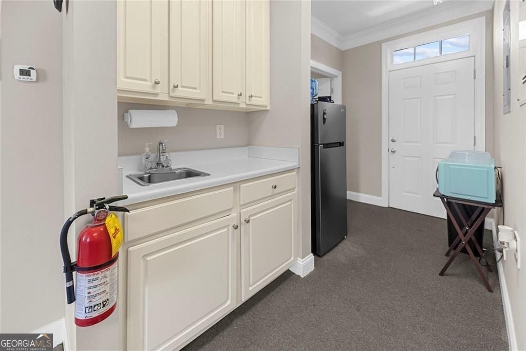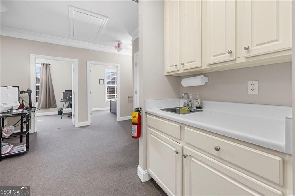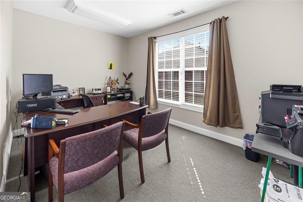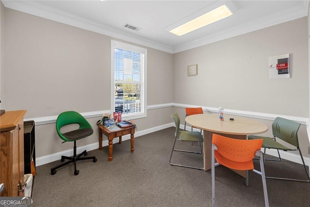 Professional office suite in well-maintained office building in Kennesaw! Functional layout includes main reception/open workspace, private individual spaces/meeting rooms, private restroom, and kitchenette. Small private porch area offers added flexibility. Presenting a great opportunity for an investor, or an owner-occupant looking to secure their own office space. Suitable for a variety of professional uses, this space offers a practical and efficient setup for day-to-day business operations.