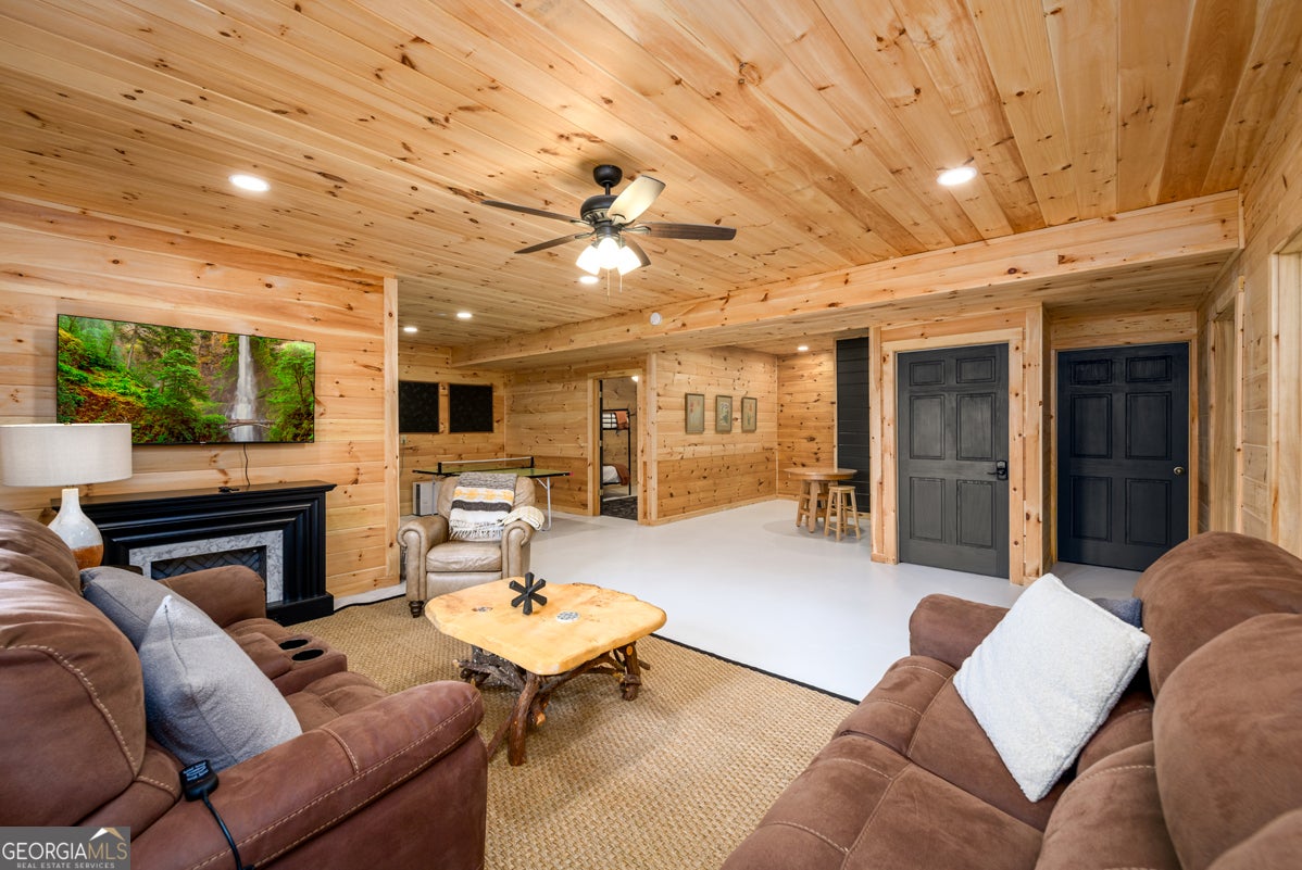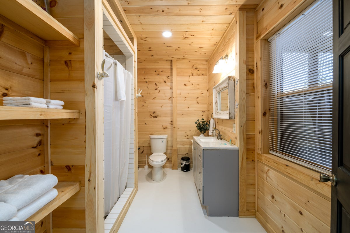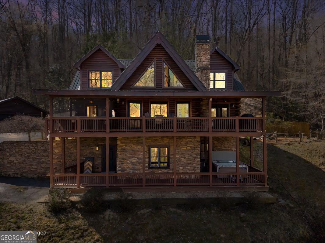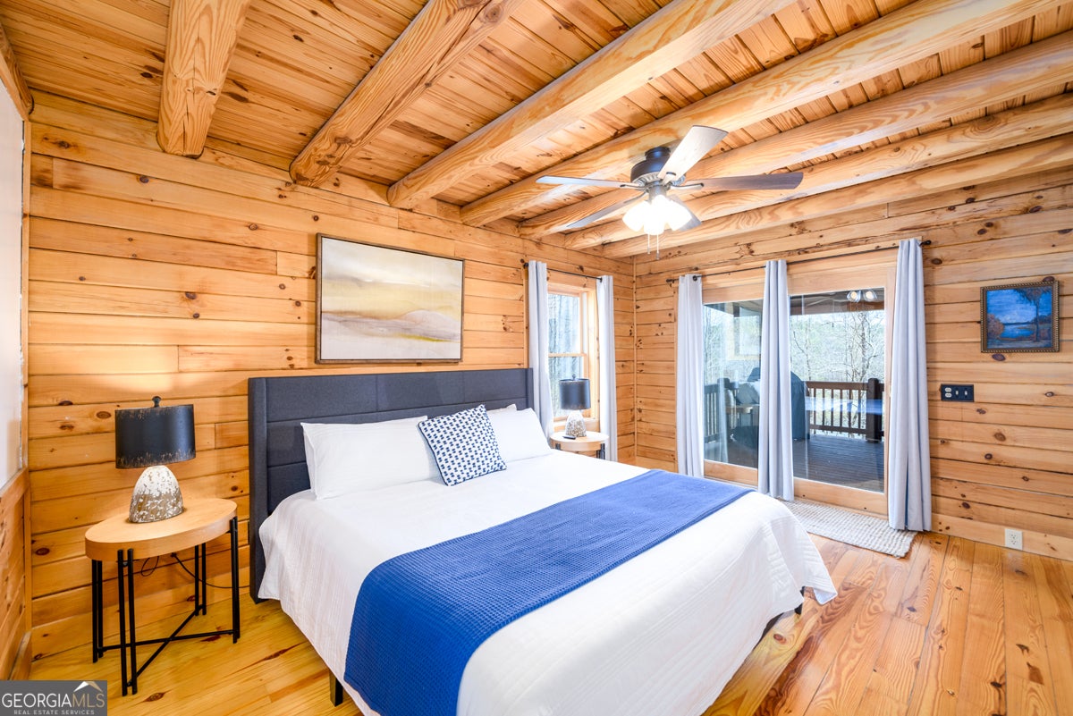 Nestled in the Blue Ridge Mountains and less than 10 minutes from downtown Blue Ridge, this beautiful cabin offers the perfect getaway for those looking to slow down and enjoy the mountains-without a long drive from metro Atlanta. This 3-bedroom, 3.5-bath home also features a spacious bonus bunk room in the basement, making it ideal for hosting family and friends. The main living area is filled with natural light, with large windows that showcase peaceful views of the shared lake and surrounding trees. The open kitchen and family room create a warm, inviting space to gather, whether you're enjoying a quiet weekend or making lasting memories together. The terrace level has been thoughtfully updated with new flooring and a recently renovated full bathroom, now featuring a glass shower door added after photos were taken-adding both comfort and style to the space. One of the standout features of this property is the detached two-car garage, a rare find in the Blue Ridge area, offering ample space for parking, storage, or all your mountain gear. Step outside and take in the peaceful setting-this home truly feels like a quiet escape, tucked into the mountains with a serene lake view shared with neighboring properties. Whether it's morning coffee overlooking the water or evenings unwinding after a day in town, this is a place to recharge. Currently used as a rental property, this home also offers flexibility-when your family isn't enjoying it, it provides a great opportunity to share it with others.