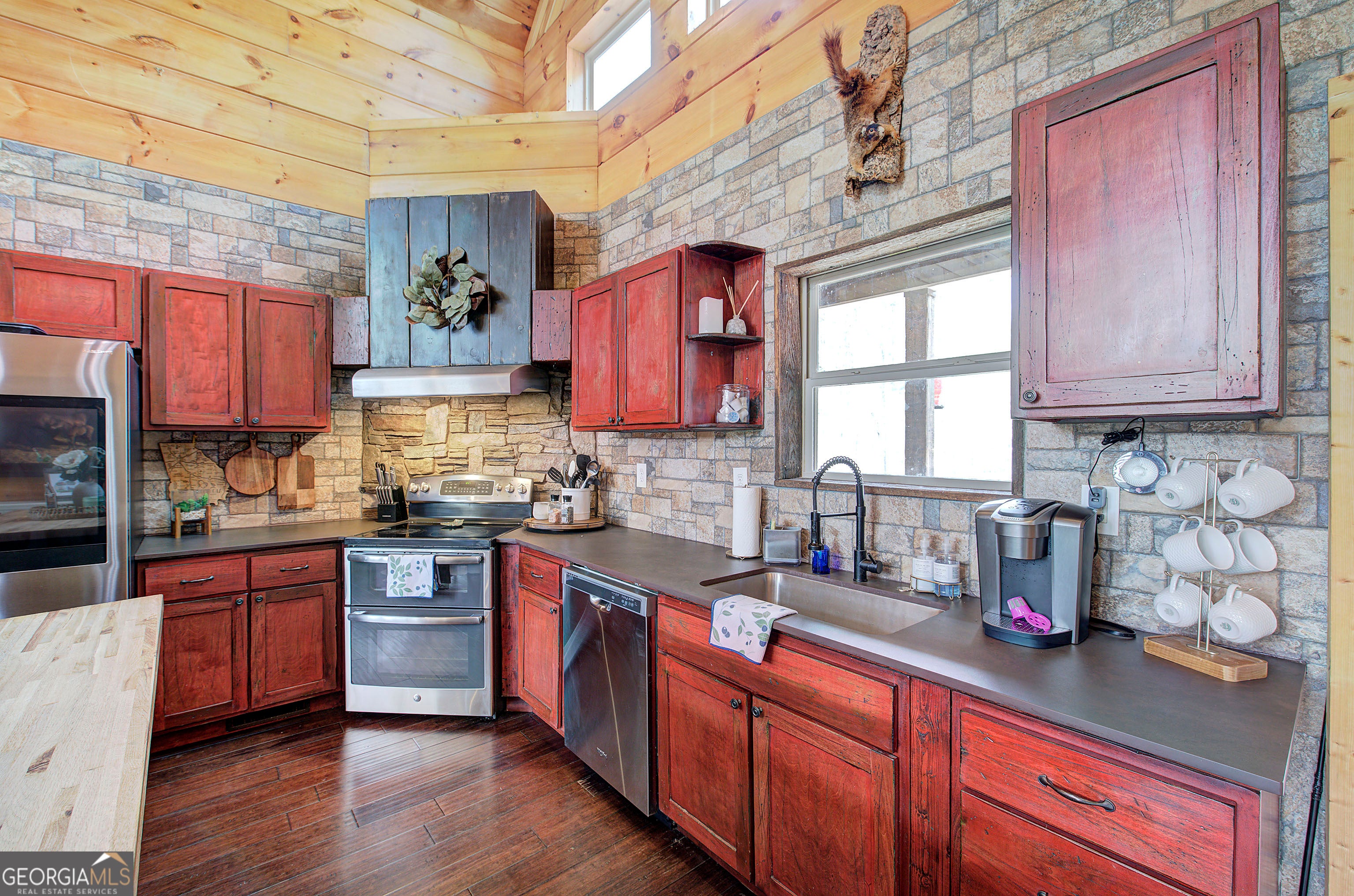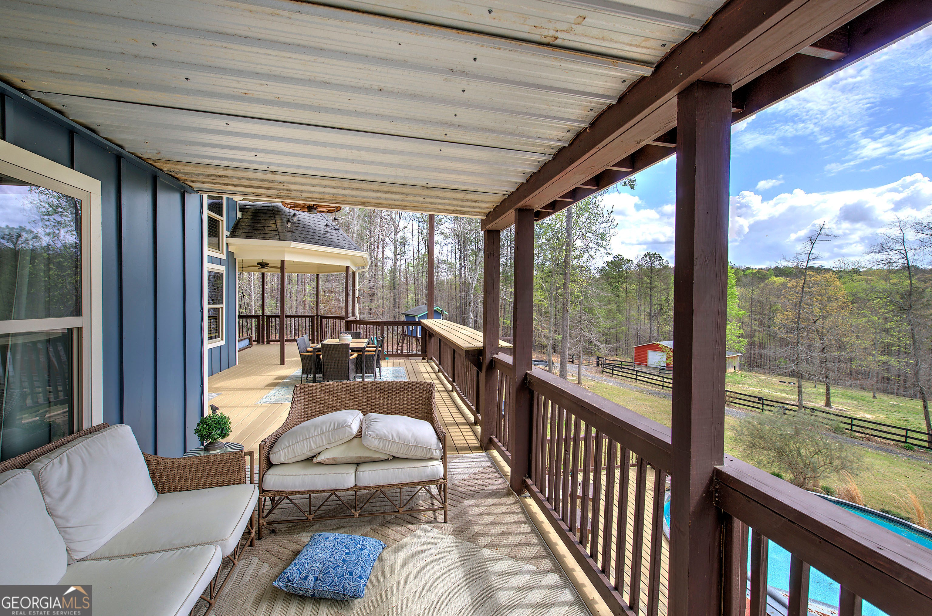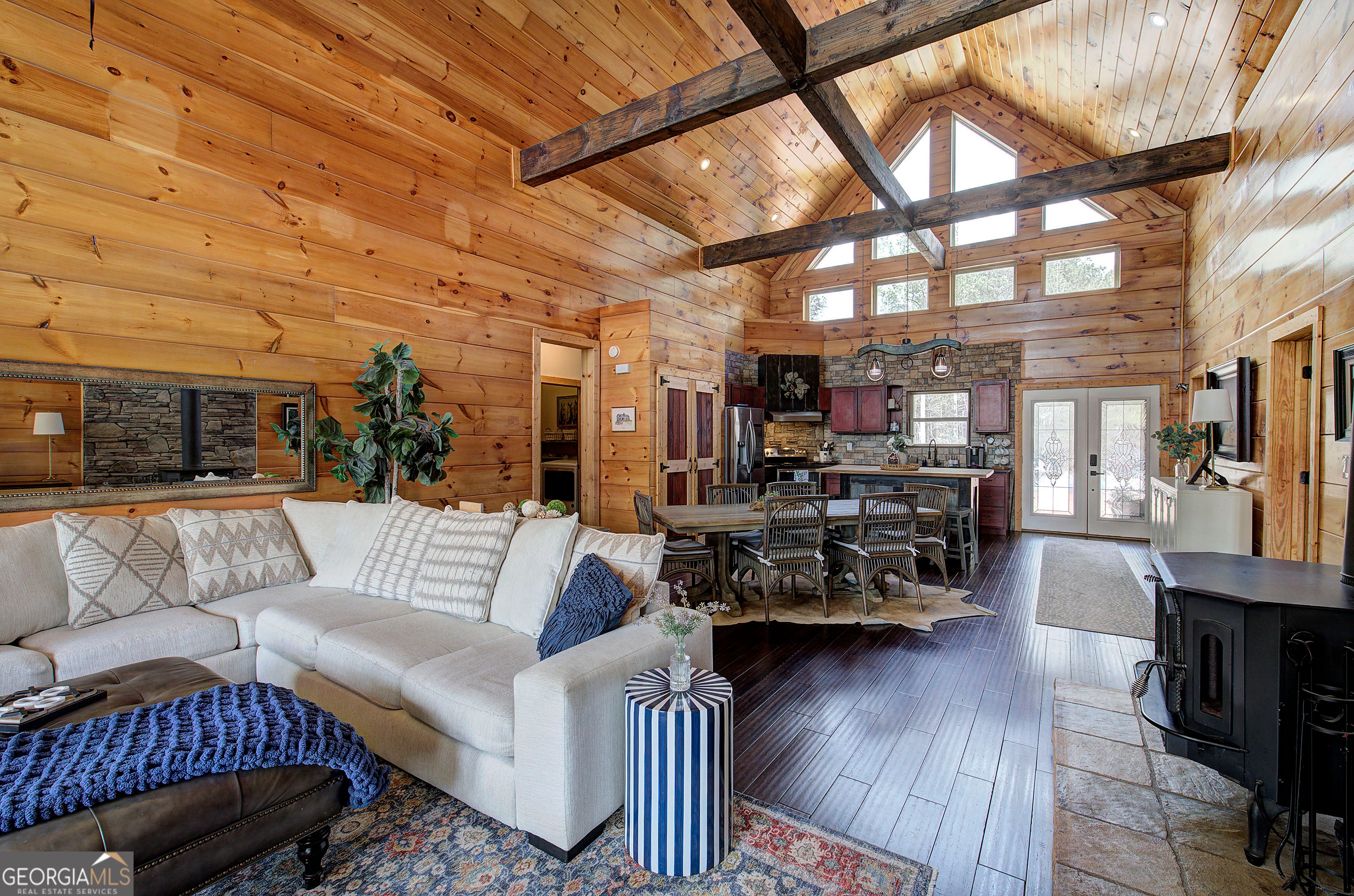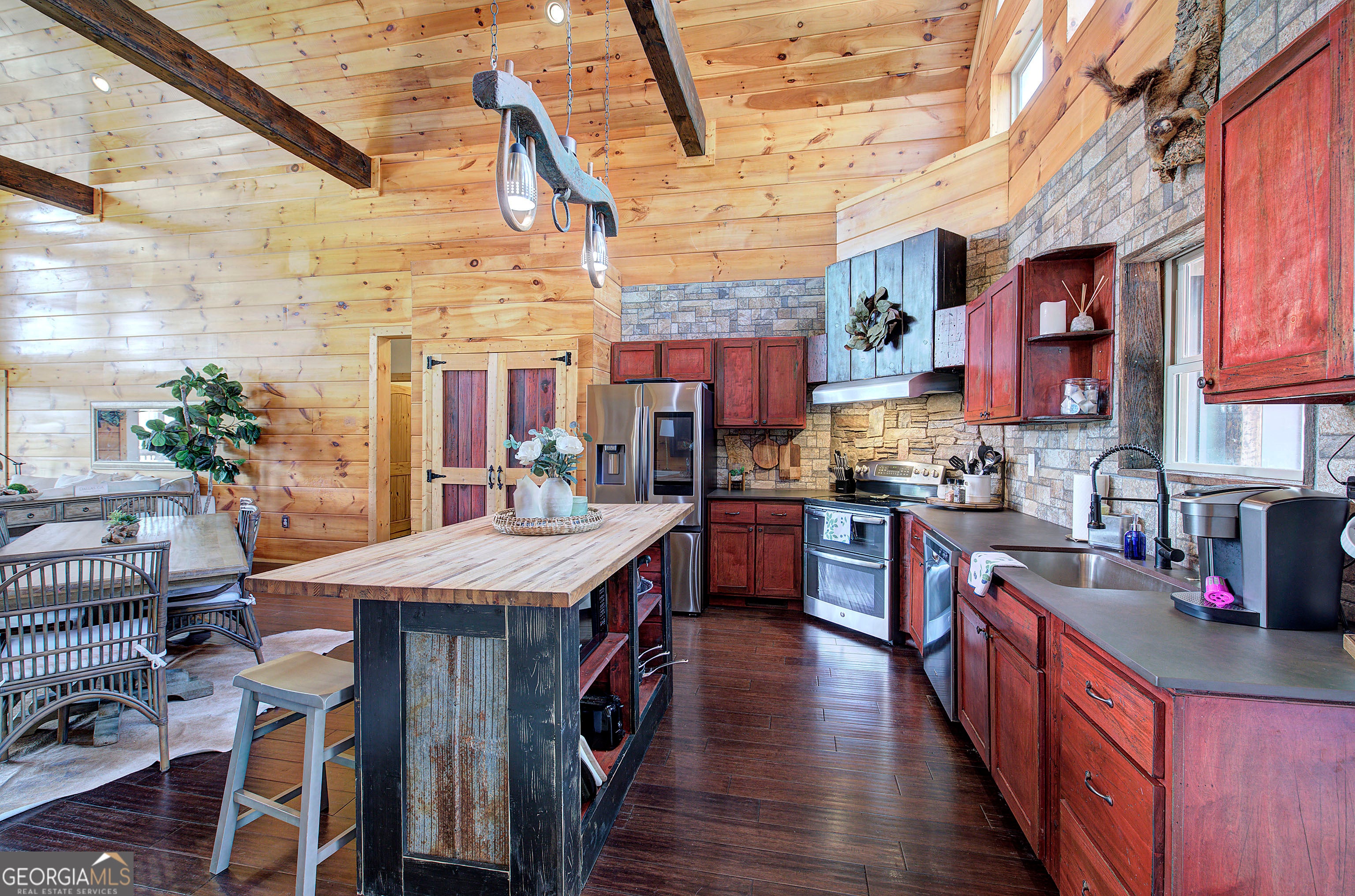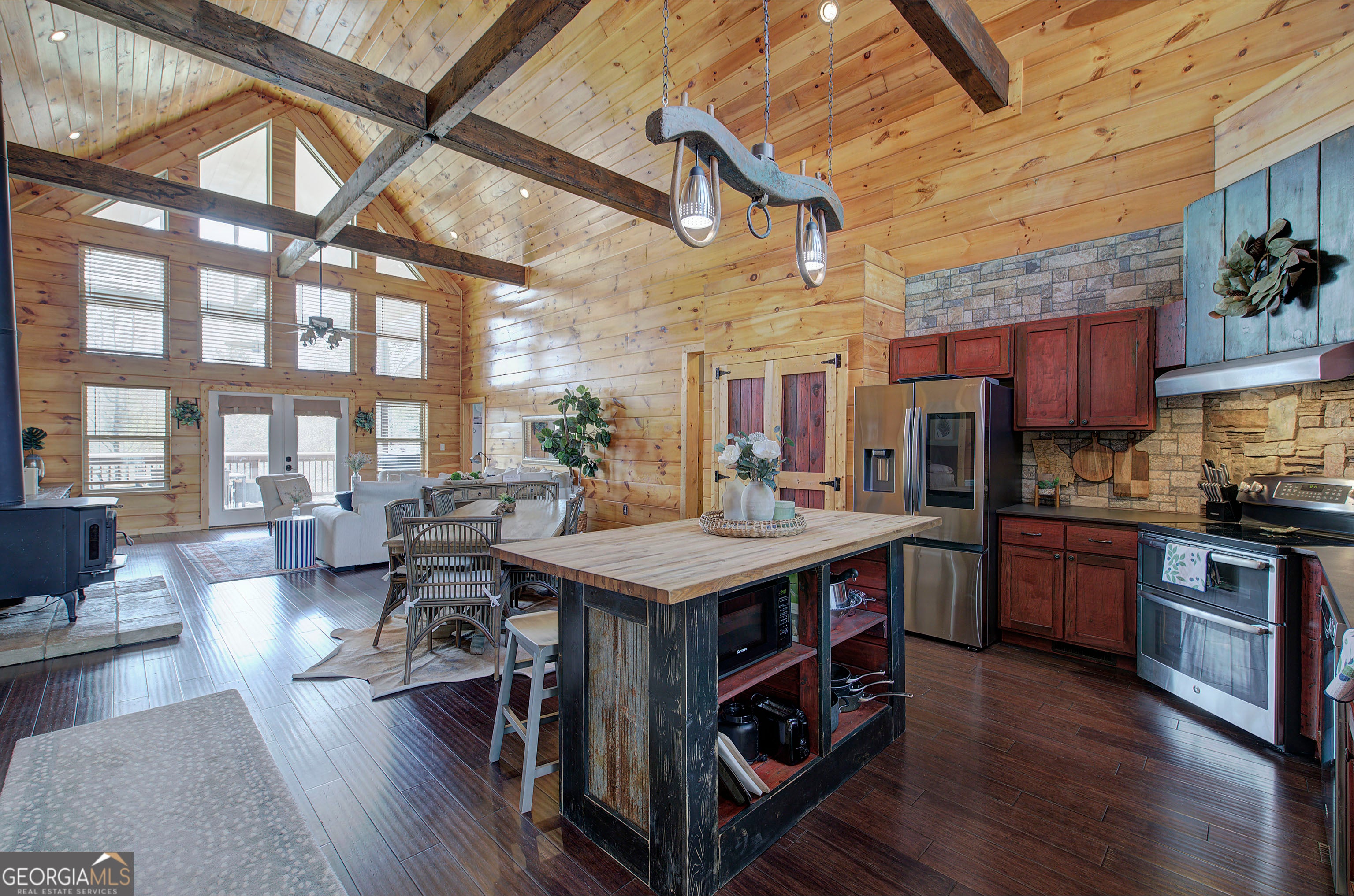 Welcome to your dream country escape in North Paulding! Set on 10.97 private acres, this enchanting rustic farmhouse offers 4,127 square feet of beautifully designed living space, blending modern comfort with timeless charm in the highly sought-after North Paulding School District. You'll be captivated by the peaceful setting, complete with a scenic pond, barn, and versatile workshop-perfect for hobbyists, storage, or even small livestock. The expansive property provides the ideal balance of privacy and usability, all while remaining conveniently close to great schools, shopping, dining, and everyday essentials. Inside, the main level impresses with soaring 20-foot ceilings and a wide-open, light-filled layout designed for both everyday living and effortless entertaining. Warm, rustic finishes and classic farmhouse details create an inviting atmosphere throughout. A cozy woodburning stove adds warmth and charm. The split-bedroom floor plan offers privacy, while the stunning owner's suite features cathedral wood ceilings and direct access to the covered deck-your own private retreat overlooking the serene landscape. The fully finished basement expands your living space with an incredible entertaining area, complete with a wet bar, dedicated movie room, oversized bedroom, full bath, and abundant storage-ideal for guests or multi-generational living. Outdoor living is just as impressive, with a covered two-level deck perfect for relaxing, entertaining, or simply enjoying the natural beauty surrounding you. The property has a pool, outdoor dining areas, a fire pit and custom playhouse. Adding to its appeal, this property offers exceptional income-producing potential as a short-term rental, with its private setting close to Lakepoint Sports Complex, unique features, and ample space making it highly desirable for guests seeking a peaceful getaway. Whether you're searching for a private retreat, an investment opportunity, or a place to create lasting memories, this one-of-a-kind property delivers the very best of country living with modern convenience.