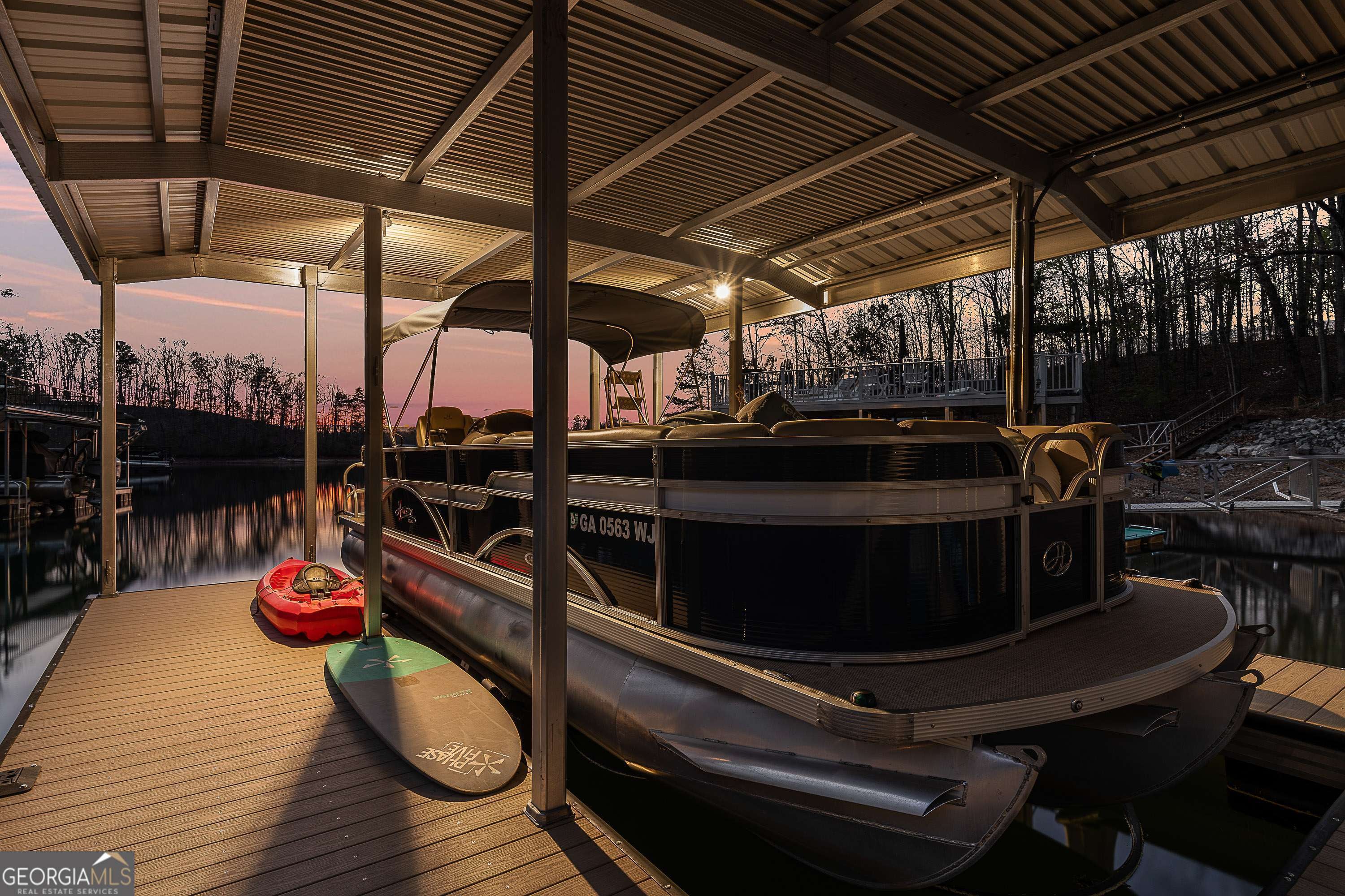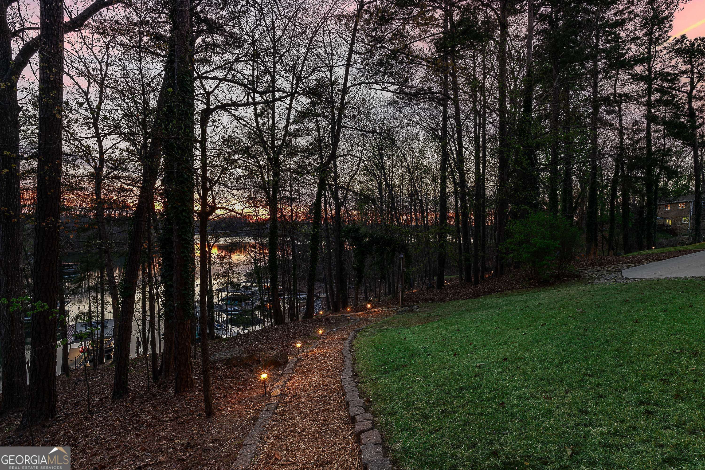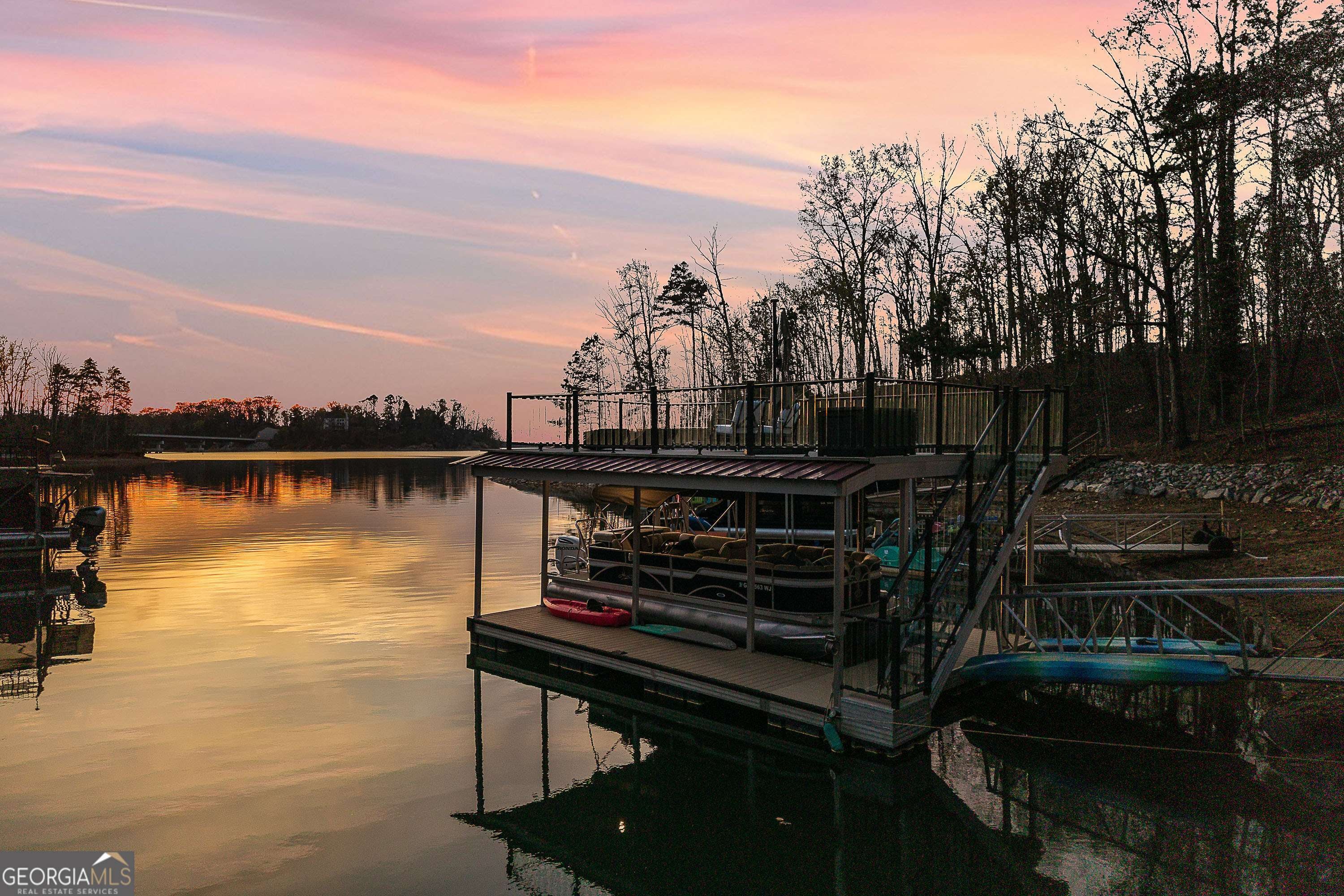 This exceptional lakefront retreat offers the perfect blend of luxury, functionality, and effortless entertaining, all set on a year-round deep water cove with a beautifully designed outdoor experience. From the moment you arrive, the expansive drive and rare drive-through 3-car garage with epoxy flooring set the tone for both convenience and versatility. The outdoor spaces are thoughtfully curated for lake living at its finest-featuring a grilling deck, abundant parking, and an easy, lighted path leading to a Wahoo party dock complete with Aqua Steps, boat lift, and ambient lighting-creating the ultimate lakeside setting day or night. The shoreline has also been professionally reinforced with $10,000 in marine-grade rip rap erosion control, offering long-term stability and peace of mind Inside, the home showcases a bright, open floor plan anchored by a fully remodeled kitchen designed for both everyday living and entertaining. Highlights include quartz countertops, double ovens, an oversized island, built-in desk, and a spacious walk-in pantry/laundry room combination. The kitchen flows seamlessly into the large family room, where one of two wood-burning fireplaces with blowers adds warmth and character, and extends out to a screened-in porch with incredible lake views. The primary suite on the main level is a true retreat, offering private access to the screened porch and a thoughtfully designed flow from the bedroom to the spa-like bath, into the walk-in closet, and directly to the laundry room for ultimate convenience. The finished terrace level is built for entertaining, featuring a full bar, pool table area, bedroom, and full bath, along with a second wood-burning fireplace with blower. This level opens to a covered, screened-in patio complete with a hot tub, outdoor shower, and peaceful lake views-perfect for hosting or relaxing after a day on the water. Upstairs, you'll find a versatile bonus room with a half bath, along with two generously sized bedrooms, each with ensuite baths and walk-in closets, providing comfort and privacy for family or guests. Additional upgrades and features include a $22,000 encapsulated crawl space, tinted main-level windows, newer insulated garage doors, a 3-year-old roof, and three HVAC systems-one for each level. With 5 bedrooms, 5.5 baths, and multiple indoor and outdoor living spaces, this home delivers the ultimate lake lifestyle-where every detail has been thoughtfully designed for comfort, convenience, and unforgettable entertaining.
