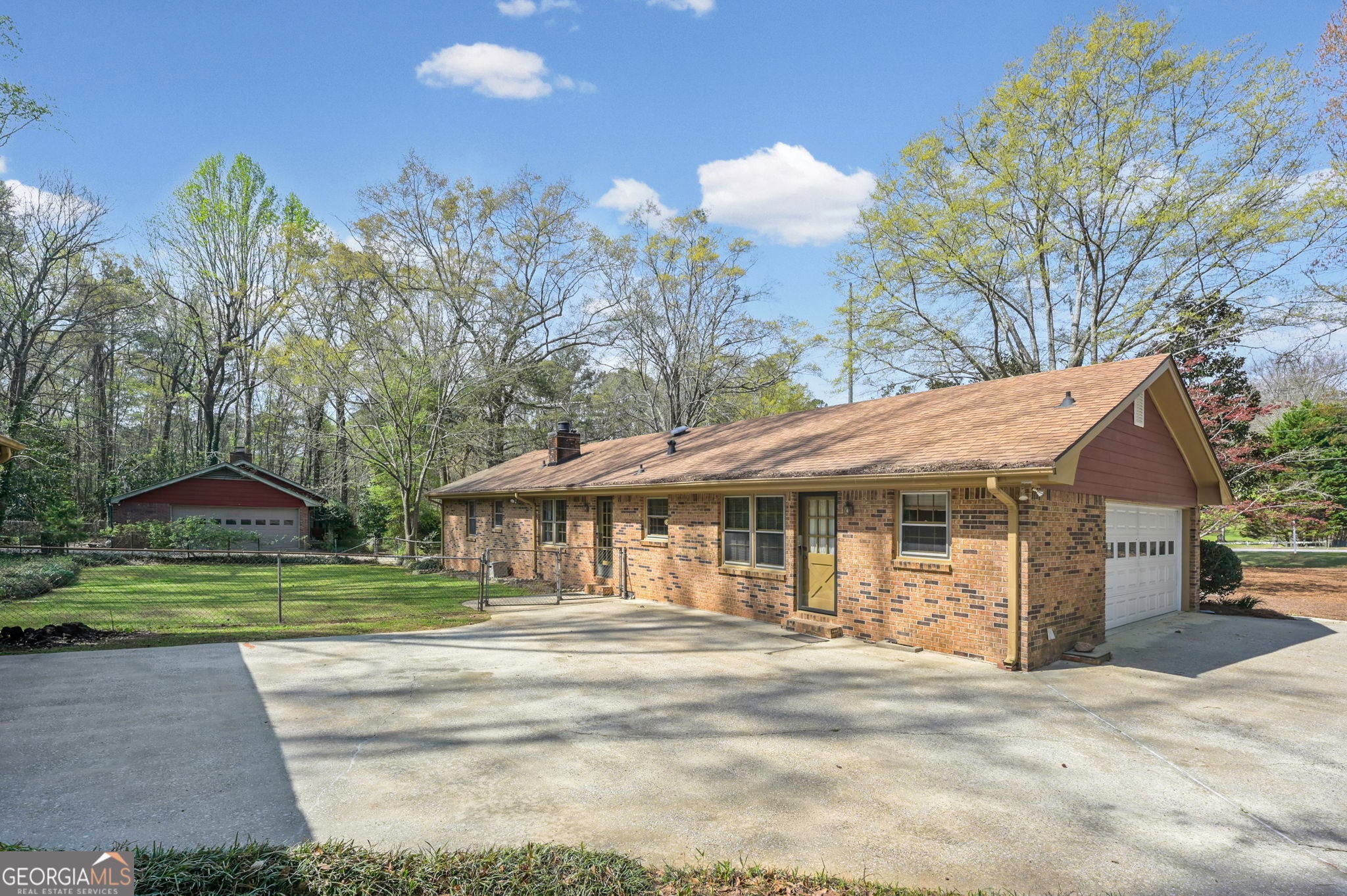 Welcome to this charming four-sided brick ranch, perfectly situated on a spacious corner lot surrounded by 1.46 acres of peaceful, wooded beauty. This move-in ready home offers 3 bedrooms and 2 bathrooms, providing a comfortable and functional layout ideal for everyday living. Inside, you'll find a cozy brick fireplace that serves as the heart of the home, creating a warm and inviting atmosphere. The property is enhanced by beautiful landscaping and a serene natural setting, offering privacy and tranquility. A long driveway and detached garage provide ample parking and storage, while the expansive lot gives you plenty of room to enjoy outdoor living. Conveniently located near Lake Spivey and Thorntons Lake, you'll have easy access to recreation while still enjoying a quiet retreat. No HOA, just space, comfort, and freedom to make it your own.