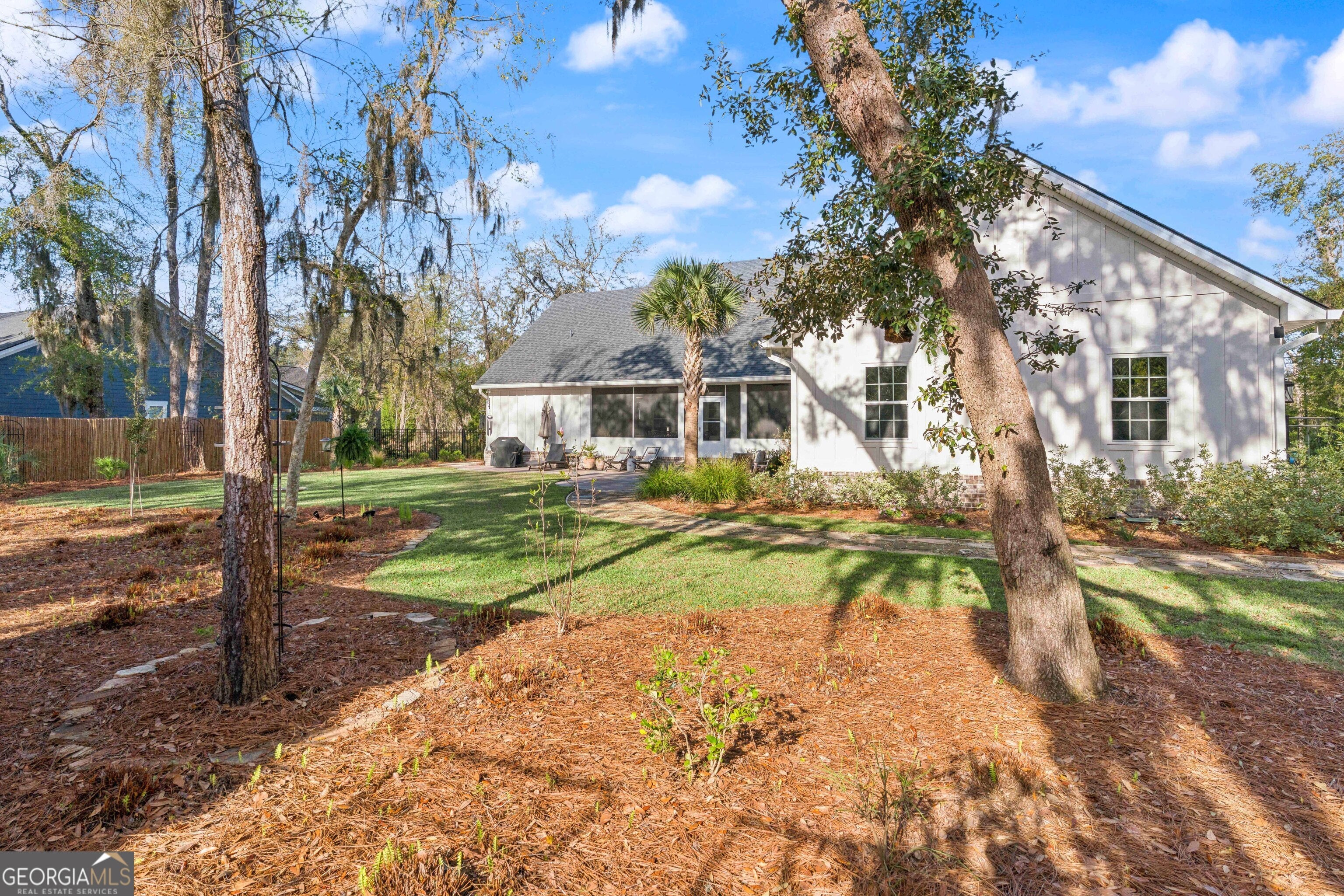Welcome to this beautifully maintained home in the gated community of Barrington Oaks, where dreamy curb appeal and thoughtful upgrades create an exceptional living experience. From the moment you arrive, you'll be drawn in by the inviting exterior and the care that has gone into every detail of this property. Step inside to discover spacious, all one-level living featuring 4 bedrooms, 3.5 baths, plus an enclosed office-perfect for working from home or added flexibility. The well-designed kitchen is truly the heart of the home, complete with a gas cooktop, custom wood hood vent, wall oven, brand new smart appliances, and a large walk-in pantry-ideal for both everyday living and entertaining. The stunning primary suite offers a true retreat with a beautifully appointed ensuite bath featuring a tiled shower, quartz countertops, a relaxing soaker tub, and a generous walk-in closet. Outdoors, the backyard has been completely transformed into a private oasis. Thoughtfully designed with improved drainage, this space is perfect for gardeners and bird lovers alike, with plenty of room to add a pool if desired. Enjoy peaceful mornings or relaxing evenings on the screened-in back porch overlooking the fenced yard. Additional upgrades include newly added gutters and a tankless water heater for enhanced efficiency and convenience. A 3-car garage provides ample storage and parking. Ideally located just 20 minutes from the beaches, shopping, and FLETC, this home offers the perfect blend of comfort, style, and convenience. Don't miss your opportunity to make this exceptional property your next home!