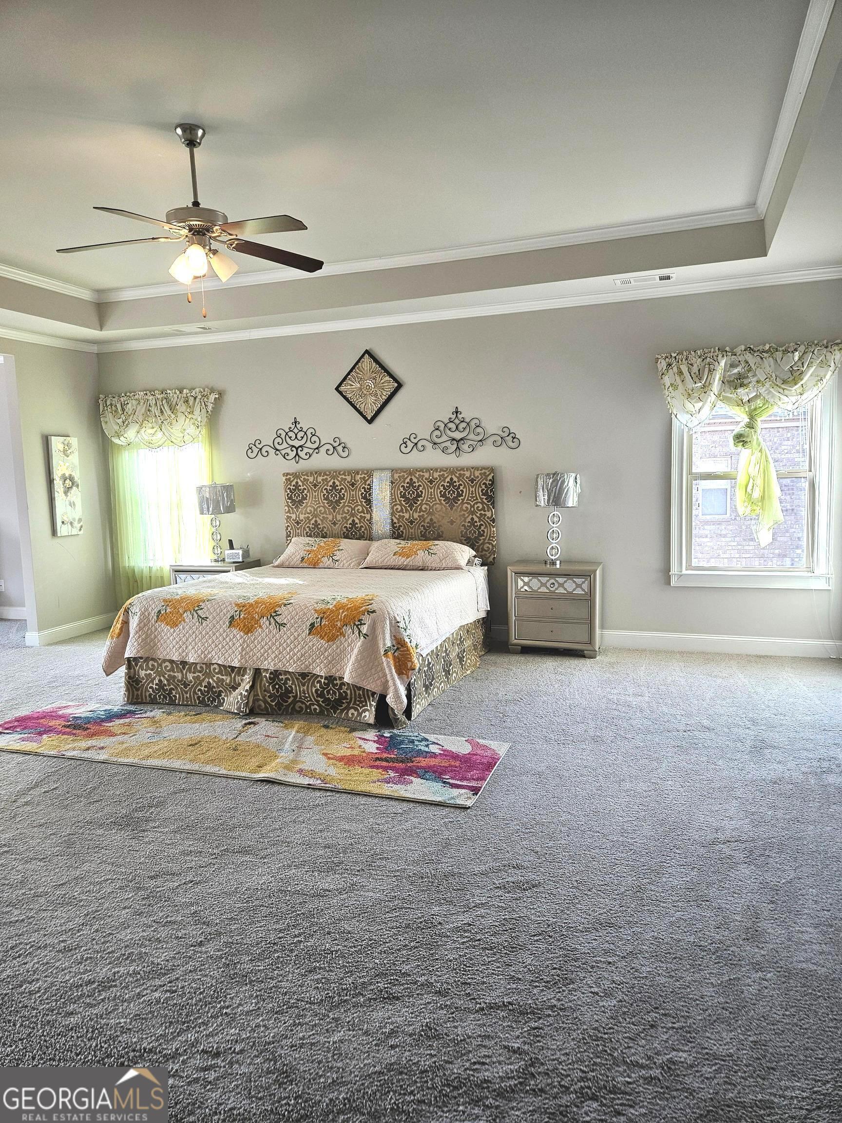 - Interior FeaturesTray Ceiling(s), Vaulted Ceiling(s), High Ceilings, Double Vanity, Soaking Tub, Pulldown Attic Stairs, Separate Shower, Walk-In Closet(s)