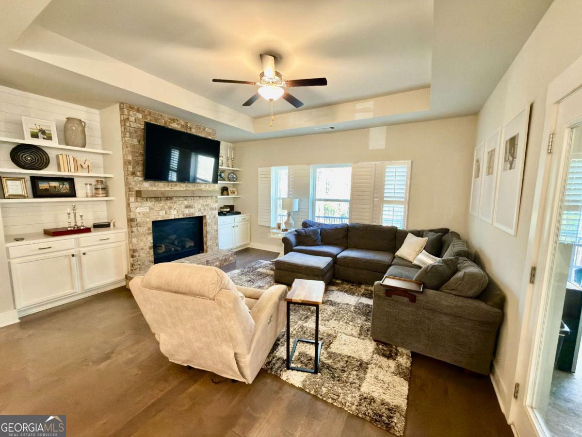 Elevated Living Meets Timeless Comfort! Primary on Main! Step into this beautifully maintained home where refined elegance and effortless comfort intertwine. This stunning 4-bedroom, 3-bath residence, offering approximately 2,444 square feet, welcomes you with a warm, sophisticated presence and thoughtfully curated design at every turn. From the moment you arrive, the lush, manicured landscaping and inviting facade set the tone for what lies within. Inside, rich hardwood floors flow seamlessly across the main level, complemented by an abundance of natural light streaming through an array of well-placed windows-creating an atmosphere that feels both airy and intimate. At the heart of the home, the open-concept kitchen is a true showpiece-designed for both everyday living and elevated entertaining. Featuring a grand center island, double ovens, a gas cooktop, and an oversized walk-in pantry, this space is as functional as it is beautiful. Just beyond, a separate dining room offers the perfect setting for hosting unforgettable gatherings. The expansive living room exudes comfort and charm, anchored by a striking fireplace with a raised stone hearth, flanked by custom built-in bookcases and storage-a perfect blend of style and practicality. Retreat to the spacious primary suite, a serene sanctuary designed with relaxation in mind. Enjoy a spa-inspired ensuite bath featuring a luxurious soaking tub, separate walk-in shower, double vanities, and elegant tiled flooring. Generously sized secondary bedrooms and large walk-in closets throughout ensure space and comfort for all. Upstairs, a versatile bonus room, additional bedroom, and full bath provide the perfect setup for guests, a private office, or a media retreat-offering flexibility to fit your lifestyle. Step outside to your own private oasis-an exquisitely landscaped, privacy-fenced backyard complete with a screened-in porch, ideal for quiet mornings or evening entertaining. A spacious yard and additional storage building enhance both convenience and outdoor enjoyment. Located within a desirable HOA community, residents enjoy access to swim and tennis amenities, along with sidewalk-lined streets perfect for leisurely strolls.