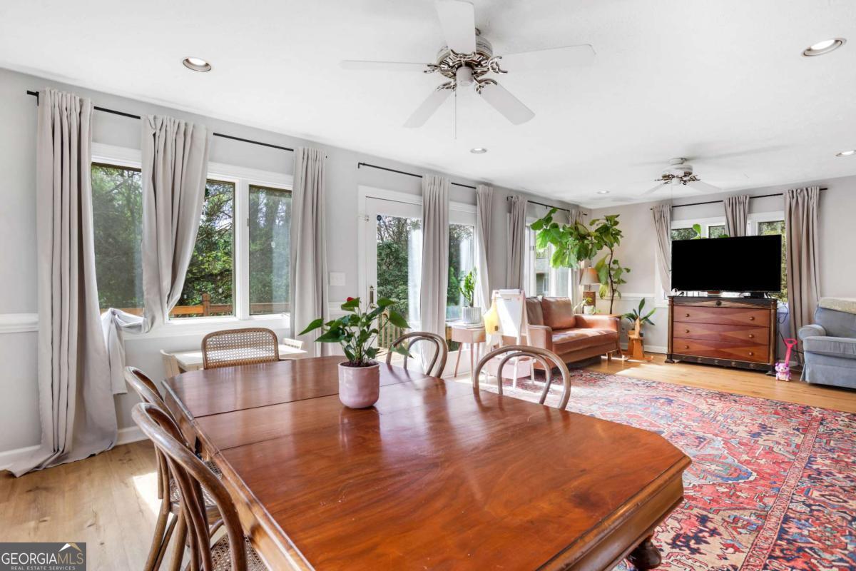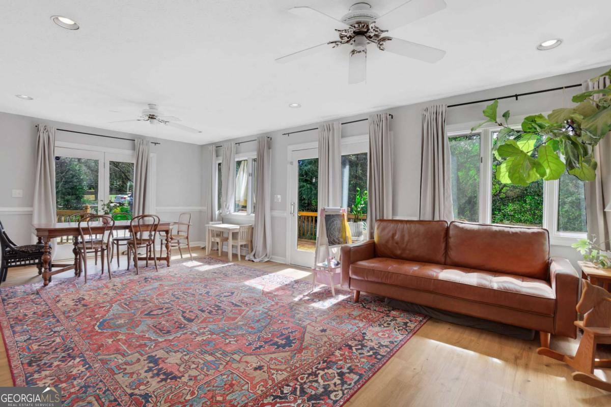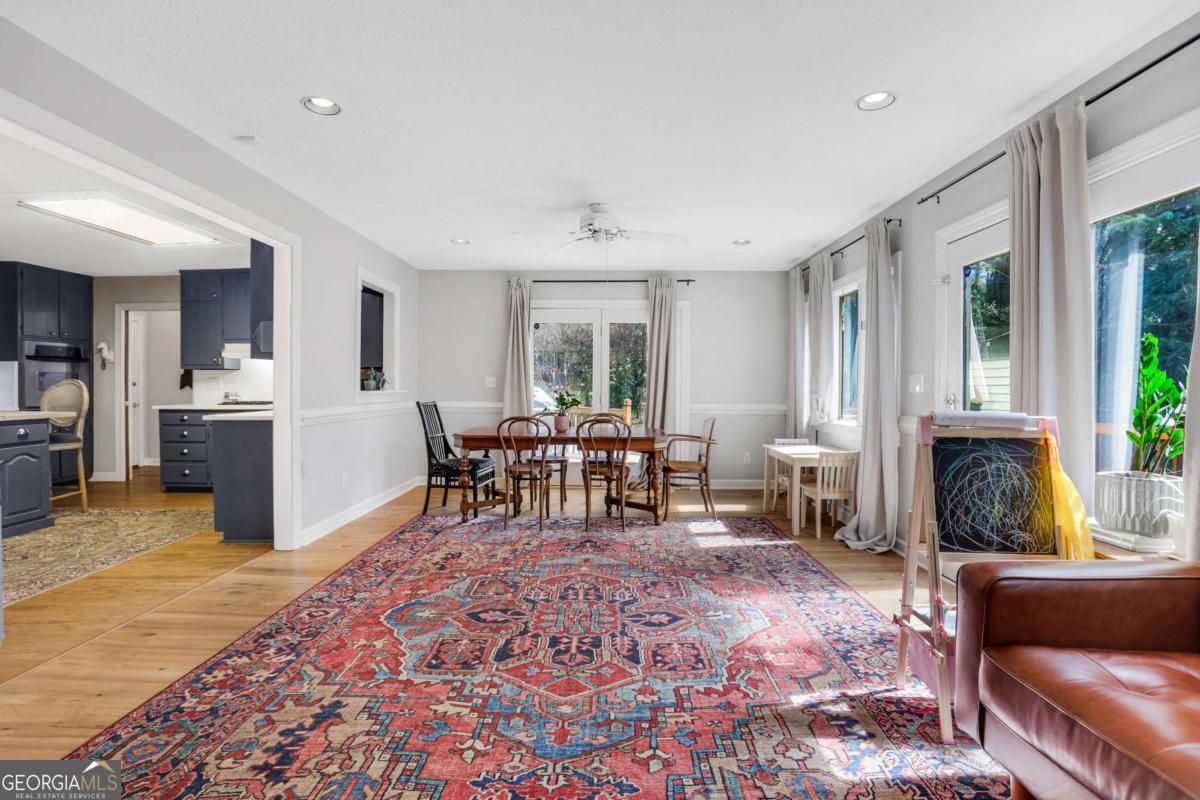 Welcome to this charming Cape Cod tucked into a beautifully landscaped corner lot in the heart of Lilburn. From the moment you arrive, the covered front porch invites you to slow down, sip something cold, and stay awhile. Inside, you will find thoughtful updates in the kitchen and bathrooms, blending classic character with modern comfort. The main level primary suite offers convenience and privacy, while the spacious layout flows effortlessly for everyday living and entertaining. A dedicated office on the main level, tucked near the sunroom, creates the perfect spot for working from home or a quiet retreat. The real showstopper is the oversized sunroom, filled with natural light and ideal for morning coffee, plant collections, or year-round relaxation. Step outside to a massive back deck that stretches across the home, overlooking a fully fenced backyard ready for pets, play, or your next gathering. A large outbuilding provides endless possibilities for hobbies, a workshop, or extra storage. Located less than 3 miles from Old Town Lilburn, you will enjoy easy access to local shops, dining, and community events, all while being part of the highly sought-after Parkview school cluster. This one checks all the boxes and then some.