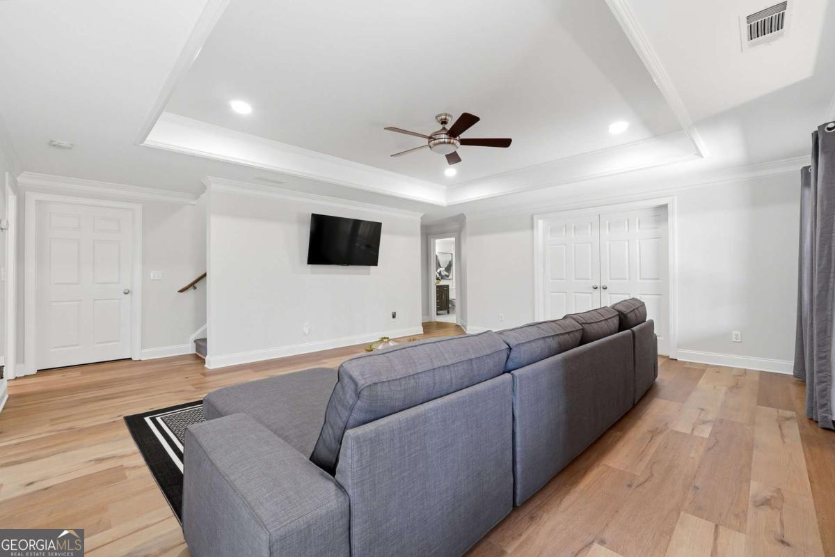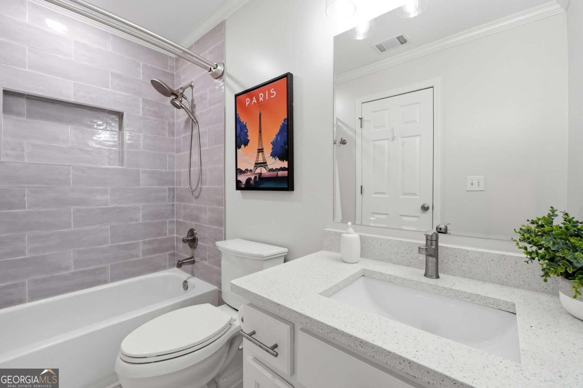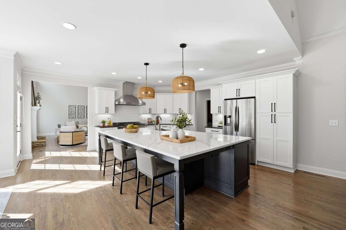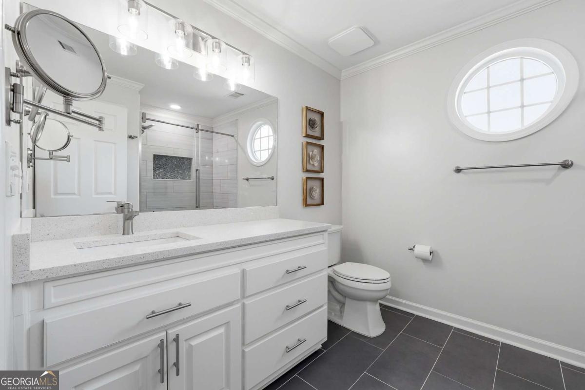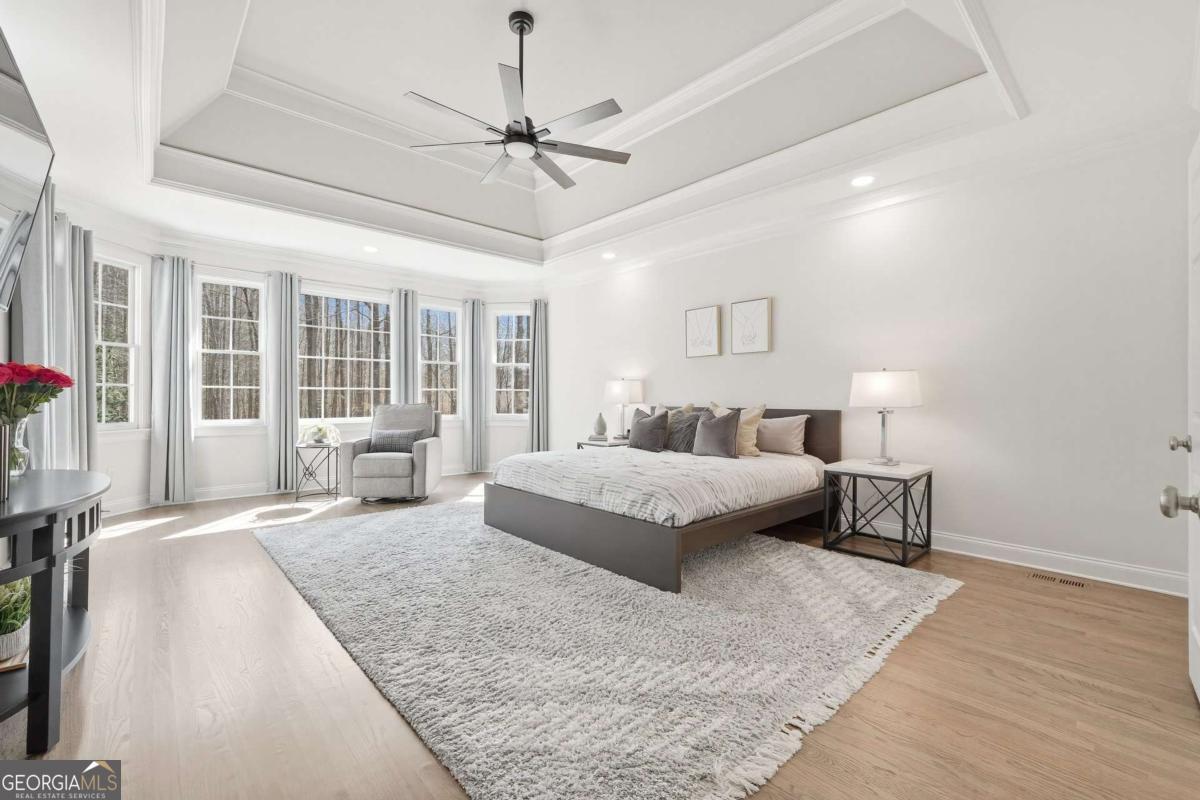 Experience timeless elegance in this fully renovated traditional home in The Hermitage, just minutes from top-rated public and private Milton schools, Avalon, Downtown Alpharetta, and North Park's pickleball courts and sports fields. With 5 bedrooms and 5.5 baths, the residence features a designer kitchen, updated baths, hardwood floors, modern lighting, a refreshed laundry/mudroom, and a redesigned staircase. The main-level primary suite offers a private retreat with sitting area, spa-inspired bath, and expansive custom closet, while upstairs, three large bedrooms each have private en-suite baths. A chef's kitchen with a large eat-in island and breakfast nook flows into a keeping room with fireplace. The daylight basement provides a bedroom with full bath, flexible fitness/office space, TV/entertainment area, and extra unfinished space. Enjoy outdoor living on the large deck and covered porch, ideal for entertaining, complemented by a 3-car garage-perfectly blending classic style, modern luxury, and an unbeatable location.