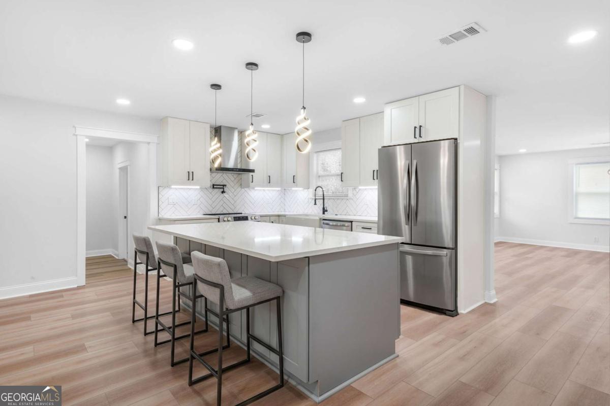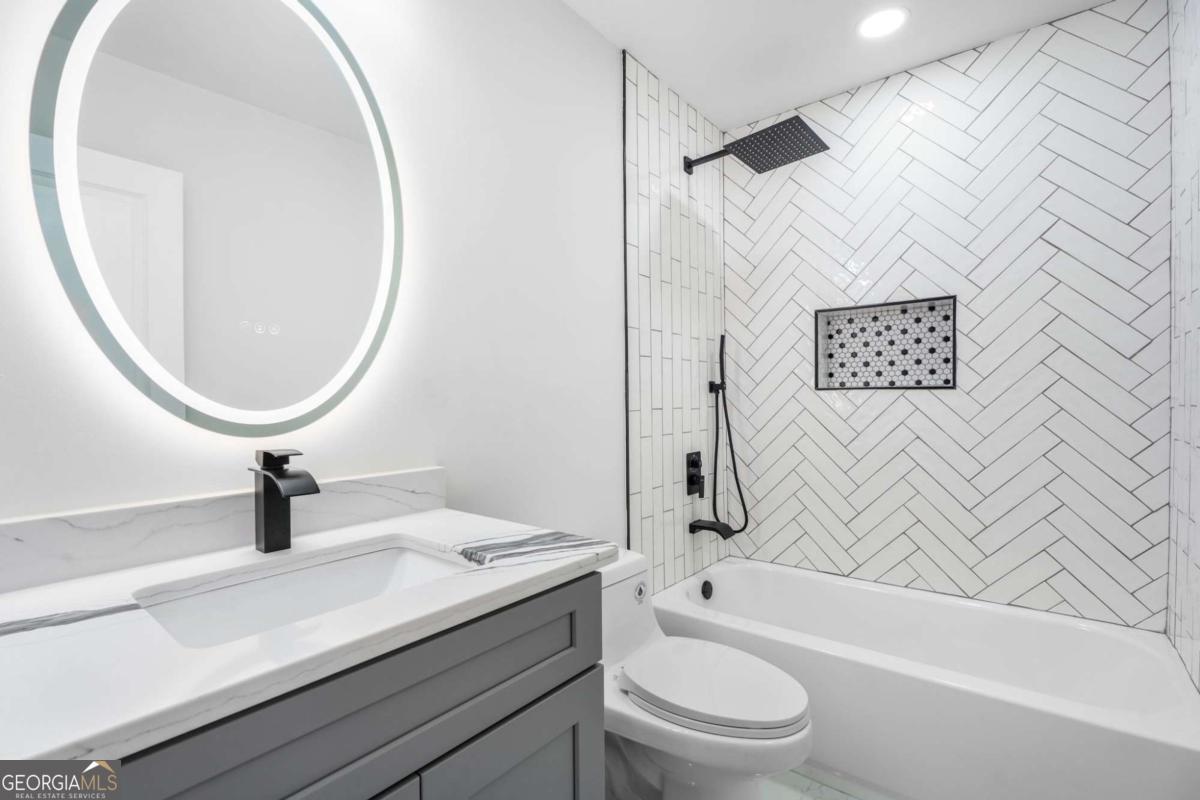Fully renovated and move-in ready, this stunning home at 8919 Saddlewood Dr, Jonesboro, GA 30238 offers a perfect blend of modern design and everyday functionality. The property features a bright open-concept layout filled with natural light and enhanced by high-quality finishes throughout. Recent upgrades include brand-new windows and doors, a beautifully renovated fireplace, elegant quartz countertops, and durable laminate flooring. The gourmet kitchen is a true centerpiece, showcasing a farmhouse sink, stylish herringbone backsplash, a spacious island with a built-in beverage mini fridge. The home offers 5 generously sized bedrooms and 3 full bathrooms, including a luxurious primary suite with double vanities. Each bathroom is thoughtfully designed with sophisticated porcelain finishes, adding a touch of elegance throughout. Fresh interior paint in warm, neutral tones creates a welcoming and modern atmosphere. Additional highlights include a dedicated laundry room and a fully fenced backyard, ideal for privacy, pets, and outdoor gatherings. Conveniently located near a variety of shopping, dining, and everyday essentials, with popular retail stores and services just minutes away. Enjoy easy access to major highways and interstates, making commuting and travel simple and efficient. Don't miss this amazing opportunity-this home won't last long! Schedule your showing today!