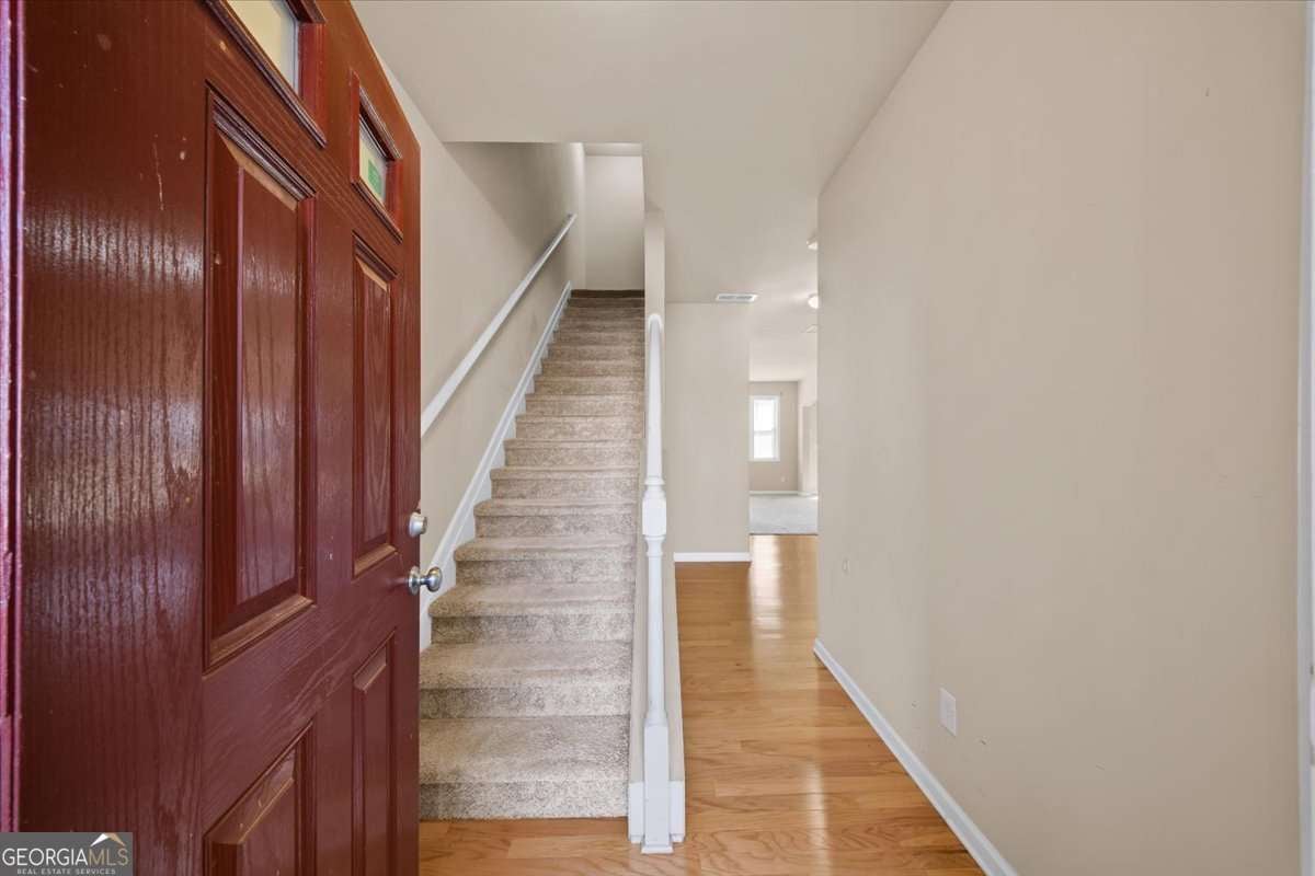 Tucked in a prime Marietta neighborhood of Park Trail, this charming 3-bedroom, 2.5-bath townhouse offers space, comfort, and incredible convenience. The main level features a bright and inviting family room with a cozy gas fireplace-perfect for relaxing evenings or hosting guests. The layout flows easily into the kitchen with plenty of cabinet space and room to gather. Just off the living area, step outside to a private patio with fenced dividers, ideal for enjoying a quiet morning, entertaining, or giving pets a bit of outdoor space alongside a small green area. Upstairs, you'll find all bedrooms thoughtfully laid out, along with a conveniently located laundry closet. The spacious primary suite boasts a vaulted ceiling, a large walk-in closet, and an ensuite bathroom with double vanities, a soaking tub, and a separate shower. Two generously sized secondary bedrooms offer flexibility for guests, family, or a home office. This home is move-in ready with great bones, while still offering an excellent opportunity to add your own personal touches and updates over time to truly make it your own. Additional features include a 2-car garage and a low HOA of just $100/month. For those who love the outdoors, you'll appreciate being close to the Silver Comet Trail-perfect for walking, running, or biking. Plus, enjoy easy access to Atlanta Braves games and entertainment at The Battery Atlanta, just about a 20-minute drive away. Conveniently located near grocery stores, shopping, parks, and local farmers markets, this home combines everyday ease with long-term potential. Don't miss this great opportunity!