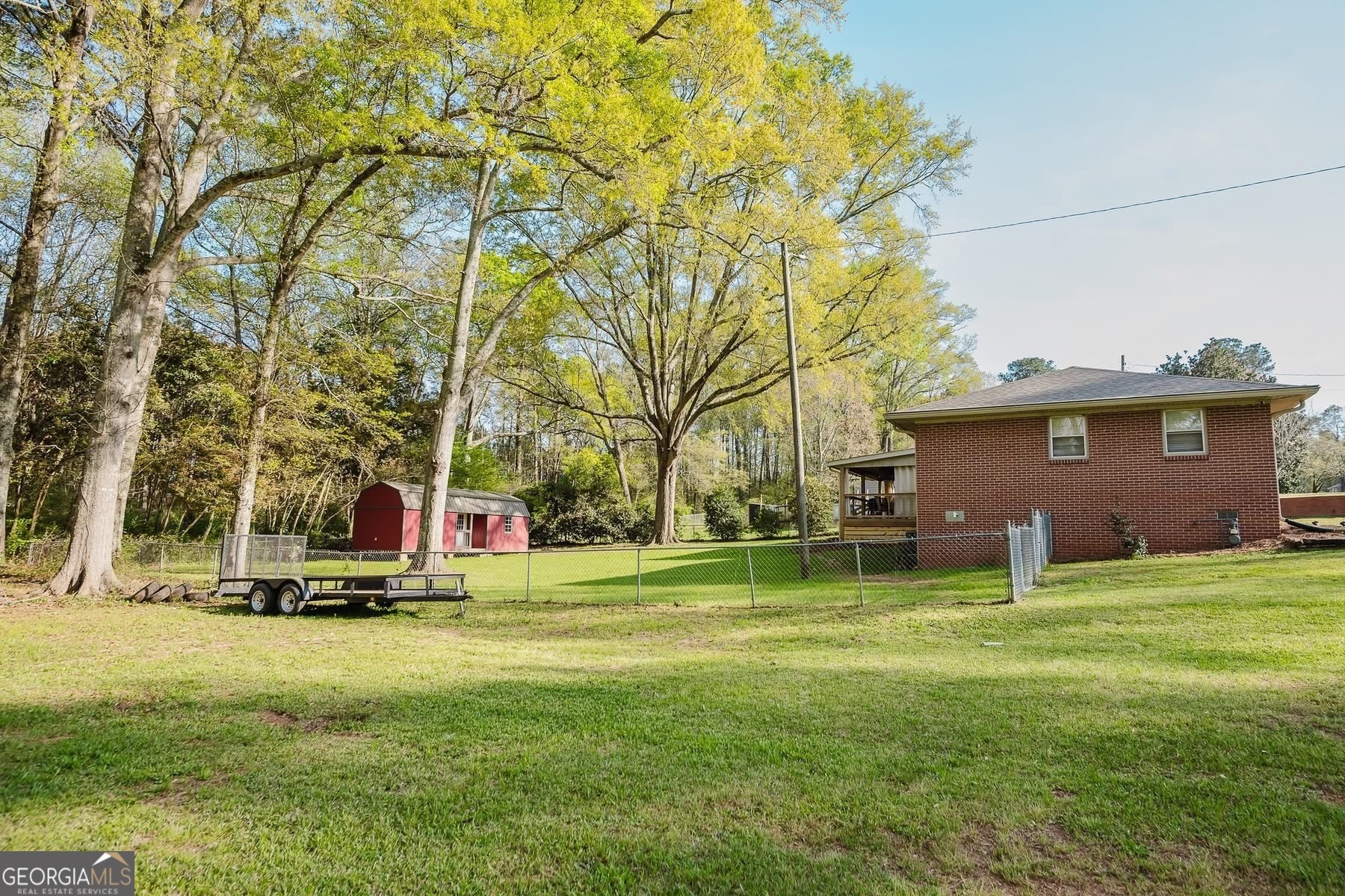 Charming four-sided brick home featuring 2 bedrooms and 2 bathrooms, situated on a full 1-acre lot with a fenced-in backyard. This 1,432 square foot home offers a functional layout and extensive updates throughout. The primary suite includes an updated bathroom with a walk-in shower, dual vanities, and a spacious walk-in closet. Enjoy the peaceful setting from the back porch overlooking the private backyard, complete with a creek running down the side of property. The property also includes a detached outbuilding with electricity, a mini split system, and blown-in insulation. Currently used as a gym, this space offers flexibility for a variety of uses. Numerous recent updates provide peace of mind, including a new roof (2022), HVAC system (2022), water heater (2025), whole-house rewire (2021), updated plumbing (2021), both bathrooms remodeled (2021), and floors sanded and stained (2021). A rear porch was added in 2024, creating a great outdoor living space. This is a must-see home offering privacy, comfort, and additional usable space.