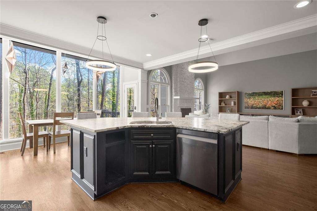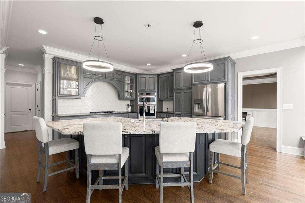 Welcome home to the highly sought-after Bishops Green-a vibrant swim and tennis community known for its charm, convenience, and top-tier lifestyle. This exceptional property is located in the coveted trifecta of award-winning schools: Timber Ridge Elementary School, Dodgen Middle School, and Pope High School -making it an ideal choice for those seeking both community and academic excellence. Step inside and discover a thoughtfully designed layout featuring an oversized primary suite that truly feels like a retreat. Enjoy a convenient coffee bar right in your bedroom and an expansive walk-in closet with a sitting area and fireplace, offering both luxury and functionality. Upstairs, you'll find generously sized secondary bedrooms complemented by two full bathrooms, walk-in closets, and a bonus playroom. The main level is perfect for both everyday living and entertaining, showcasing a beautiful, open-concept kitchen that flows seamlessly into a fireside living room. From there, step out onto your private deck overlooking a fenced in backyard-an ideal setting for entertaining, grilling, a play set, or simply relaxing in your own outdoor oasis. The spacious basement adds even more versatility, featuring additional bedrooms and a full bathroom-perfect for guests, an au pair, a home office, or multigenerational living. Multiple flex spaces offer endless possibilities, whether you envision a playroom, home gym, media room, or the ultimate game-day hangout. This home truly has it all-space, style, and an unbeatable location in one of the area's most desirable communities. Conveniently positioned near the neighborhood pool and near The Avenue, East Cobb's favorite restaurants (Fuji Hana, Bagelicious, Seed,), East Cobb Park, and MORE!