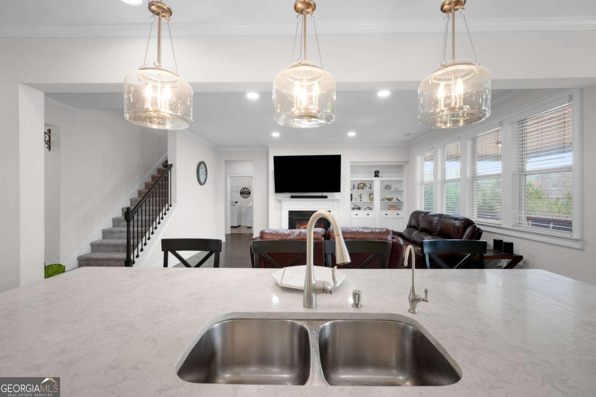Situated on a desirable corner lot in the sought-after Landing at Kelly Mill community, this beautifully maintained home offers a rare combination of space, functionality, and scenic surroundings. Enjoy peaceful mountain views and start your mornings on the deck-an ideal spot for coffee or relaxing outdoor moments. The inviting front porch and flat front yard create great curb appeal, while the interior showcases a thoughtfully designed layout with stylish finishes throughout. As you enter, you are welcomed by a cozy living room and dining room that are ideal for entertaining. The spacious family room features built-ins and large windows that fill the home with abundant natural light. The kitchen is a standout, featuring white cabinetry, quartz countertops, a large island, gas cooktop, double oven, and an open view to the family room-creating a seamless flow perfect for everyday living and gatherings. The open-concept design enhances both comfort and functionality. A bedroom and full bathroom on the main level provide flexibility for guests or a home office. The laundry room is conveniently located on the main level for easy access. Upstairs, the extended primary suite offers a versatile layout that can easily function as a private owner's retreat, complete with a tray ceiling, abundant natural light, and peaceful views. The primary bathroom features dual vanities, a tiled shower, and a generous walk-in closet. Three additional bedrooms, a private en-suite, and a Jack-and-Jill bathroom complete the upper level. The finished daylight basement is a true highlight, featuring a bedroom, full bathroom, full kitchenette, and a large open living area-ideal for entertaining, extended living, or multi-generational use. A dedicated media space provides the perfect setting for movie nights and game days. The basement also has a new Radon mediation equipment already installed so it gives peace of mind to the new buyers. The backyard offers a great setting for outdoor enjoyment and is perfect for hosting barbecues and gatherings. Located in a friendly community near highly rated schools, including Alliance Academy for Innovation and Kelly Mill Elementary, and just minutes from the new Cumming City Center, parks, shopping, and grocery options, this home delivers the perfect combination of space, location, and lifestyle.