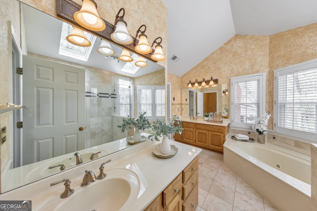 Welcome to this stunning 4 bedroom, 3.5 bathroom home nestled in the highly sought-after Old Paper Mill swim/tennis community-located in a top-rated school district and just minutes from Sope Creek Elementary, East Cobb Middle School, and Wheeler High School. Beautifully maintained and thoughtfully updated, this home features refinished hardwood floors and fresh interior paint throughout, creating a warm and inviting atmosphere from the moment you step inside. A grand foyer welcomes you in, flanked by a cozy home office with bay windows and custom built-in bookshelves, and an elegant separate dining room that flows seamlessly into the kitchen. The spacious kitchen is a true centerpiece, offering an abundance of cabinet and counter space, stone countertops, a large center island, and a sunny breakfast room ideal for casual dining. Just beyond, the fireside family room features soaring vaulted ceilings and built-in bookshelves, creating the perfect space to relax or gather with guests. A bright and airy sunroom overlooks the serene backyard, while a convenient laundry room with sink and half bathroom complete the main level. Upstairs, the expansive primary suite serves as a private retreat. The spa-like ensuite bathroom features dual vanities, a whirlpool tub, vaulted ceilings, skylights, a separate shower, and a custom walk-in closet. Three generously sized secondary bedrooms offer ample space for family or guests-one with a private ensuite bathroom, while the other two share a well-appointed Jack-and-Jill bath. The fully finished basement is an entertainer's dream, offering multiple flex spaces to suit your needs, a media room with wet bar, a wine cellar, and walkout access to the backyard-perfect for hosting gatherings or enjoying a quiet night in. Outdoor living is just as impressive, with a large deck off the main level overlooking a beautifully landscaped, private backyard. A stunning stone patio below provides additional entertaining space, while the tranquil setting is enhanced by professional landscaping, a pond/water feature, and a peaceful creek. Complete with an attached 2-car garage and located in a vibrant community with swim and tennis amenities, this home offers an unbeatable lifestyle. Enjoy a prime location with easy access to Marietta Square, East Cobb, I-75, Truist Park, and an abundance of nearby parks, shopping, dining, and entertainment options. This is truly a place to call home.