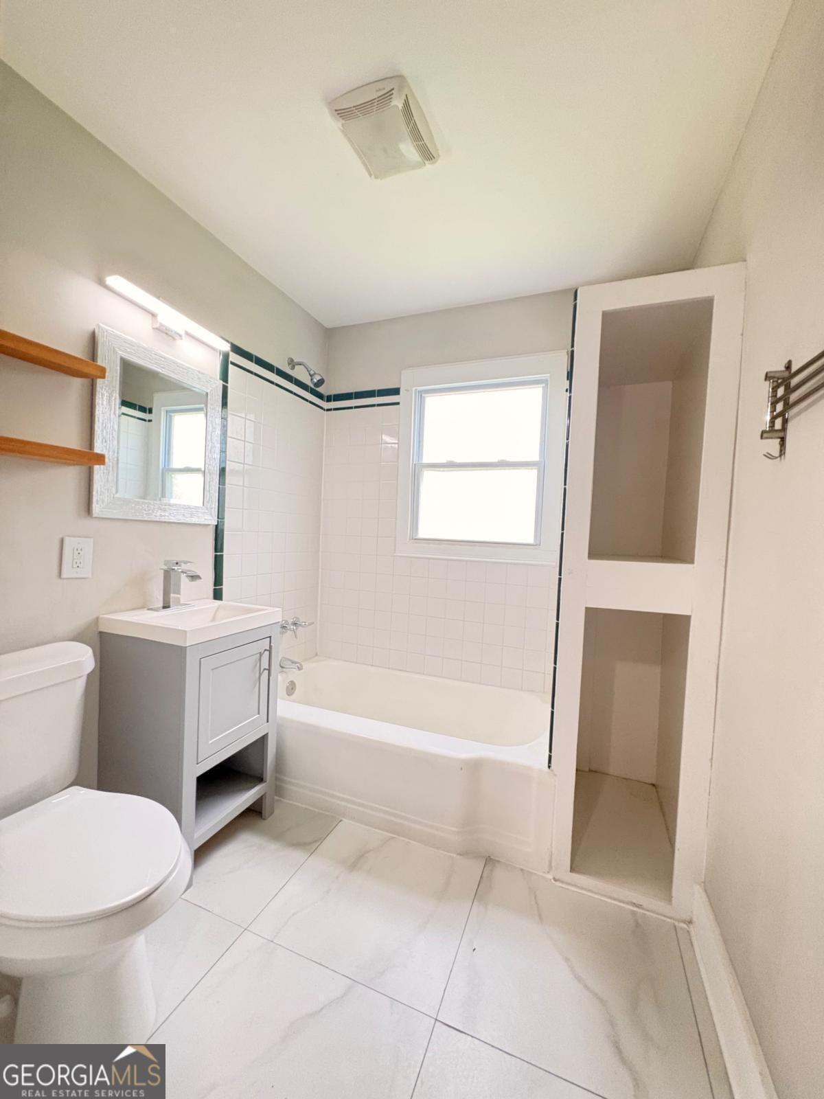 Welcome to 3014 E Point Street-where charm, convenience, and modern updates come together in the heart of East Point. This beautifully renovated 3-bedroom, 2-bath ranch is completely move-in ready and offers the perfect blend of character and functionality. A welcoming front porch sets the tone, leading into a light-filled living space with hardwood floors flowing throughout most of the home. The updated kitchen is designed for both everyday living and entertaining, featuring quartz countertops, stainless steel appliances, soft-close cabinetry, and direct access to the backyard. Thoughtfully designed, two of the bedrooms feature built-in shelving-ideal for flexible use as sleeping spaces, home offices, or creative studios-and are connected by a stylish Jack-and-Jill bathroom with dual vanities and a walk-in shower. A third bedroom is conveniently located near the updated hall bath, offering privacy for guests or additional versatility. Situated just moments from the heart of East Point and historic Center Park, this home offers unbeatable walkability to local dining, shopping, the public library, and MARTA. Plus, you're less than 5 miles from Tyler Perry Studios, making this an excellent option for homeowners, investors, or those seeking short-term rental potential. Whether you're looking for your next home or a smart investment opportunity, 3014 E Point Street delivers on location, style, and value.