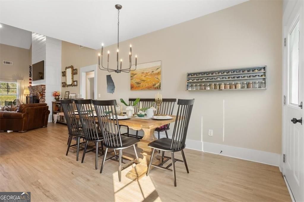 Discover the perfect blend of modern farmhouse style and North Georgia living on this beautiful 4.82-acre property in Canton, located in highly desirable North Cherokee County. Bring an offer- Seller offering $15K in concessions with acceptable offer! Featuring a gently cleared front yard and a private, partially wooded backyard, this home offers the ideal lifestyle for those seeking space, privacy, and a connection to nature-while still being convenient to nearby shopping, dining, and everyday amenities. Located in a top-rated school district, including R. M. Moore Elementary School STEM Academy and the NEW Cherokee High School, this property combines lifestyle and location. Enjoy peaceful mornings on the inviting front porch and unwind in the evenings on the back deck overlooking your own private landscape. The open front yard provides room for entertaining, recreation, or simply enjoying the outdoors, while the wooded backyard offers natural beauty and added privacy. A fenced garden area with raised beds and a charming picket fence creates the perfect opportunity for gardening, homesteading, or embracing a more relaxed, intentional lifestyle. Inside, the home is filled with natural light and thoughtfully designed for both everyday living and entertaining. The spacious great room features soaring cathedral ceilings and flows seamlessly into the dining area and chef's kitchen-the true heart of the home. The kitchen is beautifully appointed with custom white cabinetry, granite countertops, and high-end GE Cafe appliances, offering both style and functionality. A flexible space on the main level serves as a home office or formal dining room, ideal for today's work-from-home needs or hosting gatherings. The owner's suite is a private retreat with a spa-like bath, including dual vanities, a soaking tub, oversized tiled shower, and a large walk-in closet. The split-bedroom floor plan provides three spacious secondary bedrooms and a well-appointed full bath, offering comfort and privacy for family and guests. An oversized laundry and mudroom with custom cabinetry, storage, and utility sink adds everyday convenience. Additional features include a kitchen-level two-car garage, extra-wide staircase to an unfinished basement stubbed for a future bath and ready for expansion, and a walk-up attic with permanent stairs-perfect for storage or future finished space. This property offers a rare opportunity to own acreage in Canton, GA and North Cherokee County with the flexibility to expand, entertain, and truly enjoy your surroundings. Whether you're looking for a private retreat, space to grow, or a home that supports your lifestyle, this modern farmhouse delivers.