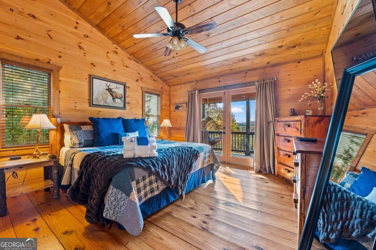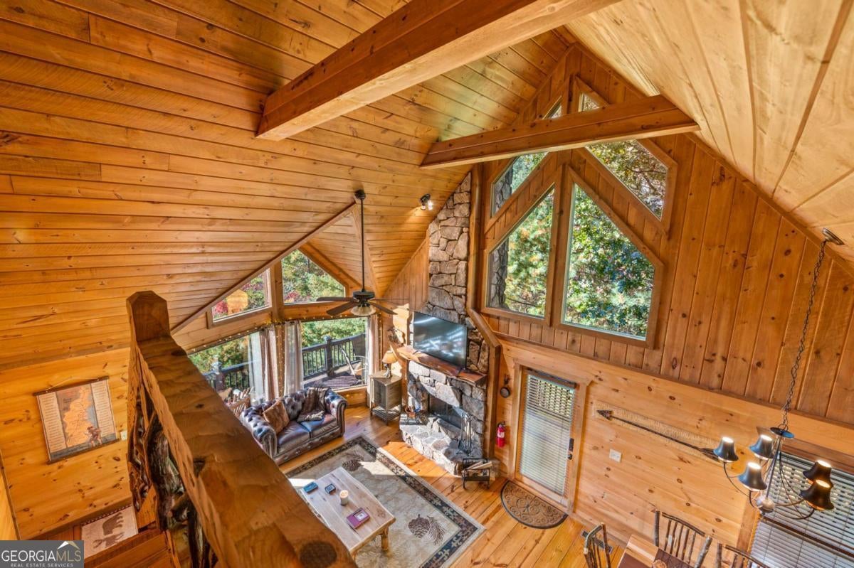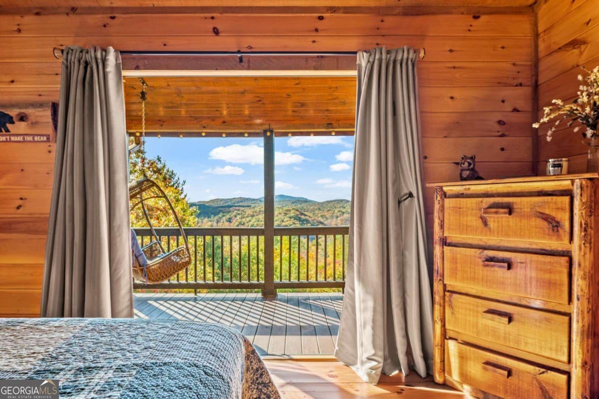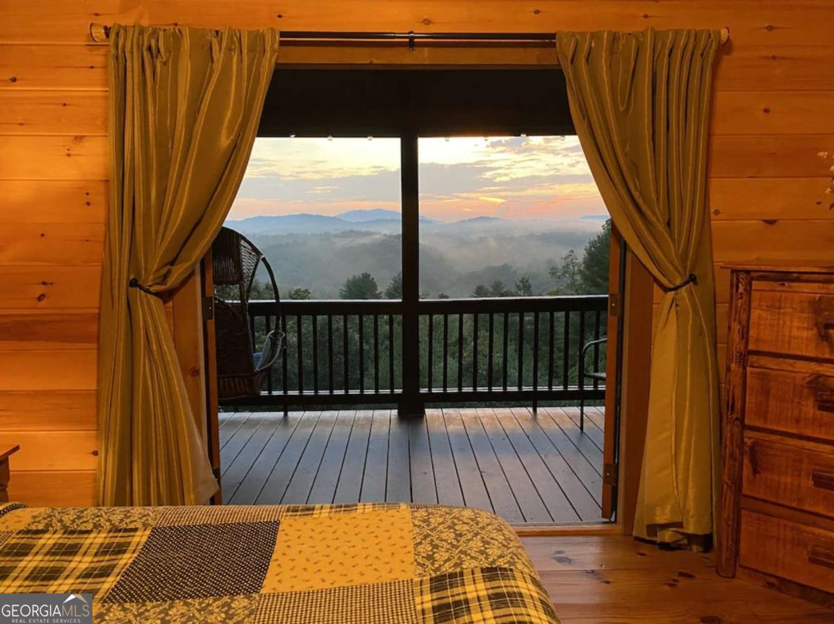 Don't miss this rare opportunity to own the most breathtaking view in Blue Ridge. Conveniently located just 15 minutes from downtown Blue Ridge, Murphy, NC, and several quaint local vineyards, this mountain retreat offers the ideal blend of privacy, convenience, and investment potential. Settled at 1,900 feet on two private acres, this west-facing cabin delivers completely unobstructed, long-range mountain views. Whether relaxing outside on one of the three decks, or gazing out of the picture windows in the living room, you'll have a front row seat to stunning sunsets all year round. No drywall here; this cabin offers authentic rustic craftsmanship throughout with the floors, walls, and ceilings finished in natural wood. Wide plank flooring, a custom branch stair railing, and a stone, wood burning fireplace add to the cabin's distinctive character. Fully furnished, with many pieces handcrafted by Amish artisans, this cabin welcomes guests with a blend of comfort and luxury. The cabin features three spacious, master-sized bedrooms, each with its own private bathroom. Three levels of outdoor decks, including two grand wrap-around decks on the lower and main levels of the home, maximize entertaining space and the incredible views. The exterior features classic stained wood siding and a metal roof. Enjoy evenings in the hot tub, entertain at the wet bar, play a game of pool, or roast marshmallows down by the firepit. For investors, this property is a proven performer with 7 years of strong short-term rental history and meticulous owner care. Whether you're seeking a primary residence, weekend escape, or a vacation rental, this property is a once in a lifetime opportunity.