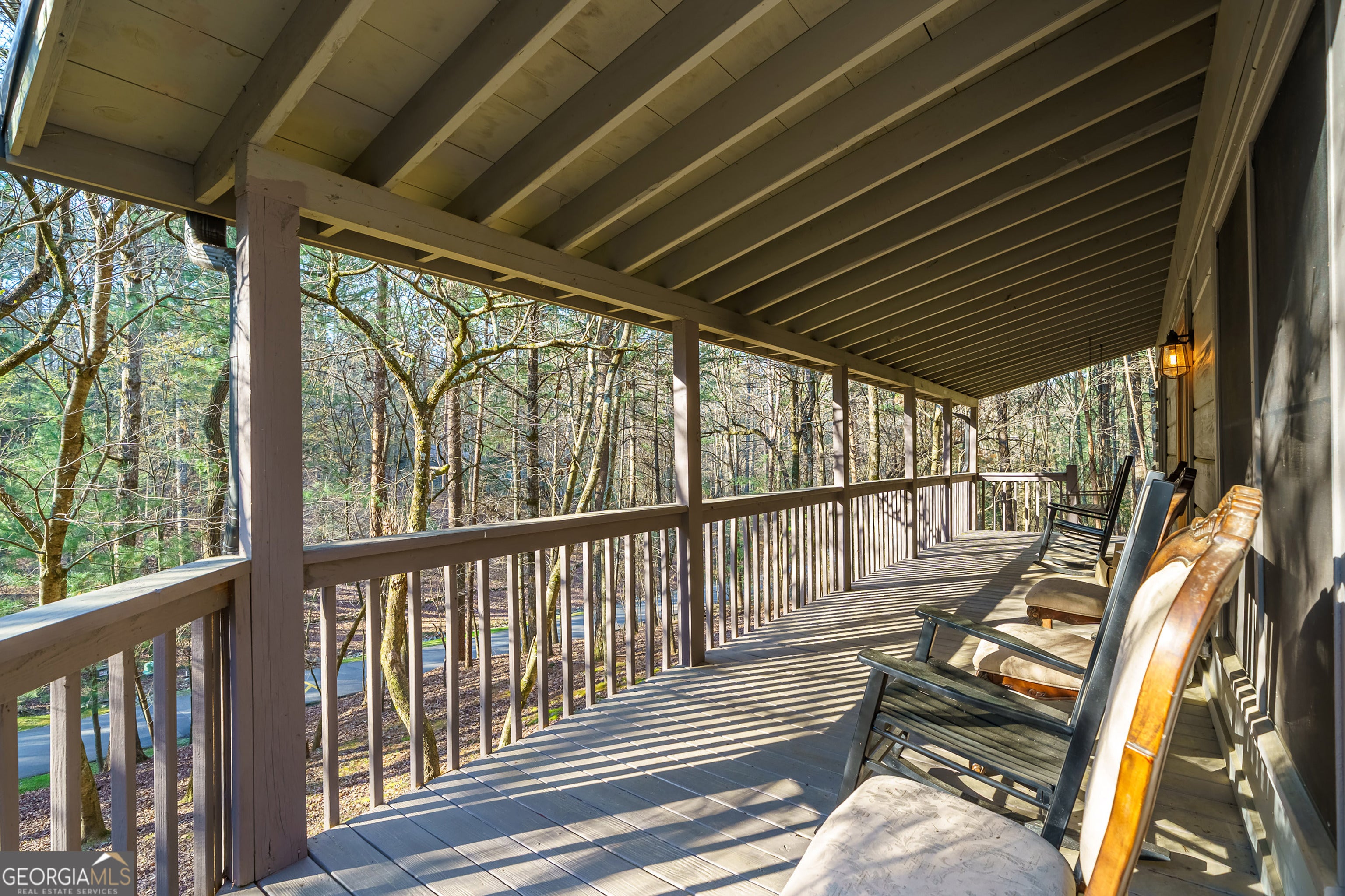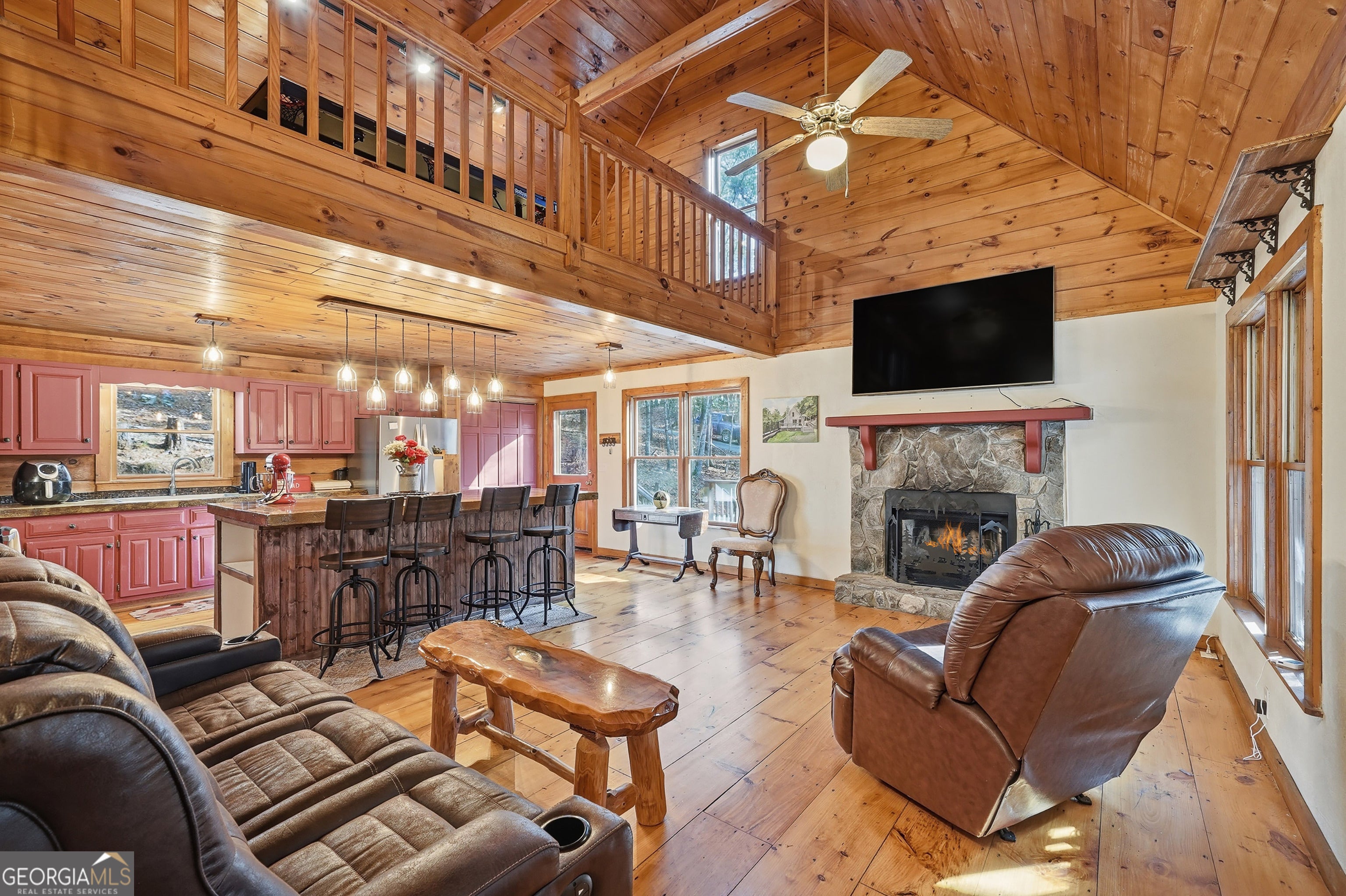Tucked within the prestigious Blackberry Mountain community of Ellijay, Georgia- this charming 2-bedroom, 2-bath cabin with loft offers the perfect blend of privacy, character, and mountain serenity-Enter through the iconic covered bridge spanning the Cartecay River and experience one of North Georgia's most picturesque and sought-after settings-a true wildlife sanctuary with Community River Access. Privately situated on over of an acre, this authentic log home is surrounded by natural beauty and peaceful wooded views-Recent updates enhance both style and functionality, including a brand-new metal roof, renovated kitchen and baths, refinished wide-plank floors, and a refreshed fireplace with new firebrick. Warm wood interiors and inviting living spaces create the ideal mountain retreat.Perfect as a full-time residence or a private getaway, this home offers a rare opportunity to enjoy quiet, uninterrupted living, as short-term rentals are not permitted within Blackberry Mountain-preserving the tranquility and exclusivity of the community. An exceptional value in one of North Georgia's most scenic mountain enclaves-Live among the vineyards, mountain trails, river adventures, orchards and only minutes from downtown Fun-don't miss it.